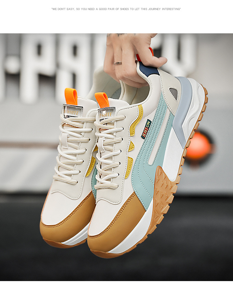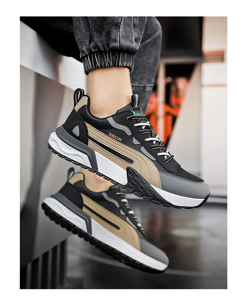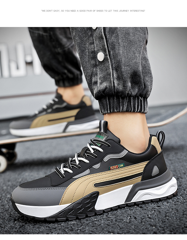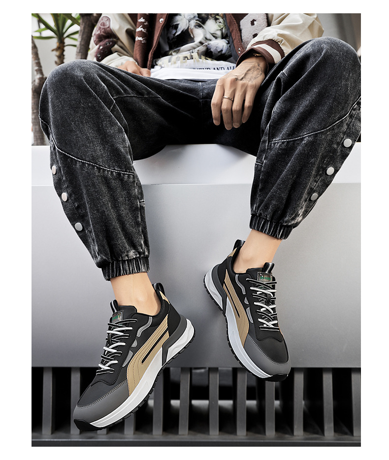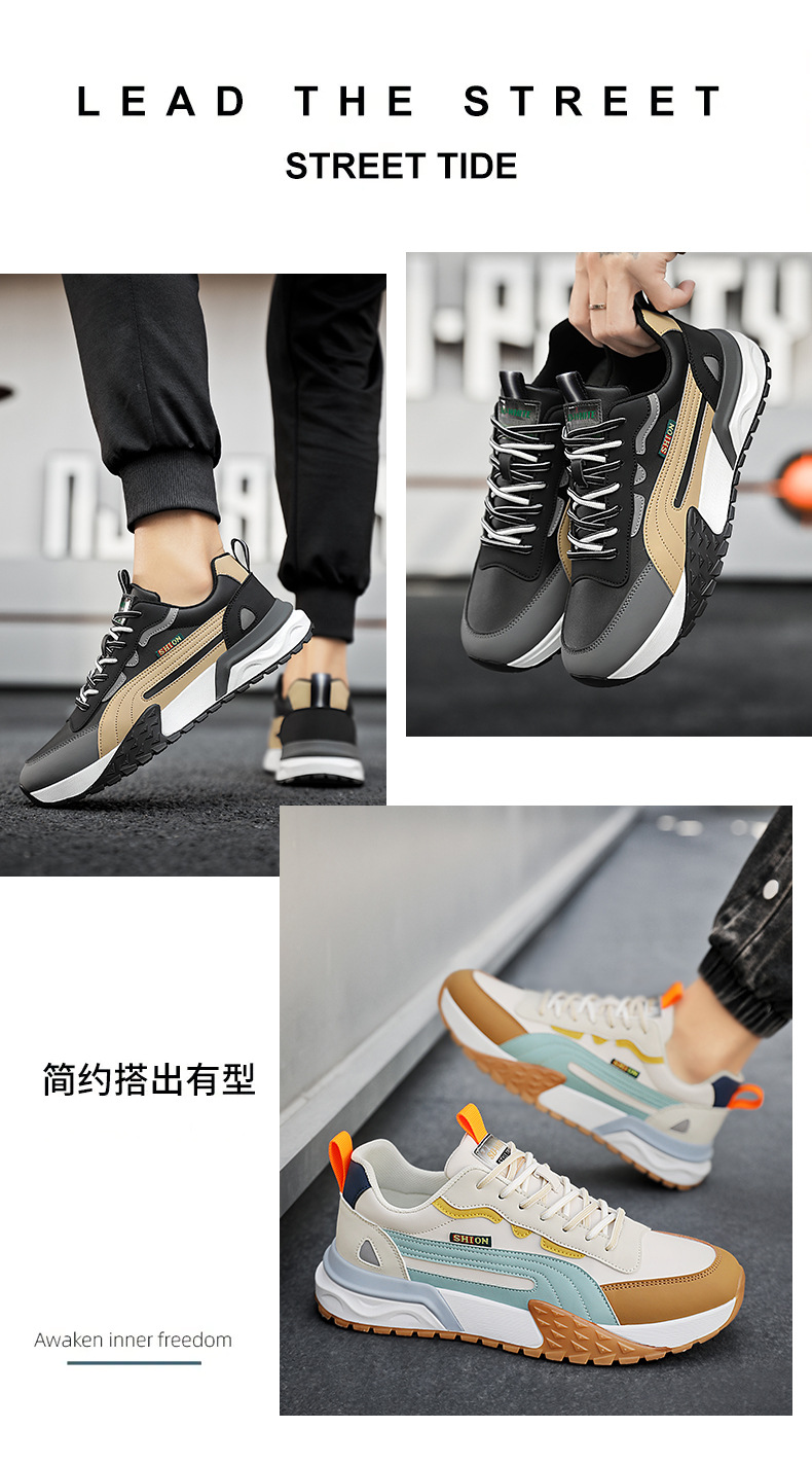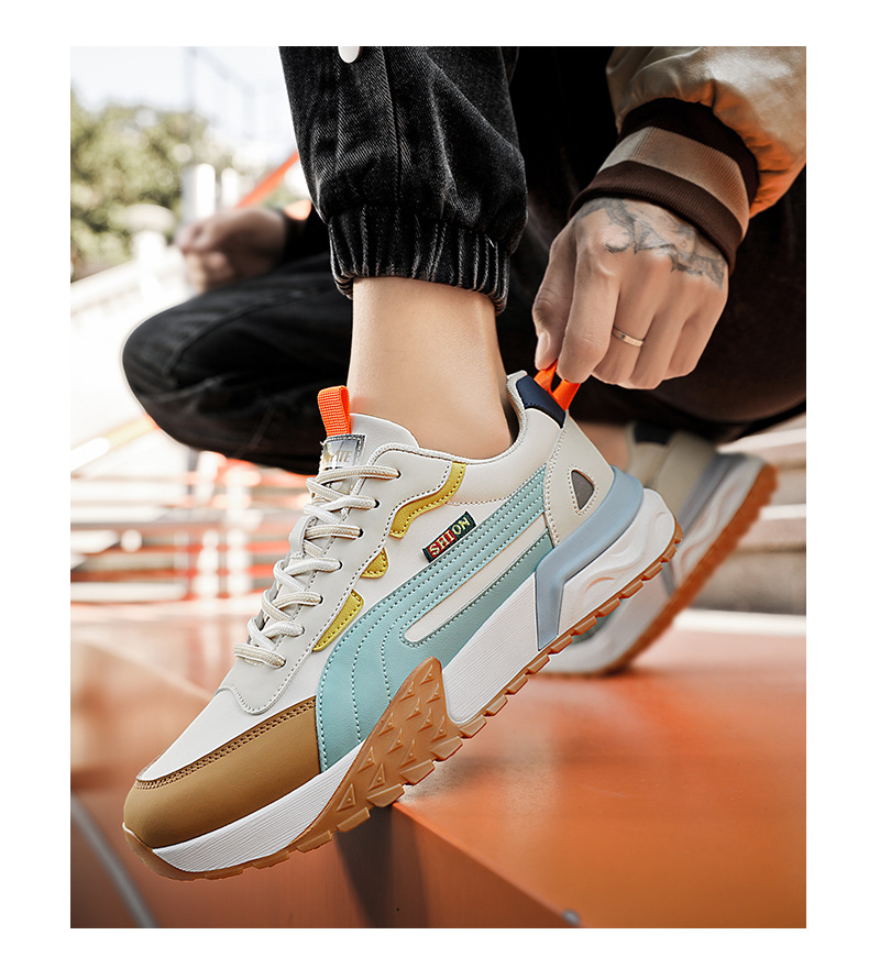 인터넷 유명 인사 폭발성 남성 신발 봄 올 매치 캐주얼 학생 가죽 방수 스포츠 달리기 두꺼운 단독 아빠 트렌디 신발