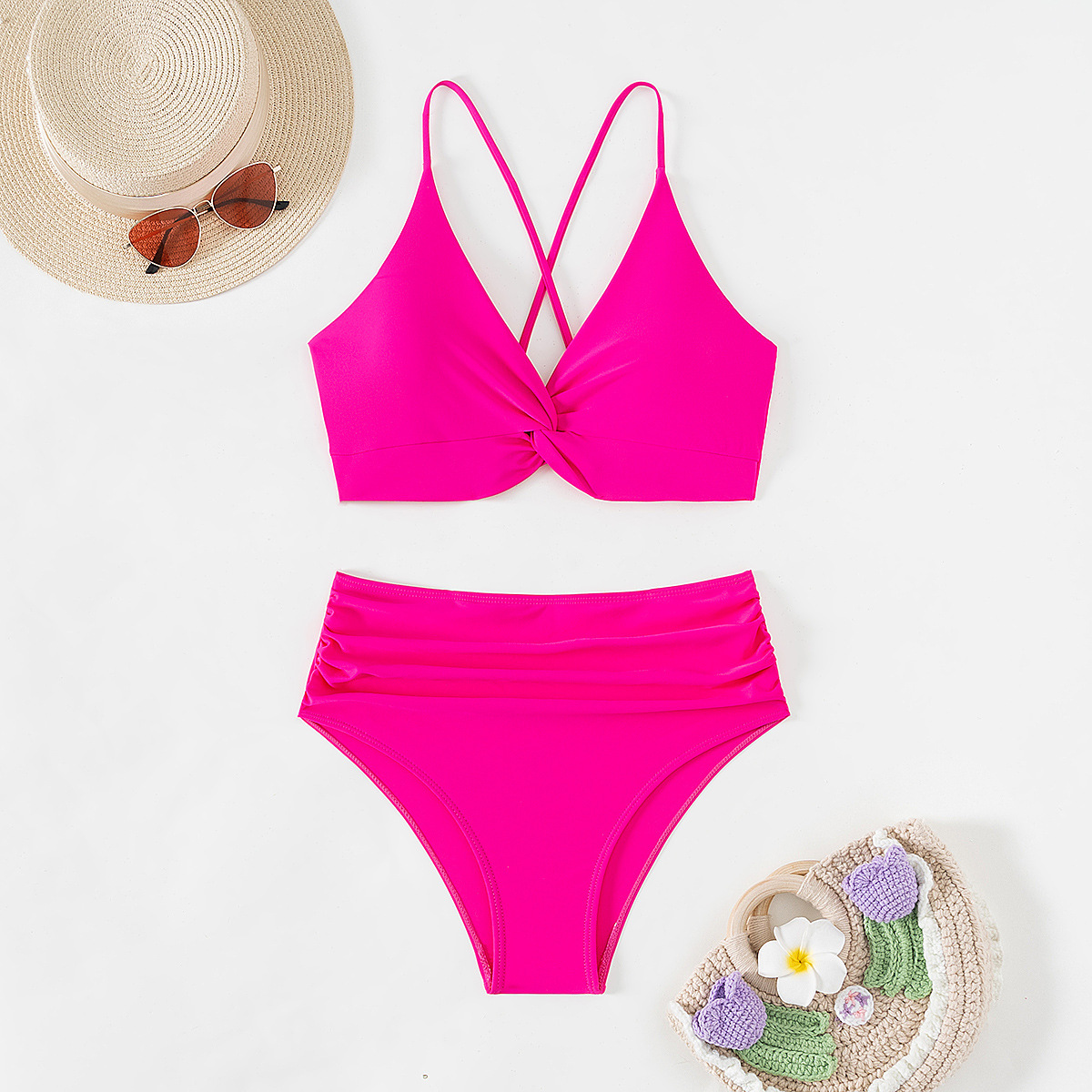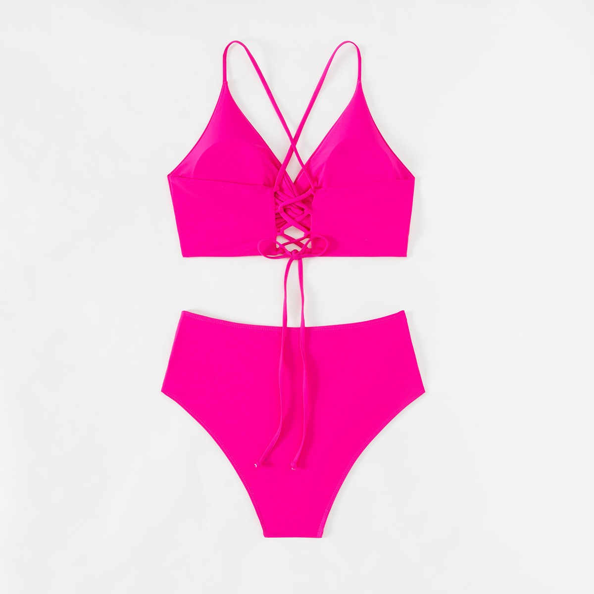2024 새로운 비키니 수영복 세트 대외 무역 유럽과 미국의 레이스 업 높은 허리 슬리밍 비키니 수영복 여성 아마존스토어 가기