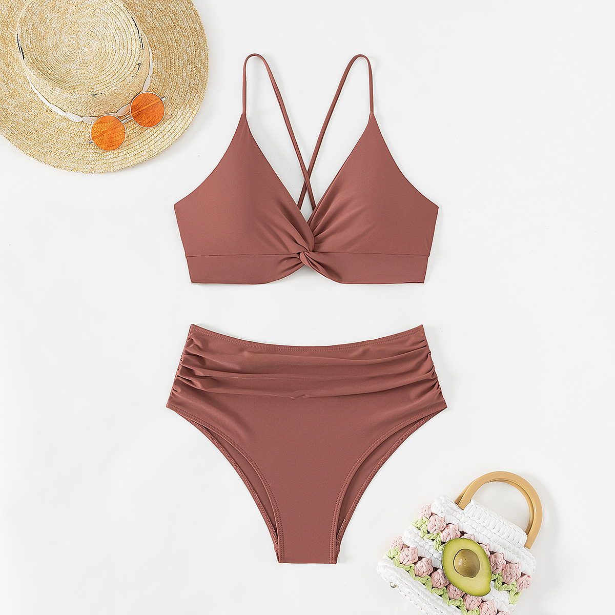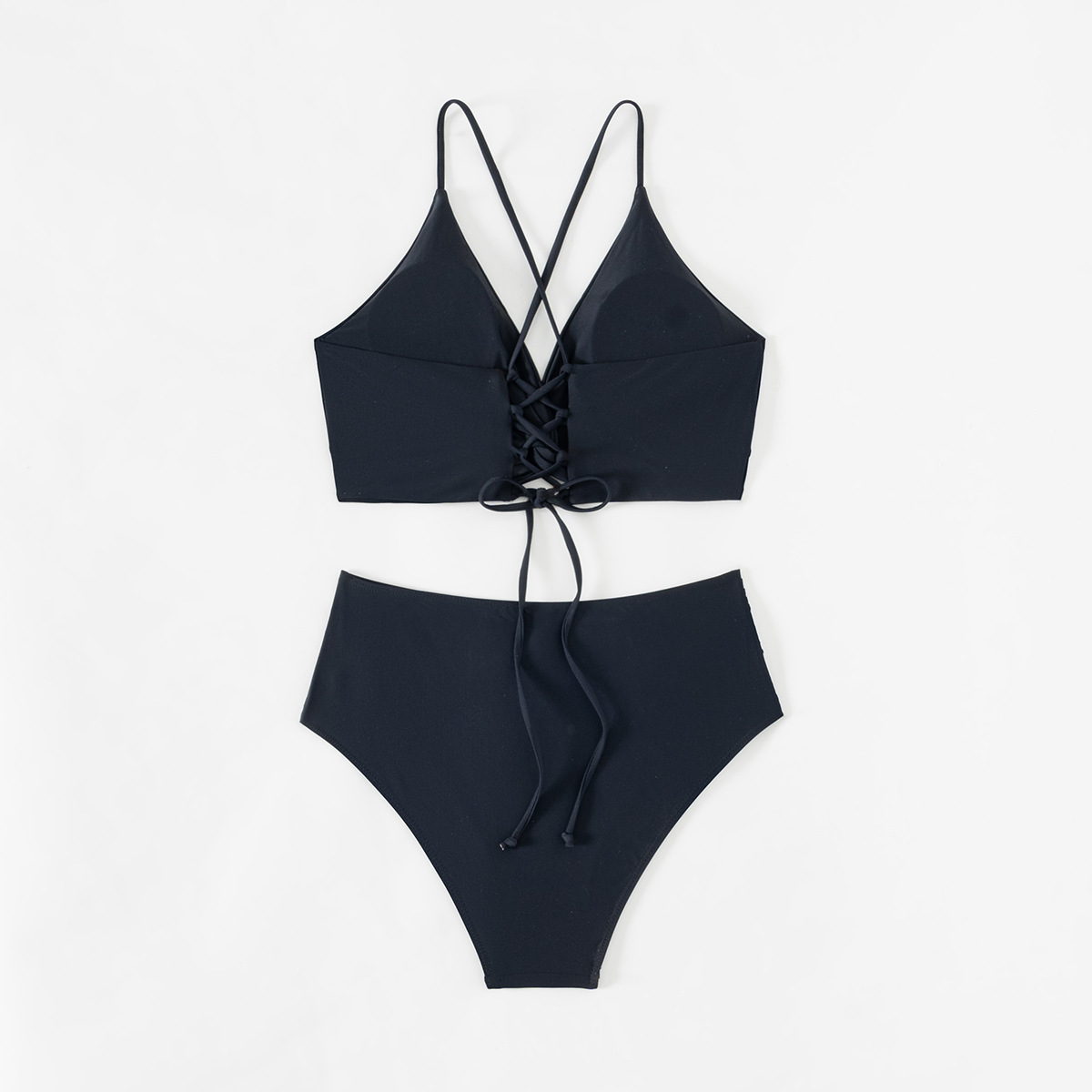 2024 새로운 비키니 수영복 세트 대외 무역 유럽과 미국의 레이스 업 높은 허리 슬리밍 비키니 수영복 여성 아마존