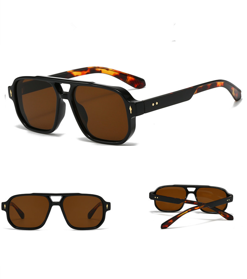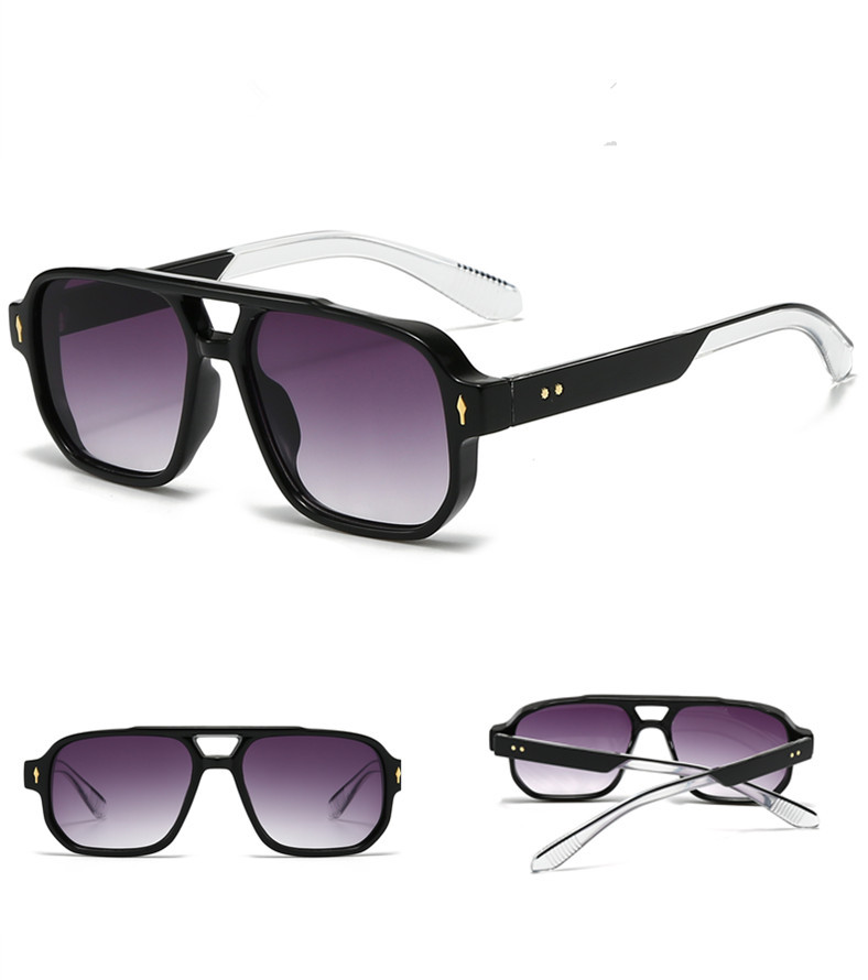 유럽과 미국의 새로운 스타일 스퀘어 패션 더블 빔 선글라스 남성 국경 복고풍 캐주얼 운전 비즈니스 트렌디 선글라스