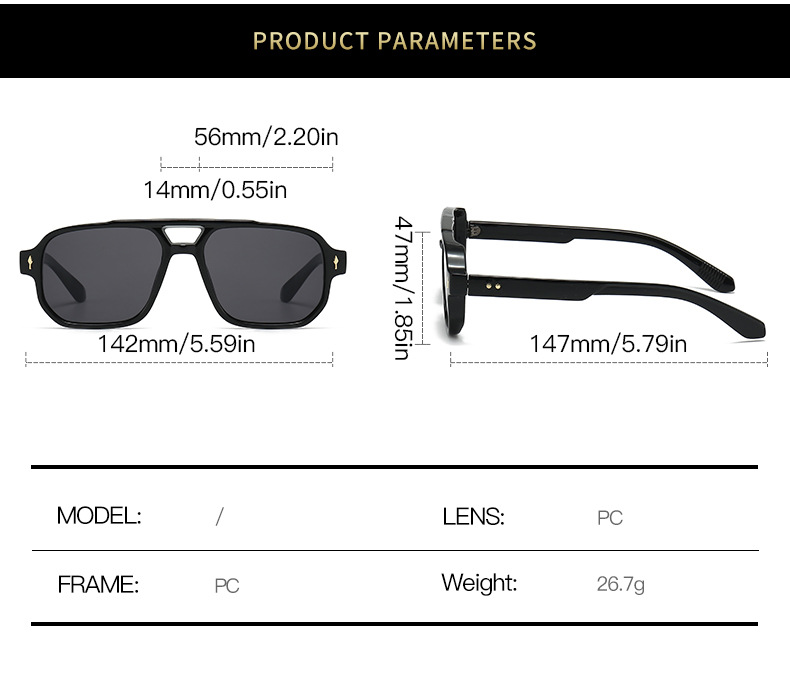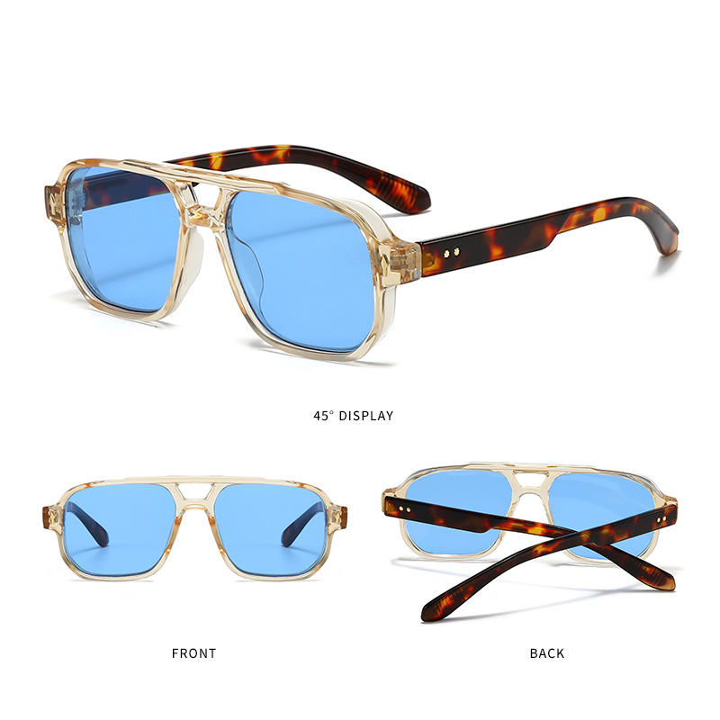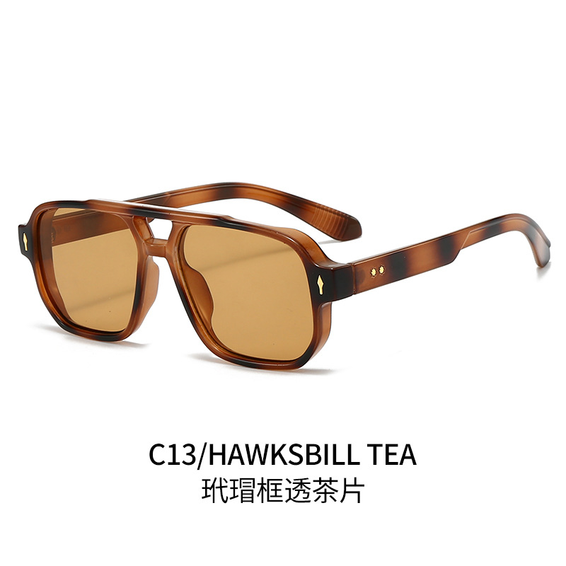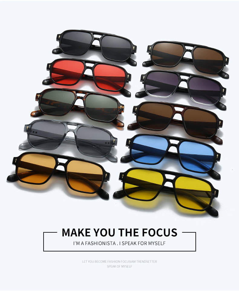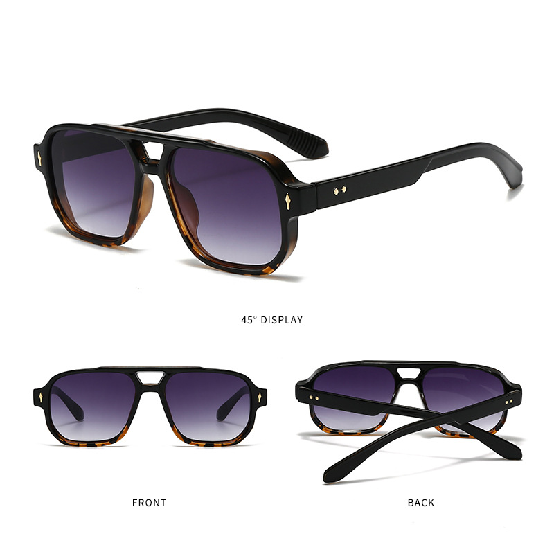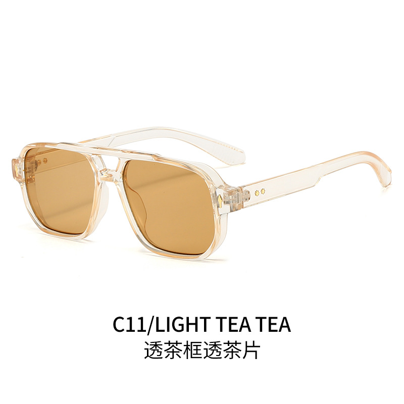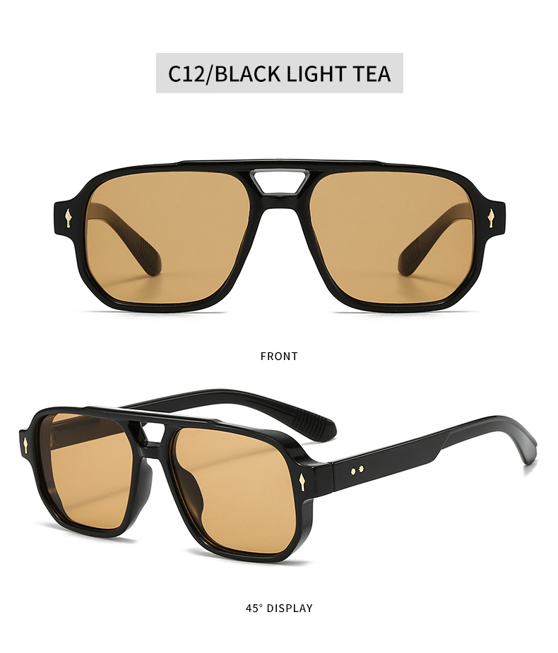 유럽과 미국의 새로운 스타일 스퀘어 패션 더블 빔 선글라스 남성 국경 복고풍 캐주얼 운전 비즈니스 트렌디 선글라스스토어 가기
