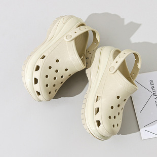 여름 신상품 퍼프 더블 스트랩 크로스 홀 슈즈 여성 샌들 두꺼운 밑창 미끄럼 방지 야외 캐주얼 슬리퍼스토어 가기