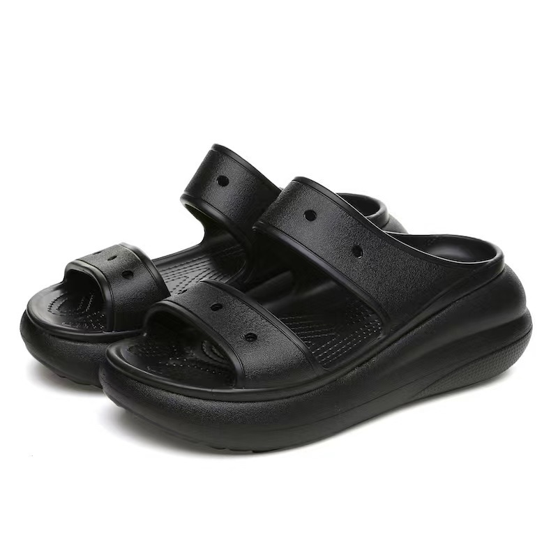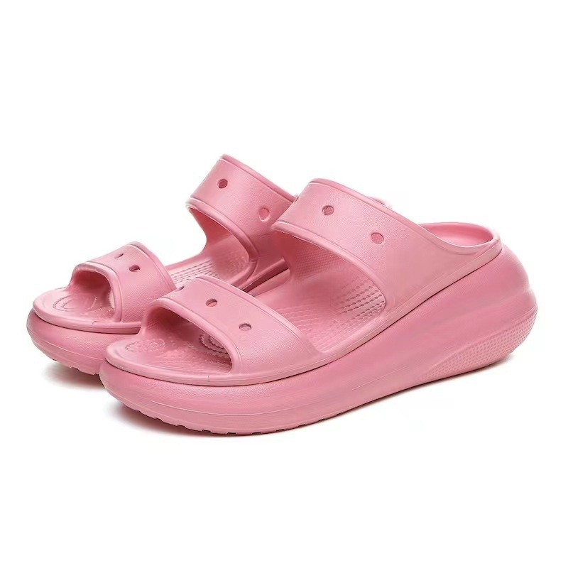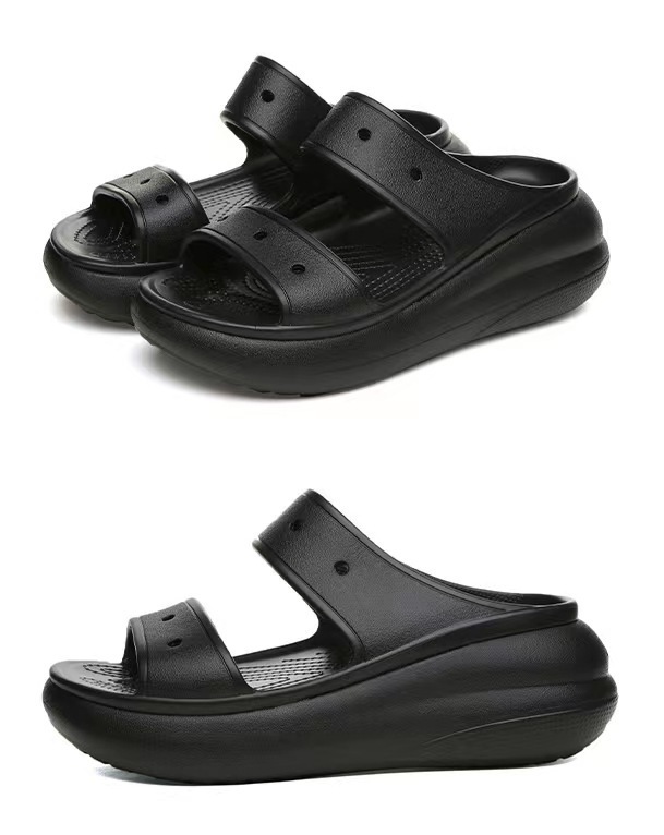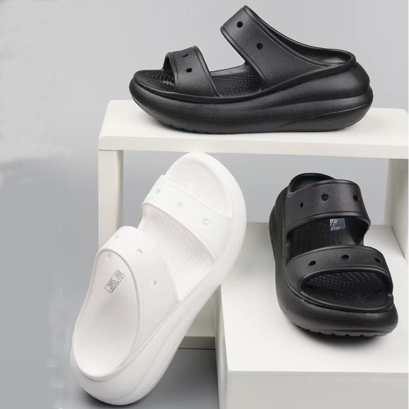 여름 신상품 퍼프 더블 스트랩 크로스 홀 슈즈 여성 샌들 두꺼운 밑창 미끄럼 방지 야외 캐주얼 슬리퍼