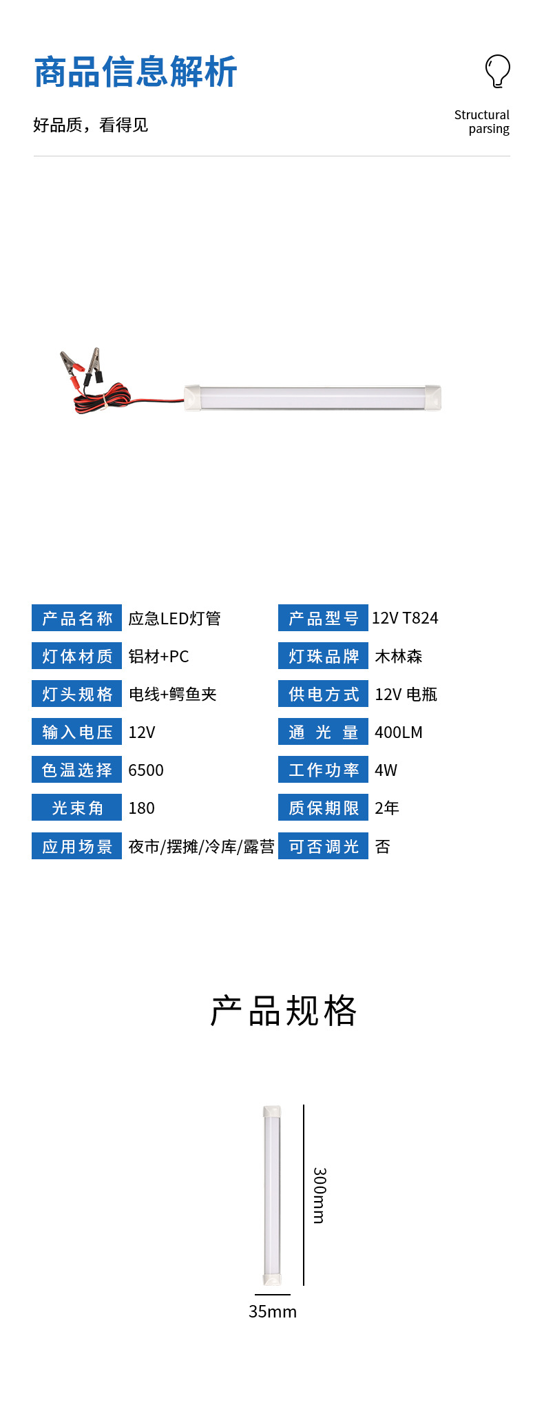 LED 비상 12V 라이트 튜브 낮은 전압 클립 라이트 튜브 야외 캠핑 홈 나이트 스톨 콜드 스토리지 선박 캠핑 라이트스토어 가기