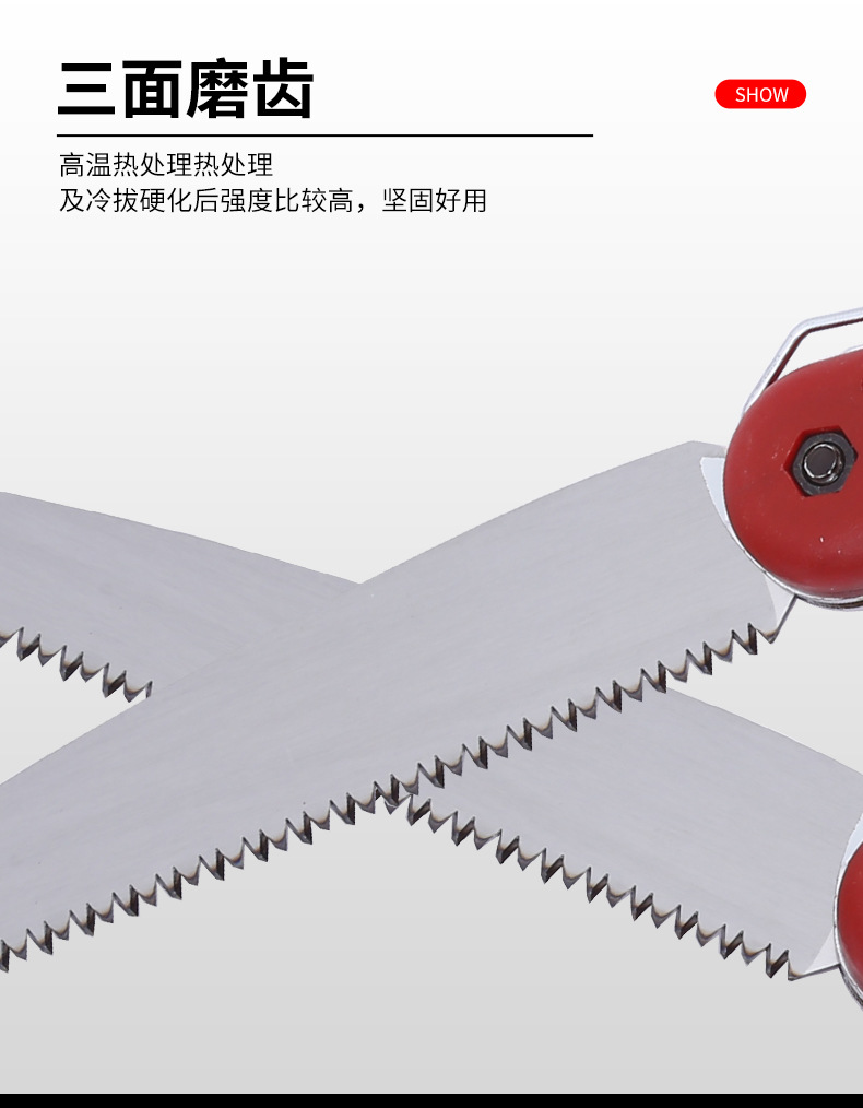• 빨간 플라스틱 손잡이 접는 톱