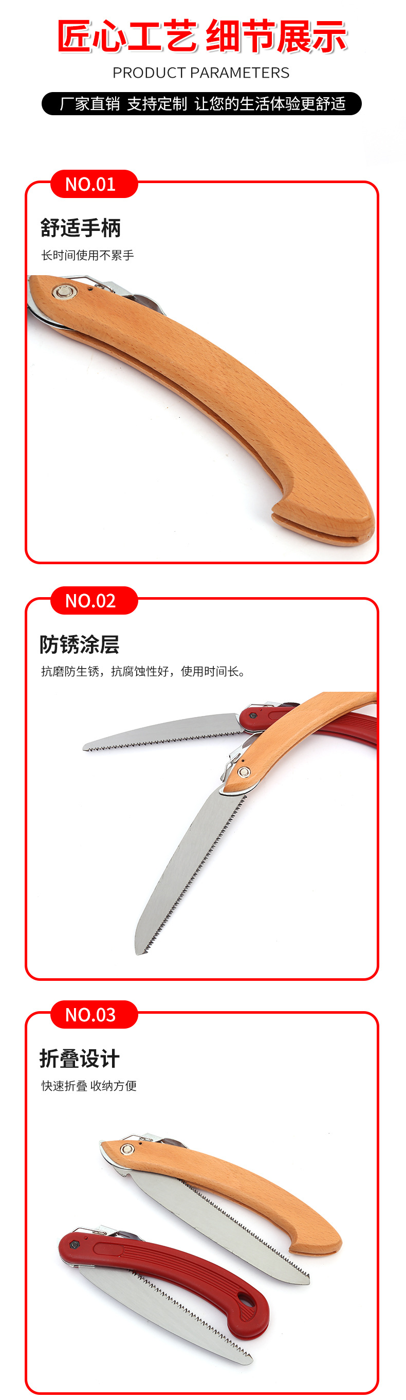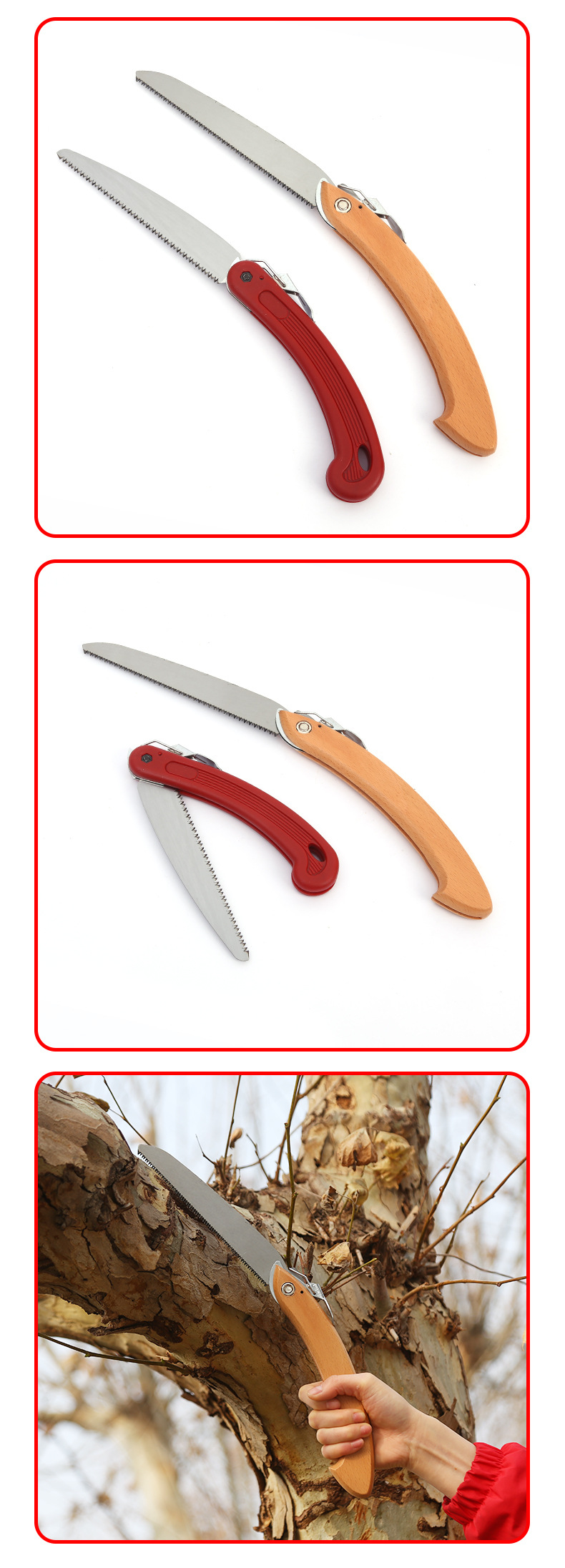 • 나무 손잡이와 접는 톱