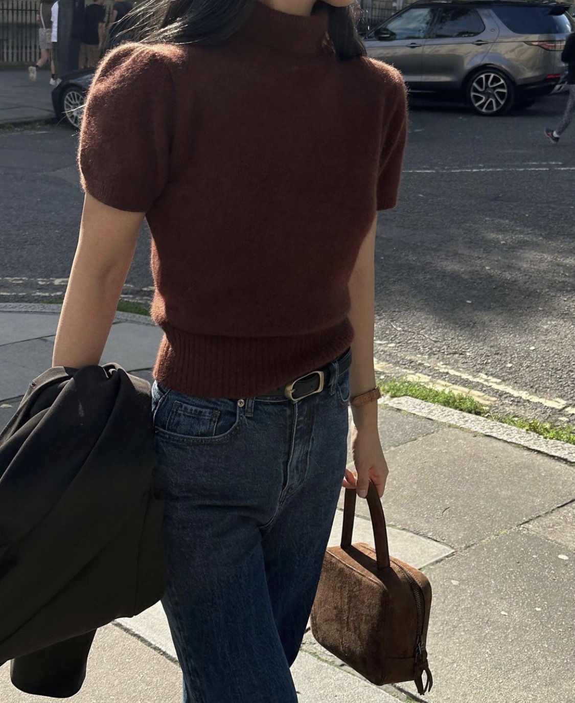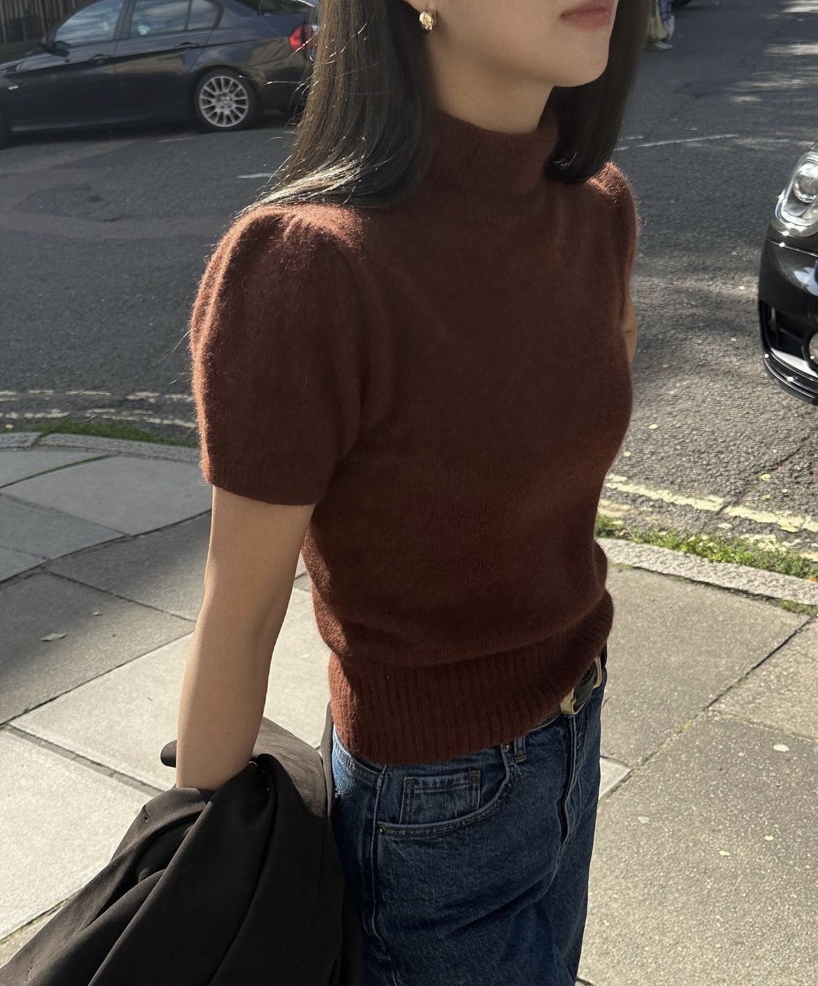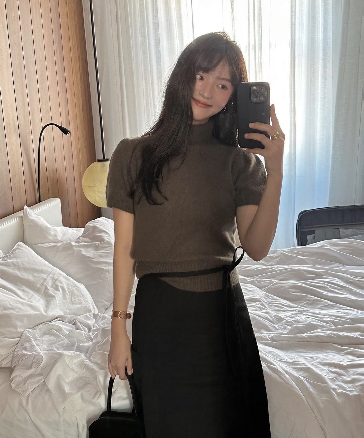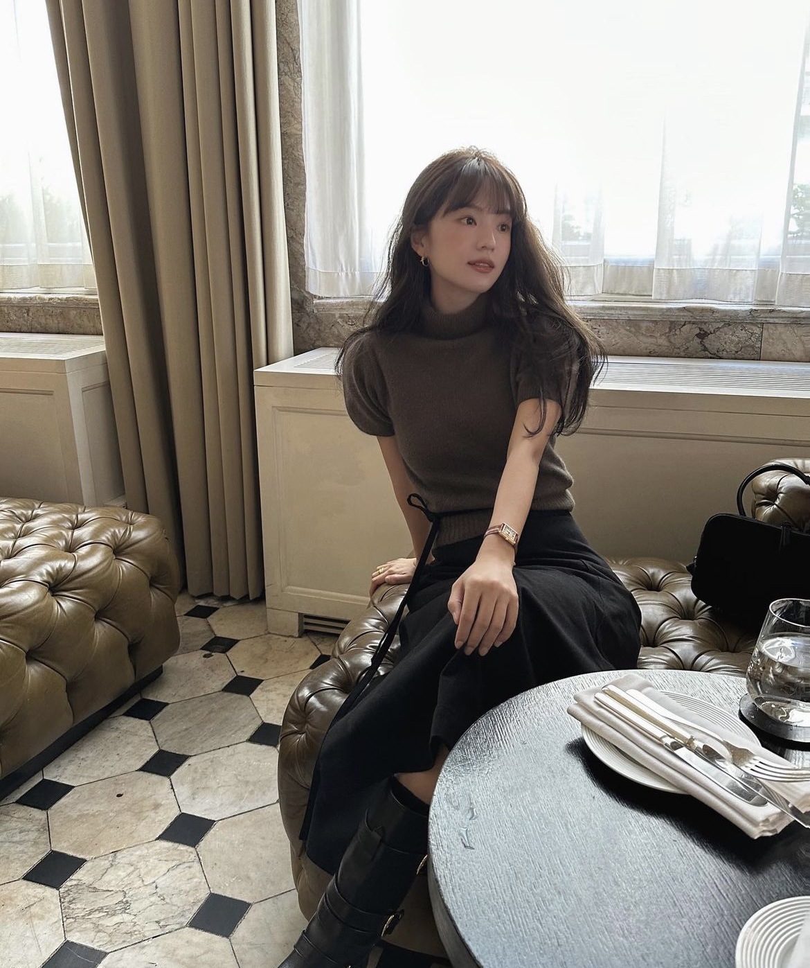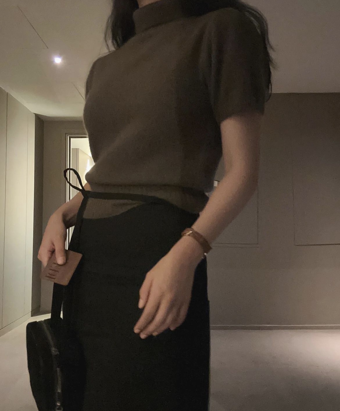 适宜的领高,刚好可以很好滴修饰脖颈线条,上身非常气质~