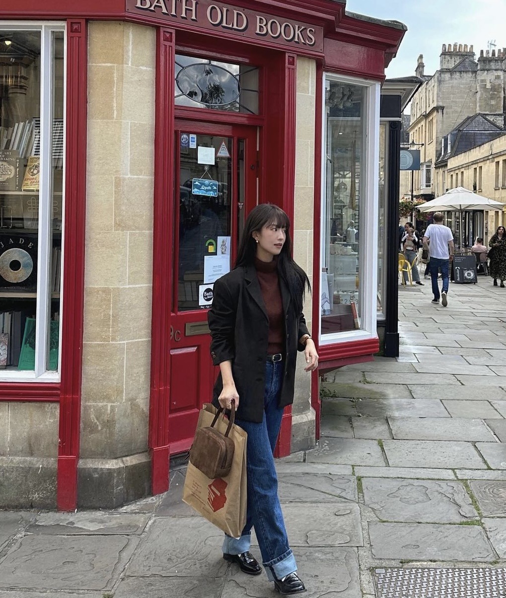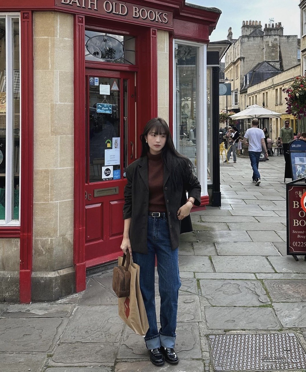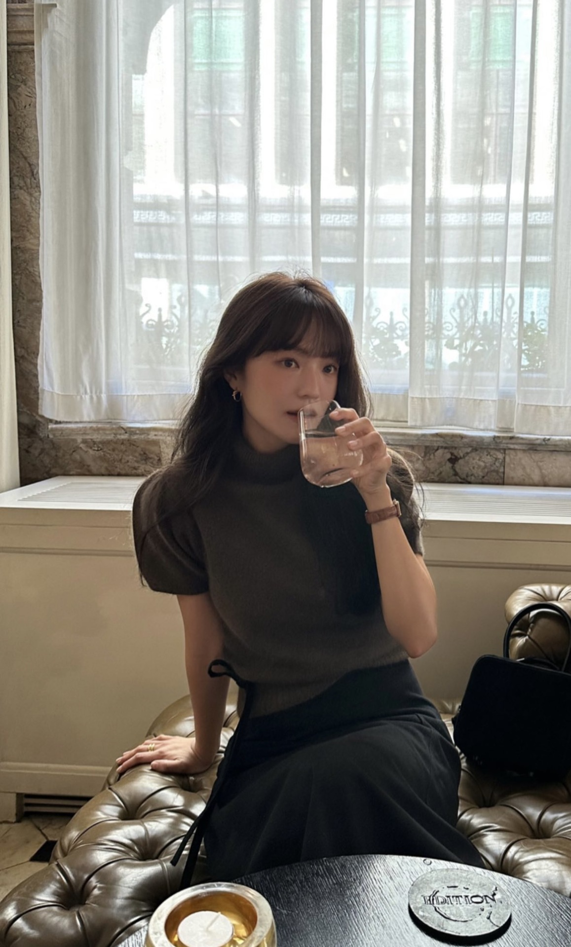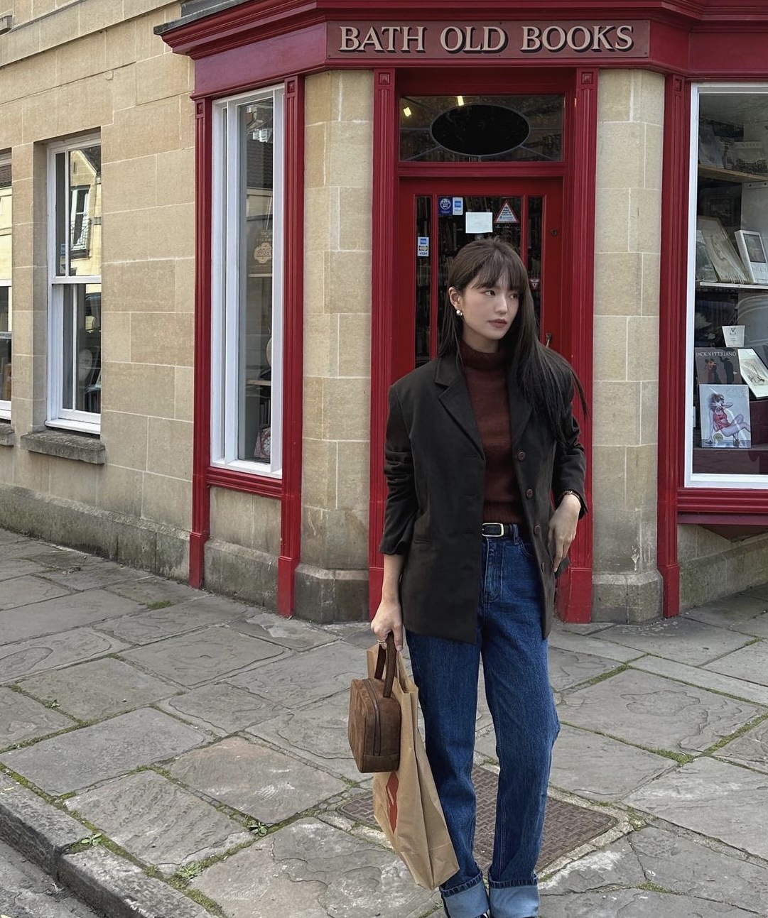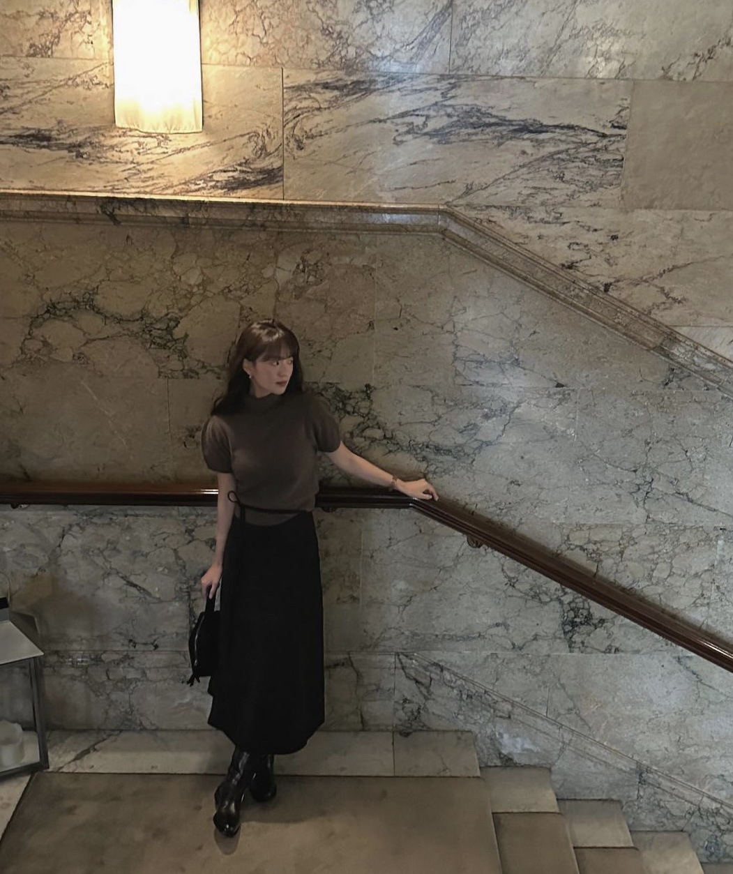 适宜的领高,刚好可以很好滴修饰脖颈线条,上身非常气质~