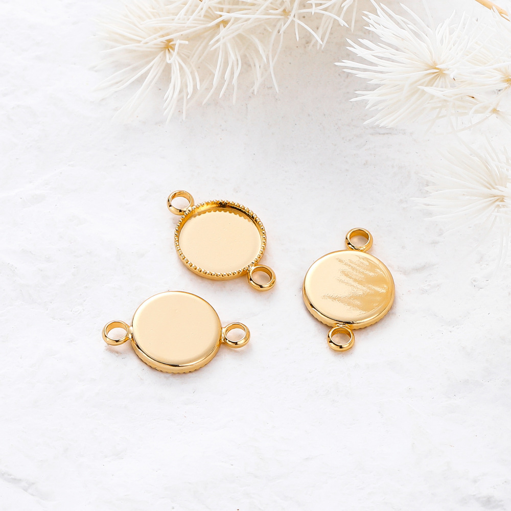 18K 색상 유지 6-12mm 보석 분지 펜던트 용접 더블 링 트레이 DIY 보석 액세서리 순수 구리 이중 교수형 보석베이스