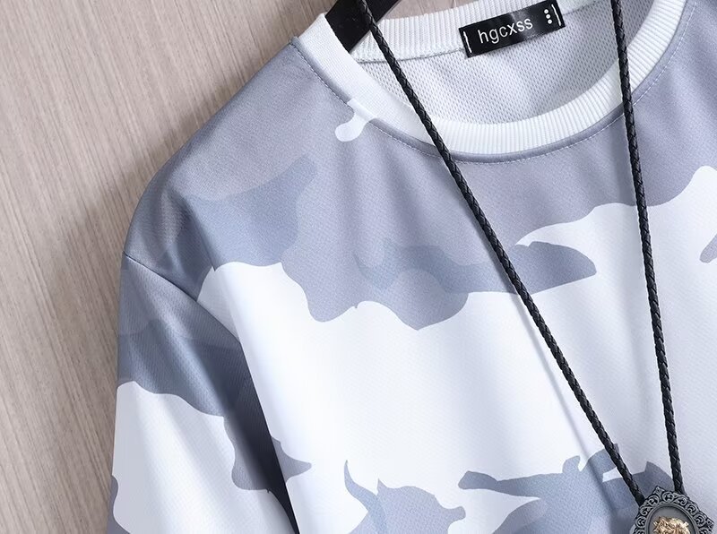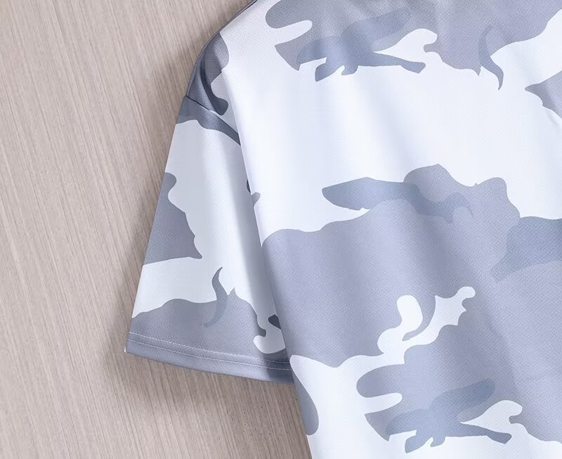 공장 도매 여름 위장 스포츠 세트 남자의 통기성 빠른 건조 운동복 남자의 반팔 티셔츠 캐주얼 투피스 복장