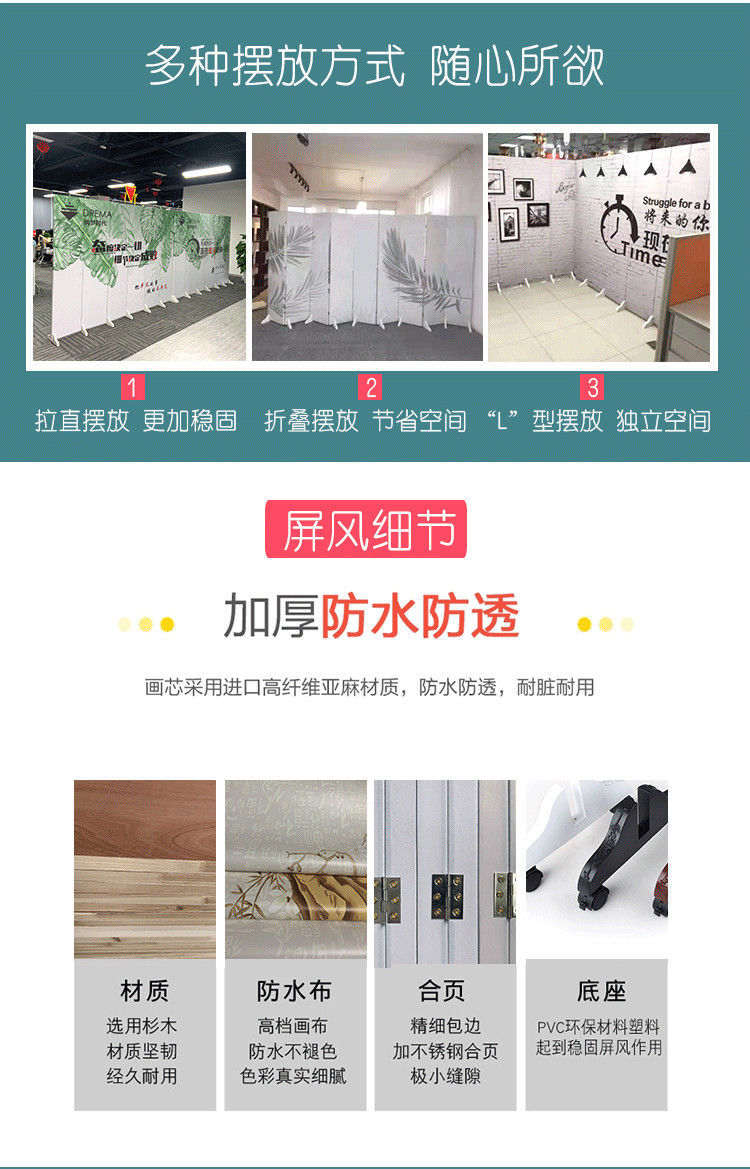 공장 순수 그레이 스크린 파티션 벽 사무실 에어컨 입구 전시실 현대 홈 패브릭 접이식 화면