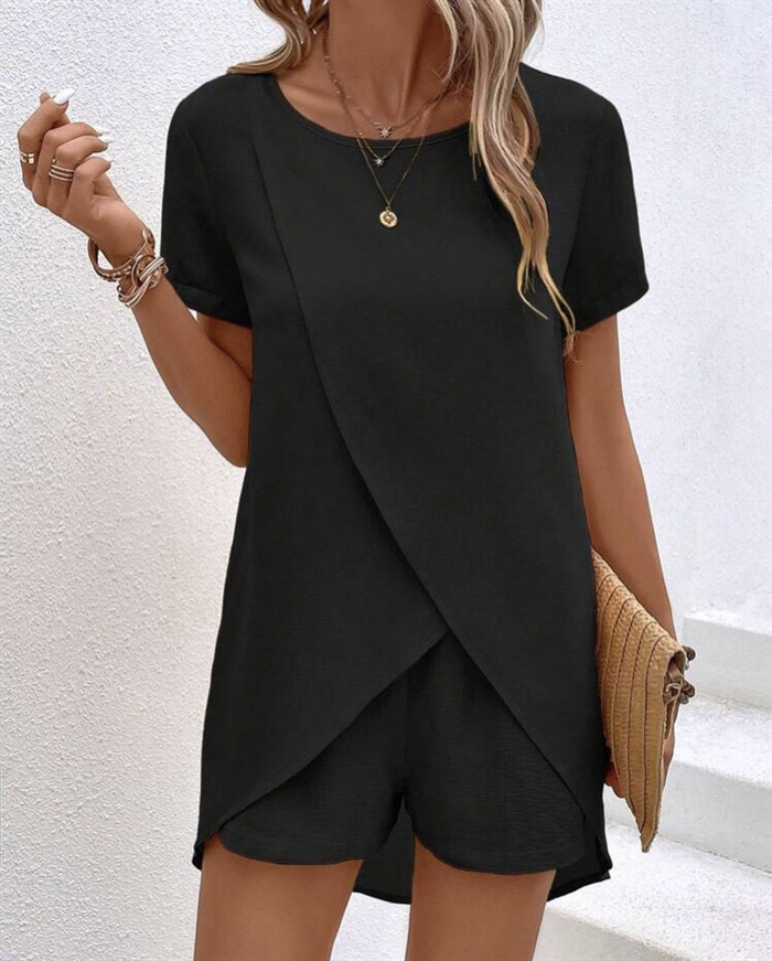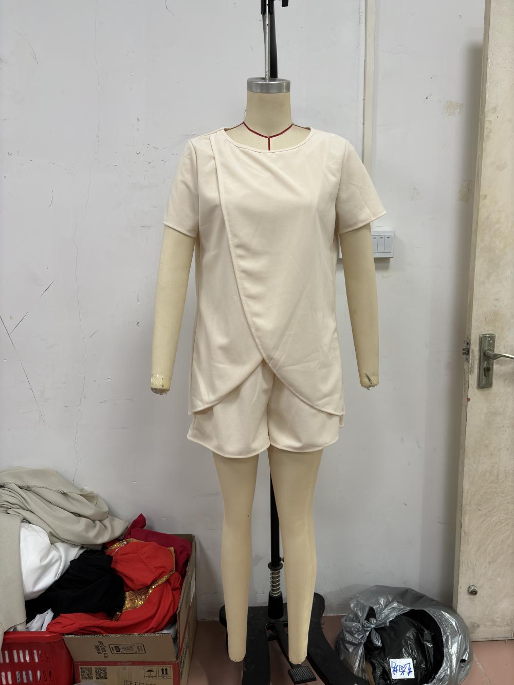 유럽과 미국의 국경 24 년 아마존 봄과 여름 새로운 단색 여성 세트 불규칙한 탑 반바지 투피스 세트스토어 가기