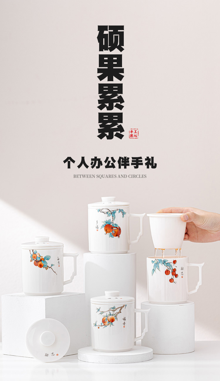 뚜껑 선물 로고가있는 세라믹 차 컵 개인 차 분리 버블 컵 머그잔 사무실 머그잔