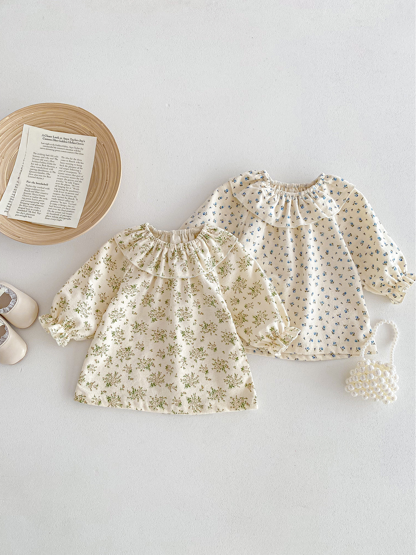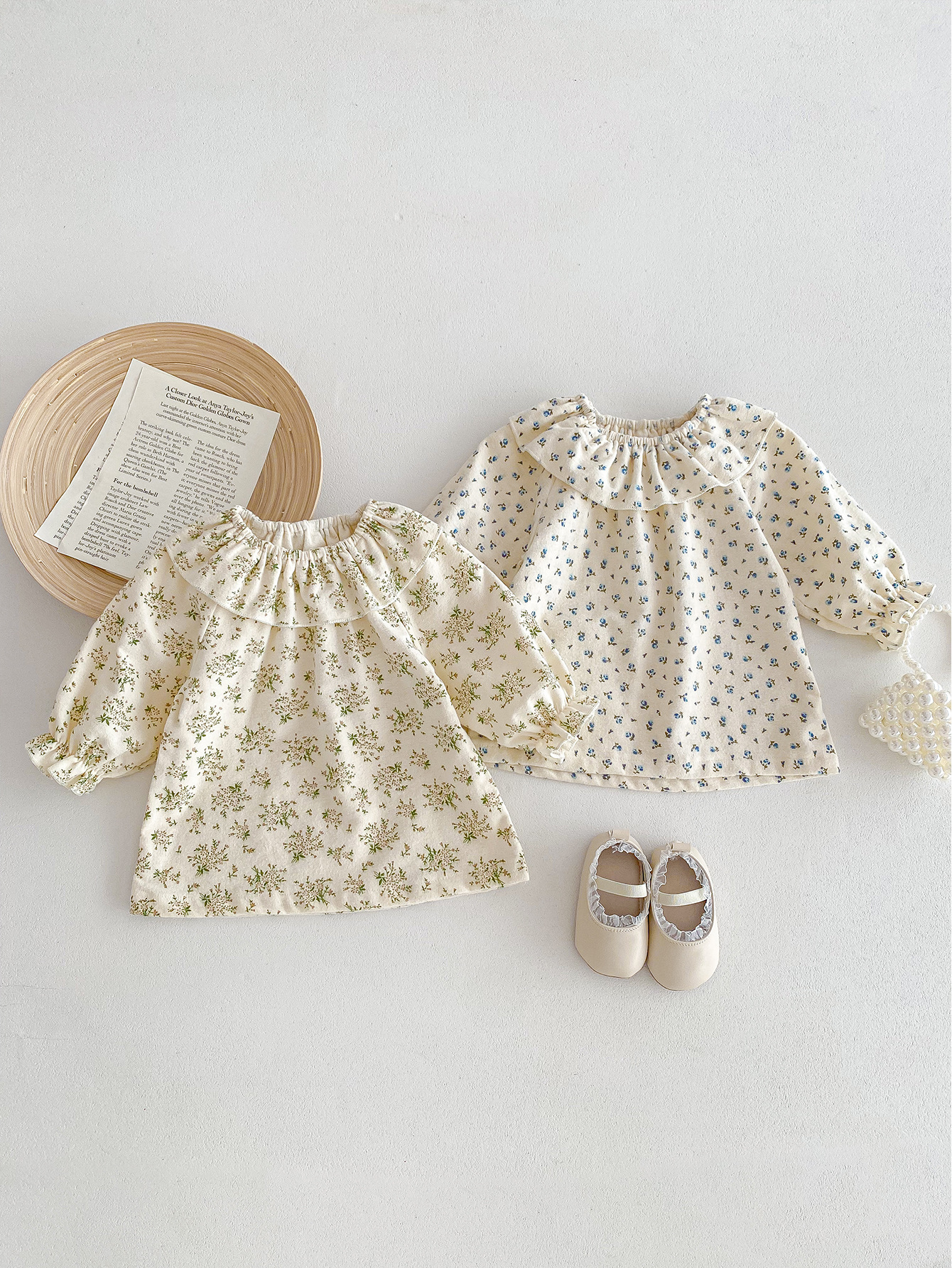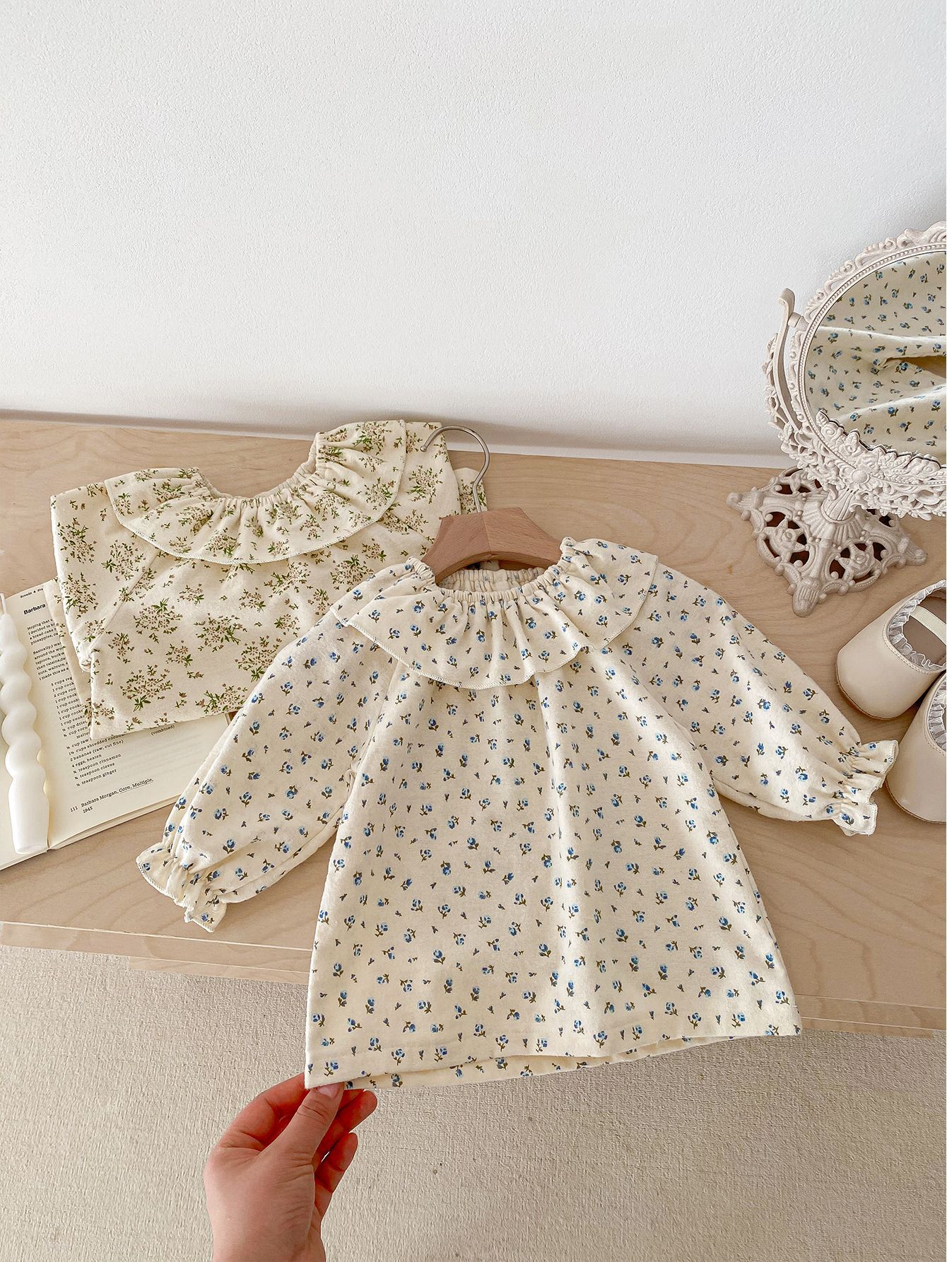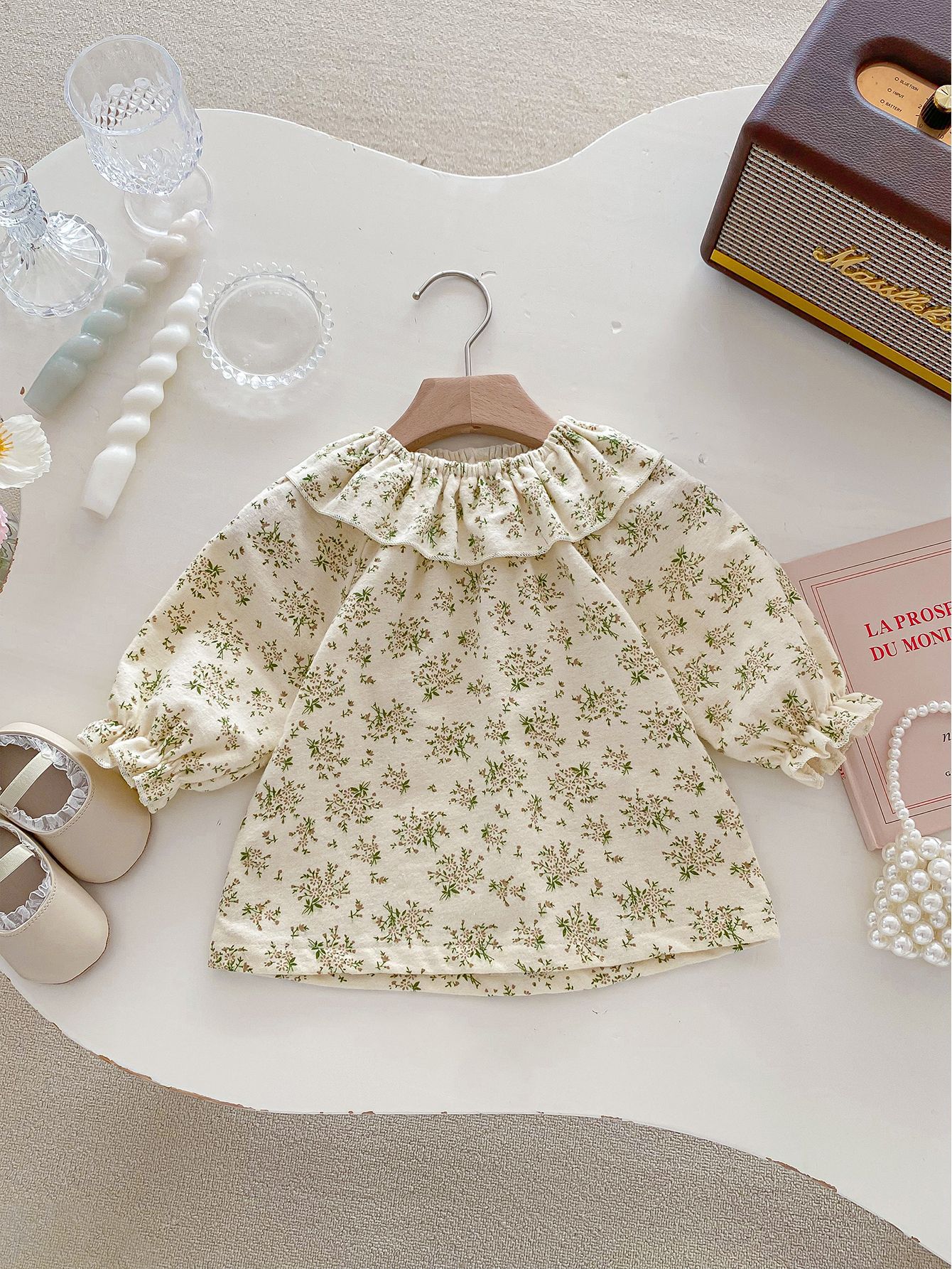 인즈 한국 스타일 아기 봄 착용 아기 소녀 아기 긴 소매 연꽃 잎 칼라 티셔츠 꽃베이스 셔츠 인형 칼라 탑