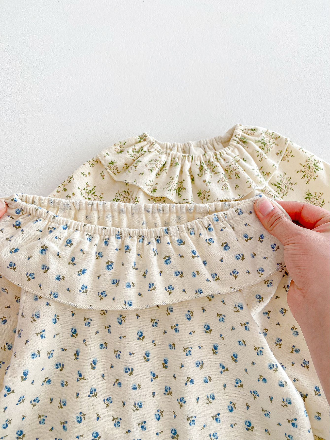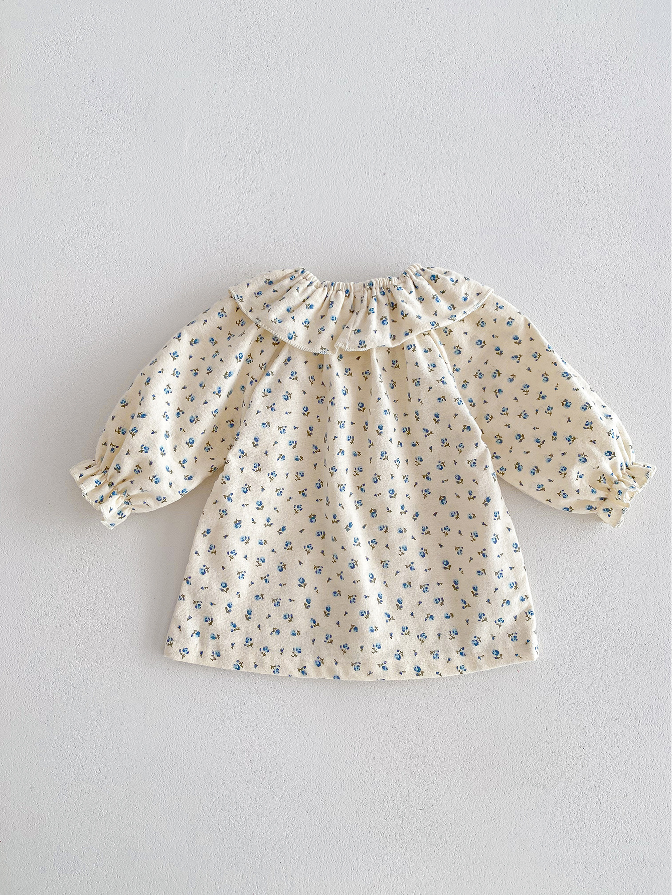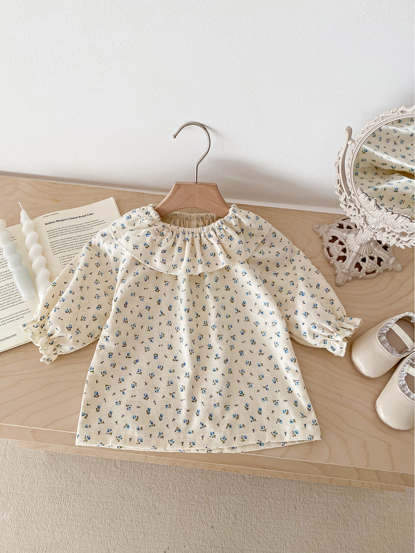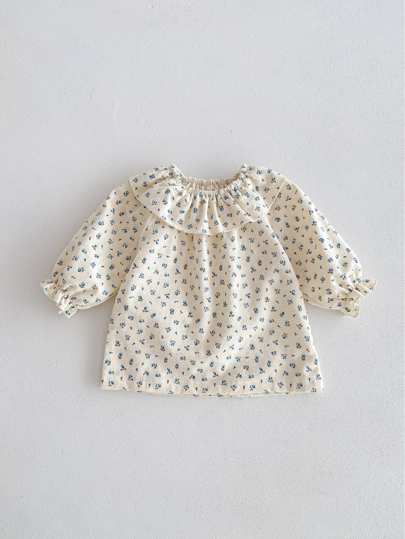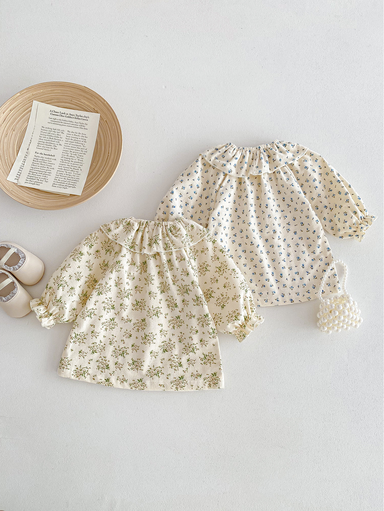 인즈 한국 스타일 아기 봄 착용 아기 소녀 아기 긴 소매 연꽃 잎 칼라 티셔츠 꽃베이스 셔츠 인형 칼라 탑
