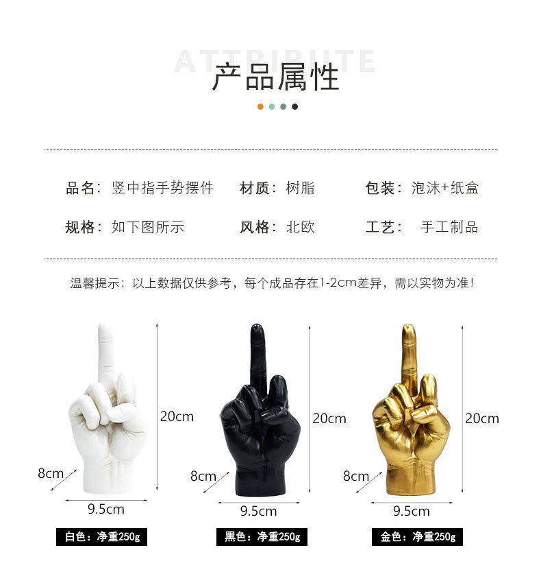 미국의 창조적 인 가운데 손가락 조각 홈 침실 개인 데스크톱 국경 새로운 수지 공예 장식품