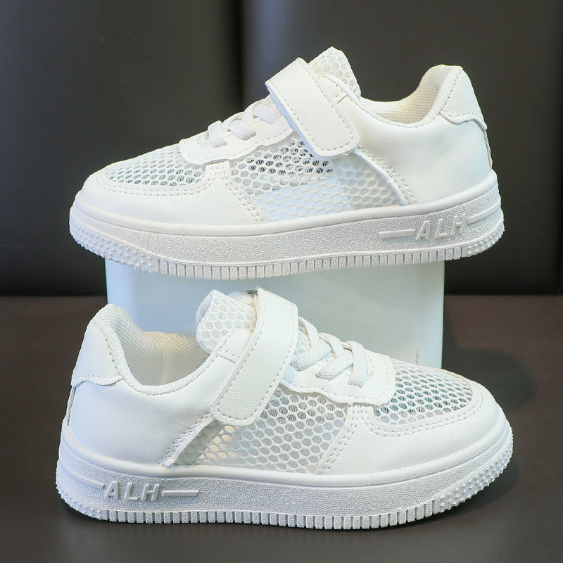 봄과 여름에 남학생과 여학생을 위한 학교 지정 어린이 통기성 흰색 신발, 초등학생을 위한 부드러운 밑창 캐주얼 운동화, 흰색 운동화