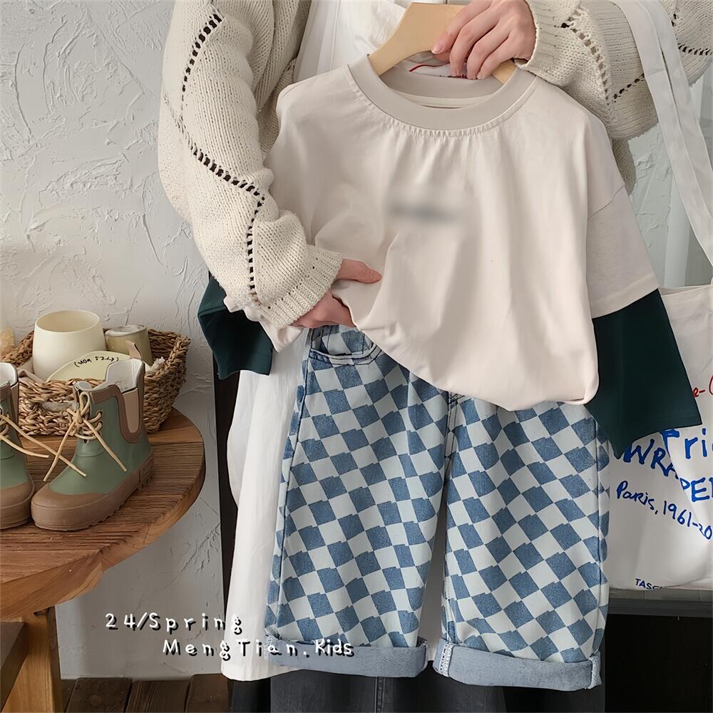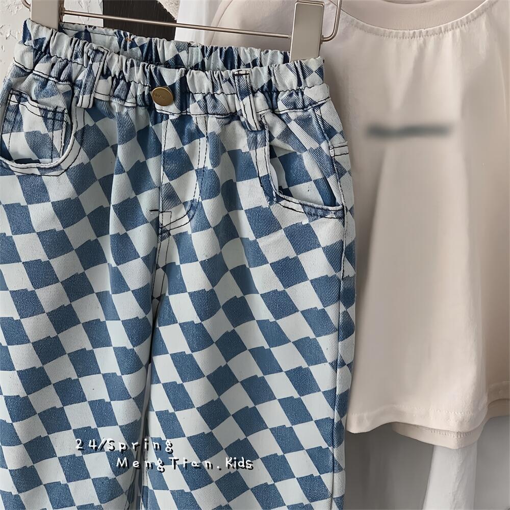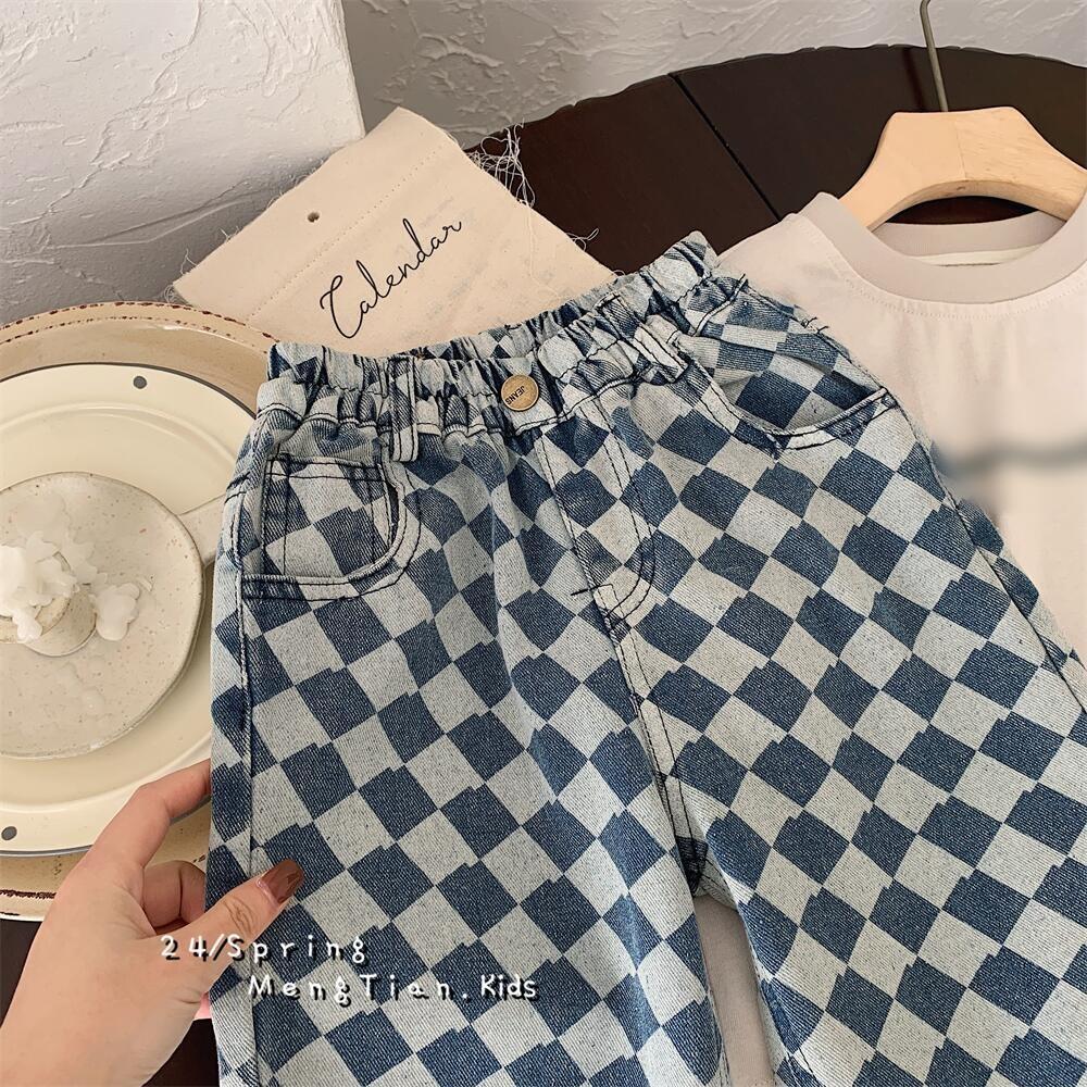 아동용 청바지 2025 남아 봄 가을 신상 바지 어린이 한국 스타일 다이아몬드 무늬 청바지 다용도 아동복스토어 가기