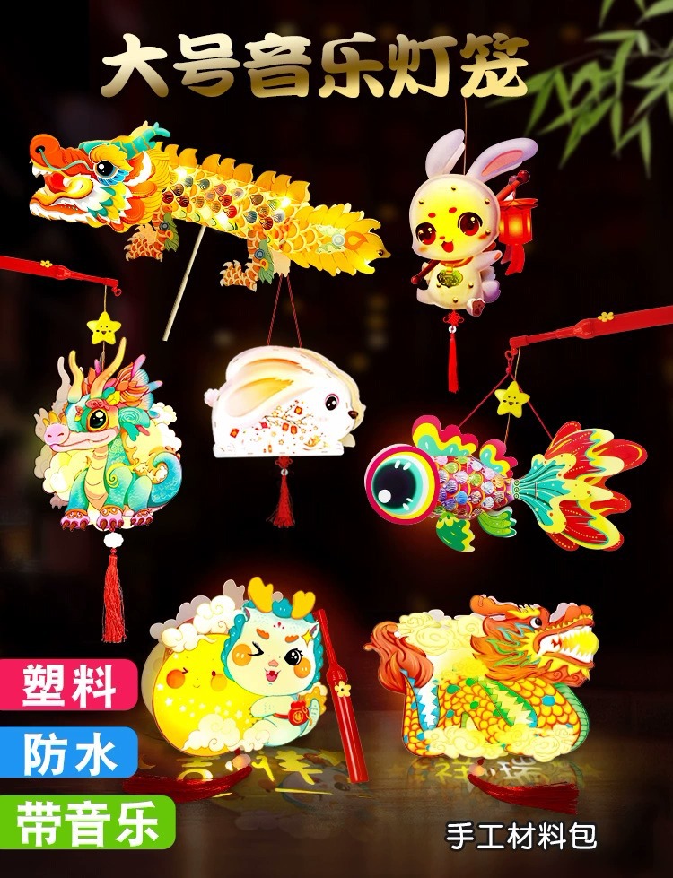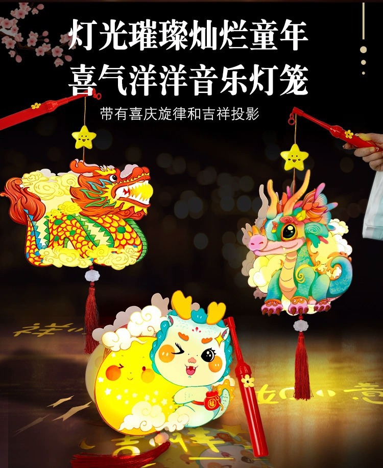 2024 년 새해 음악 등불 드래곤 손의 새해 DIY 재료 아이들의 봄 축제 등불 축제 등불스토어 가기