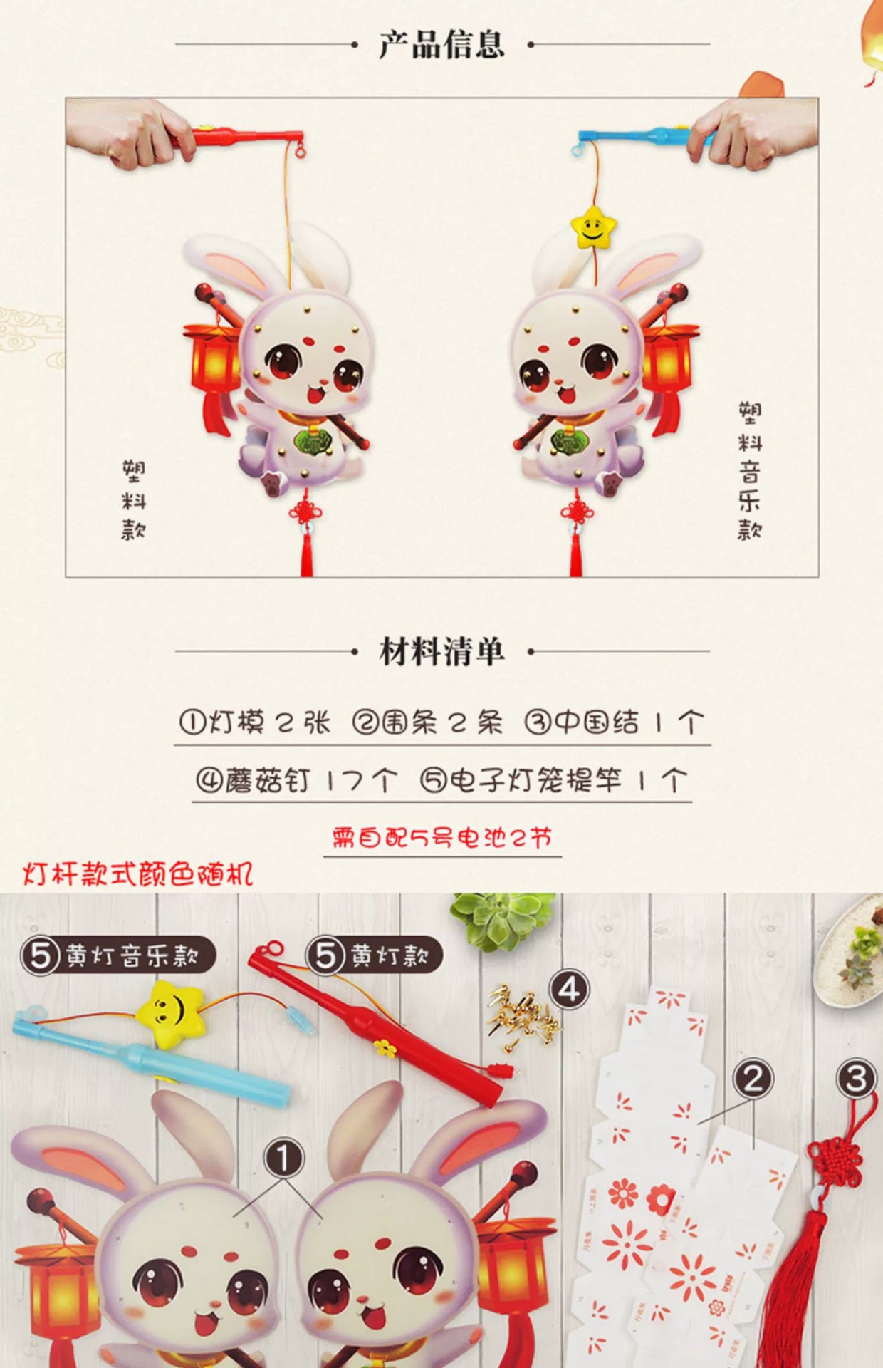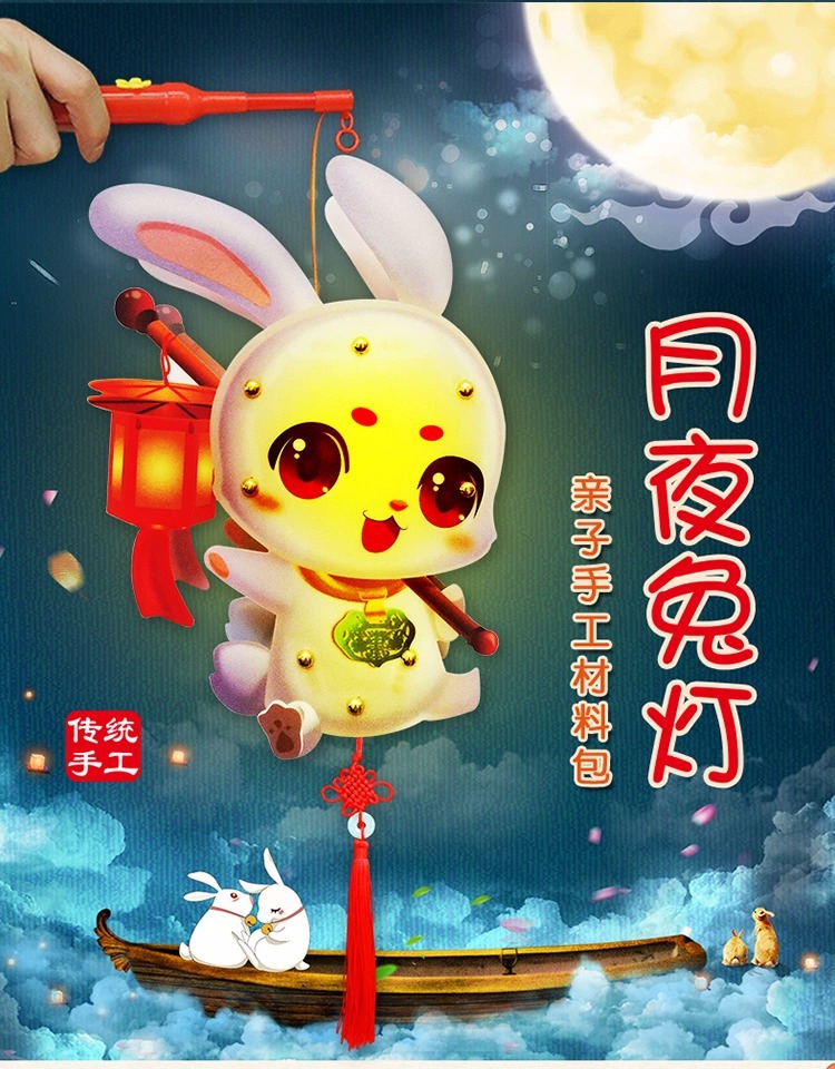 • (음악) 달빛 토끼 랜턴 [대형 PPLED 라이트 폴 더블 컨트롤 음악 중국 섹션 배터리 교체]]