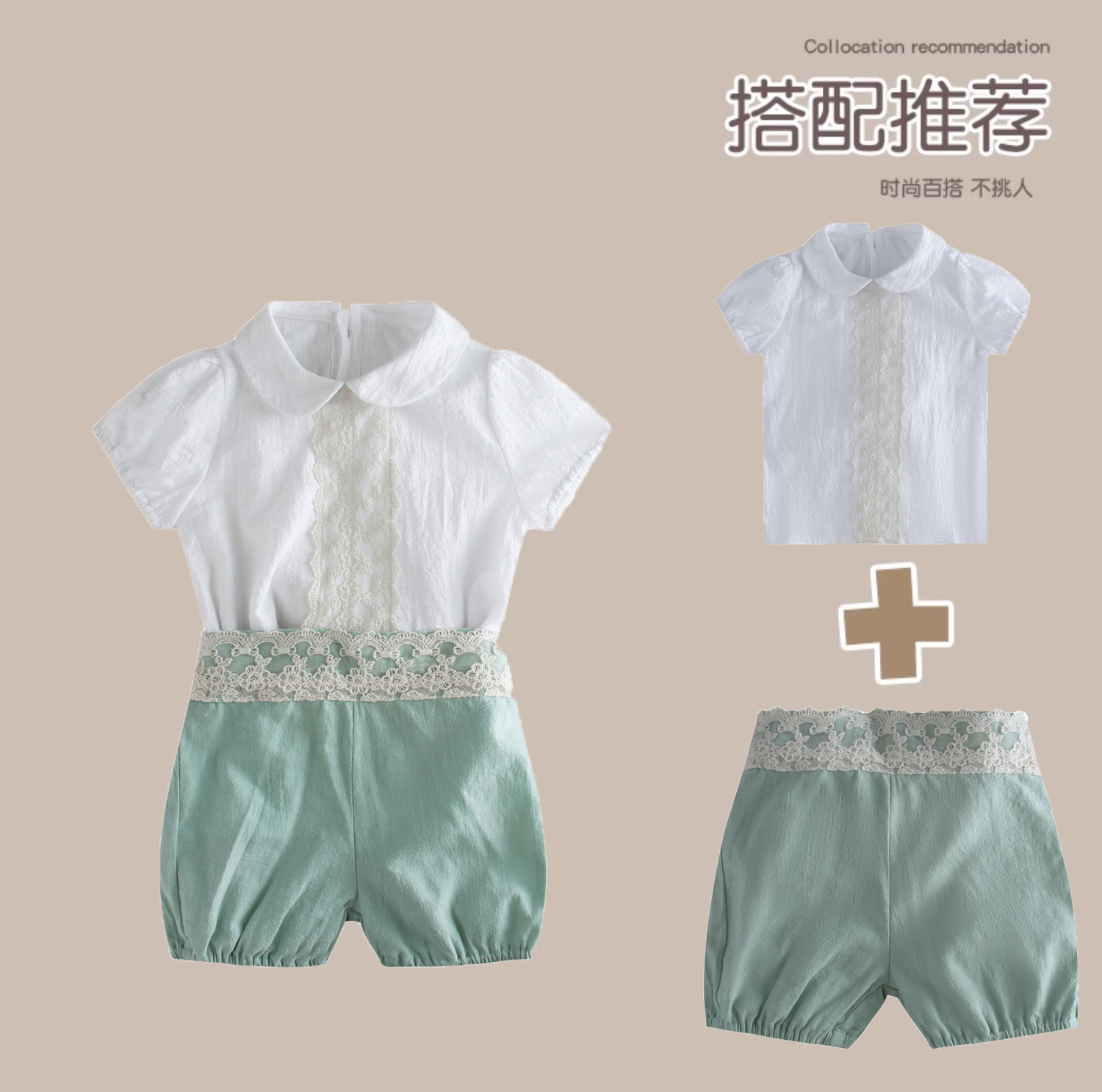 대외 무역 유럽과 미국의 스페인 스타일 소년 반팔 반바지 1 년 된 사진 유아복 세트 도매