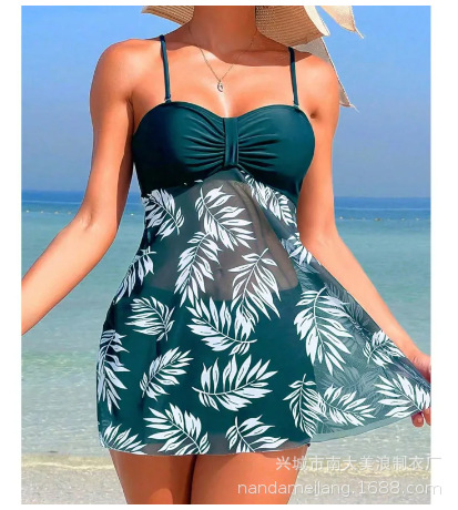 2025 유럽과 미국의 섹시한 대형 거즈 스커트 스플릿 수영복 수영복 여성 원피스 수영복 제조 업체 스팟 도매 배꼽 커버