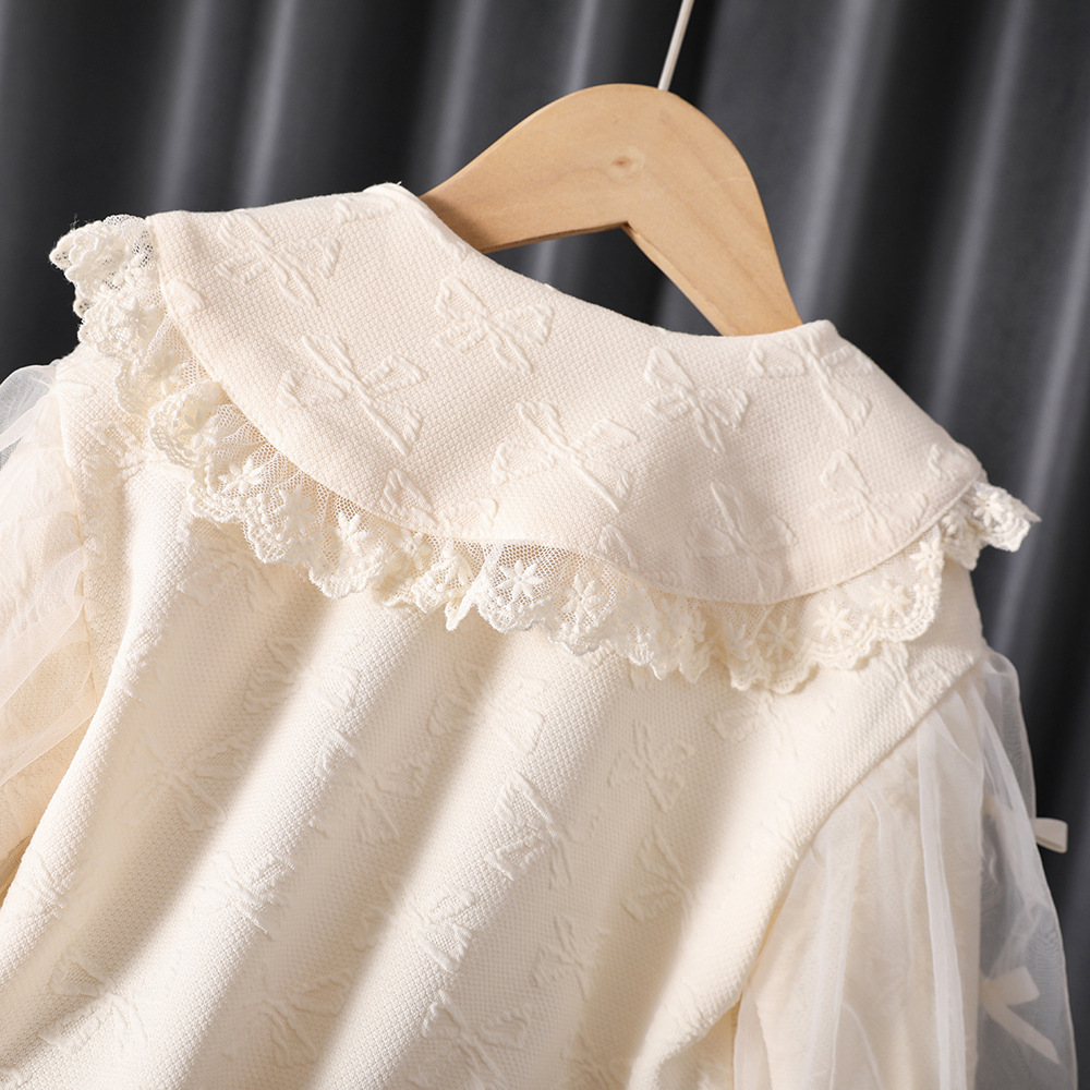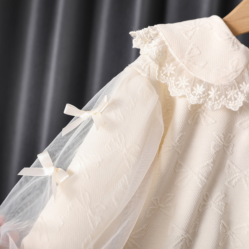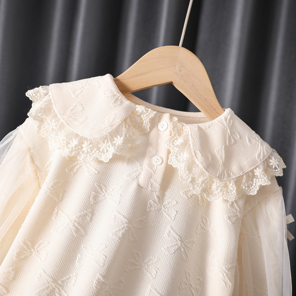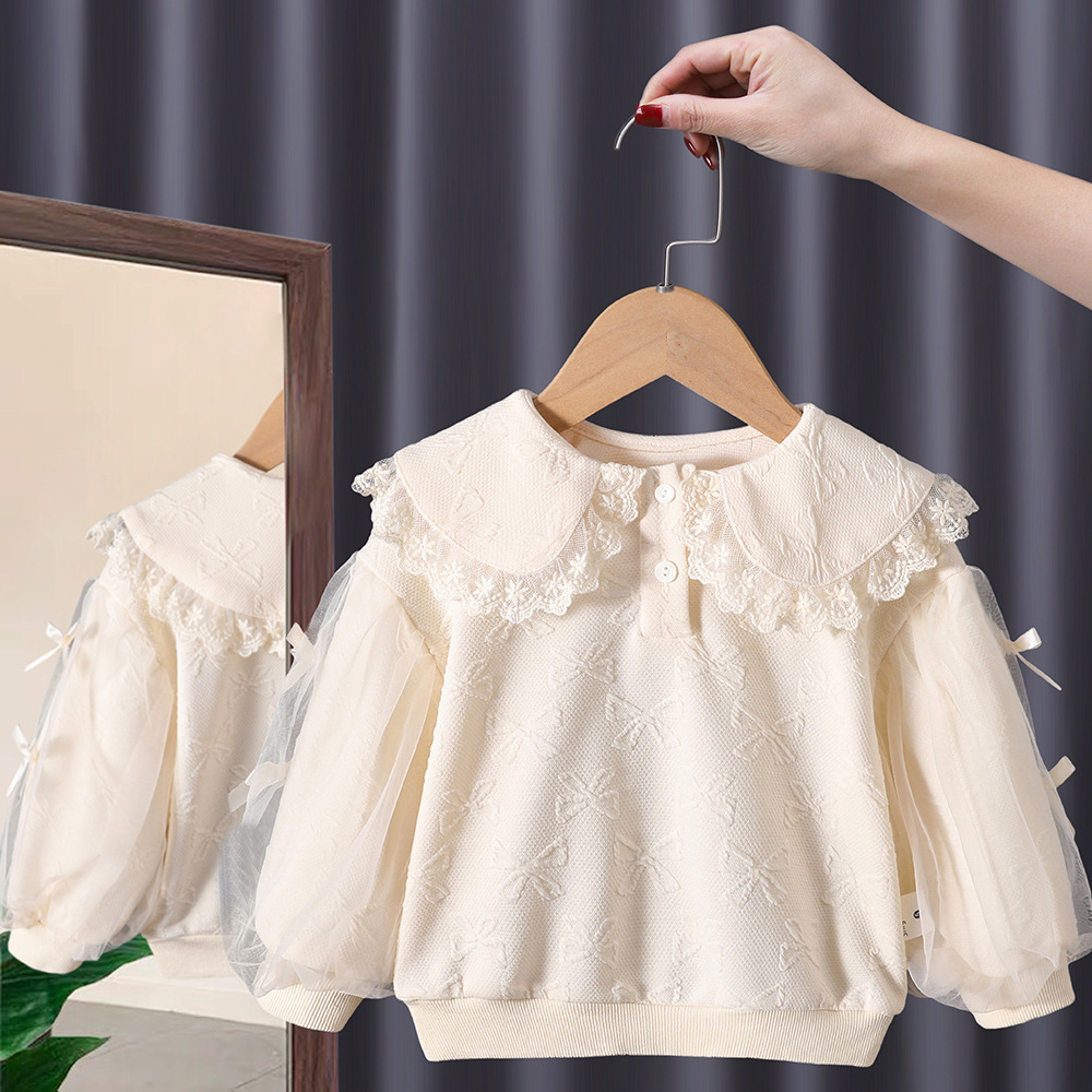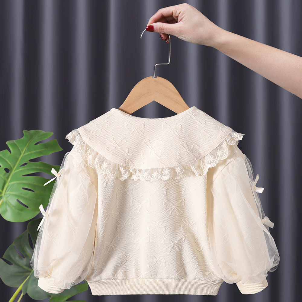 라임 소녀의 봄과 가을 활 메쉬 소매 스웨트 셔츠 어린이 서양식 달콤한 인형 셔츠 아기 공주 스타일 탑