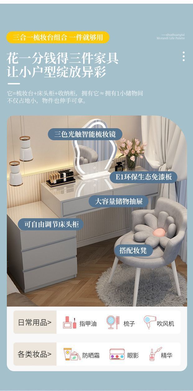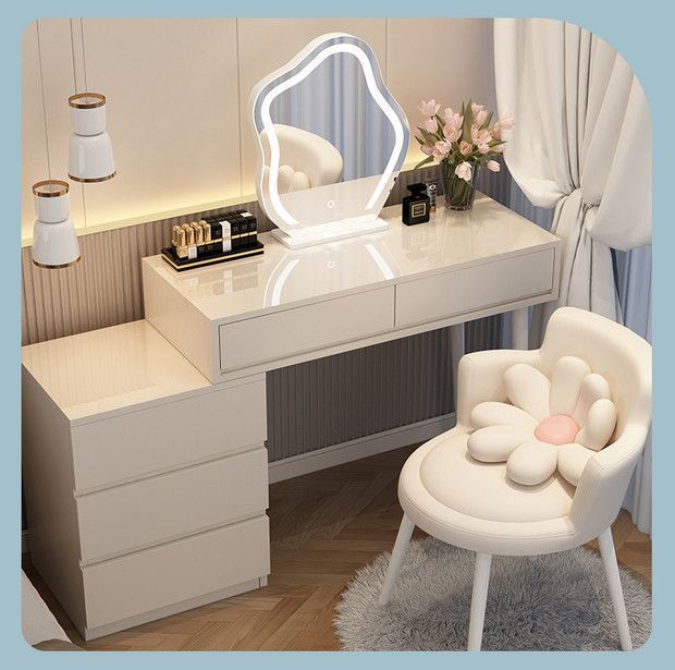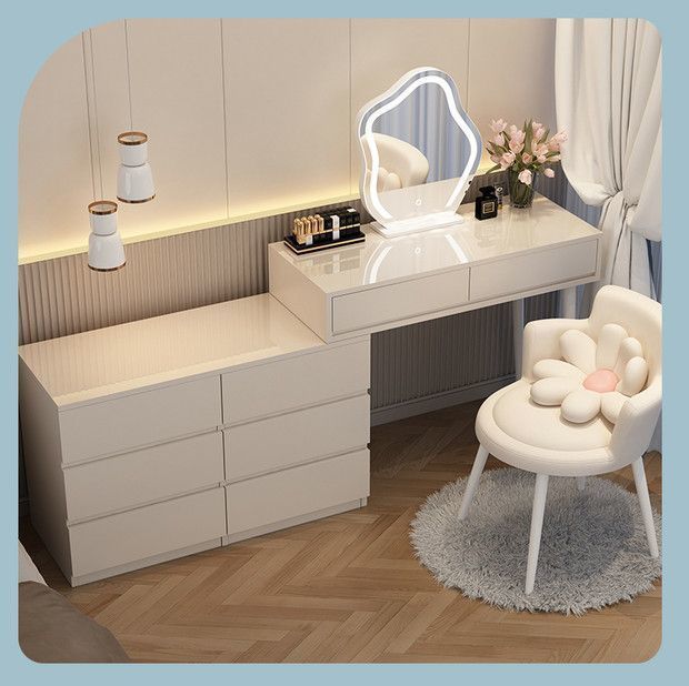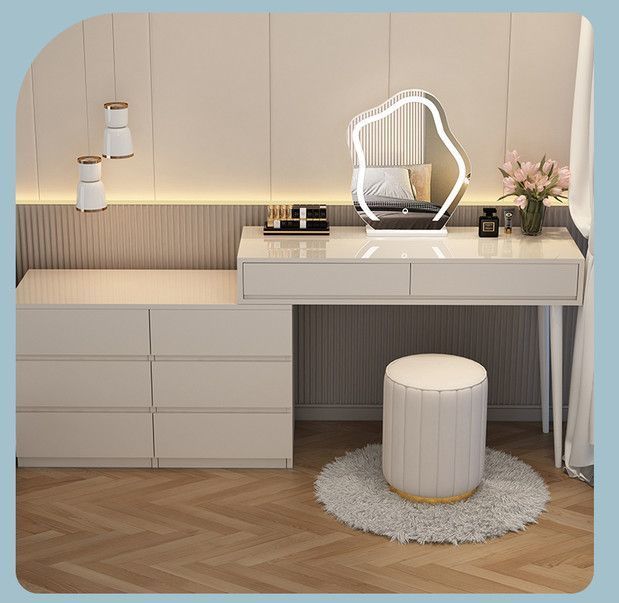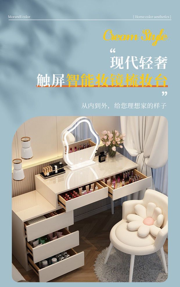 2024 크림 스타일 드레싱 테이블 현대 간단한 스토리지 캐비닛 침대 옆 테이블 드레싱 테이블 통합 책상 텔레스코픽 드레싱 테이블스토어 가기