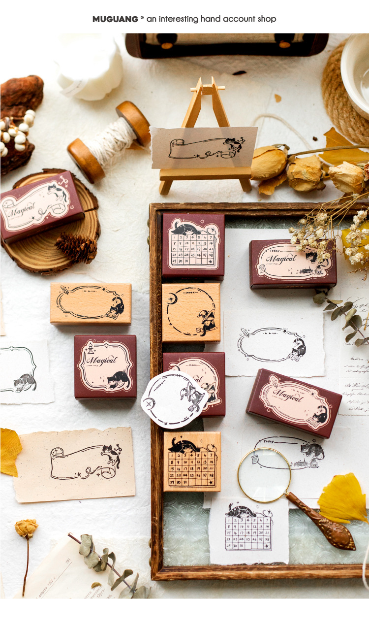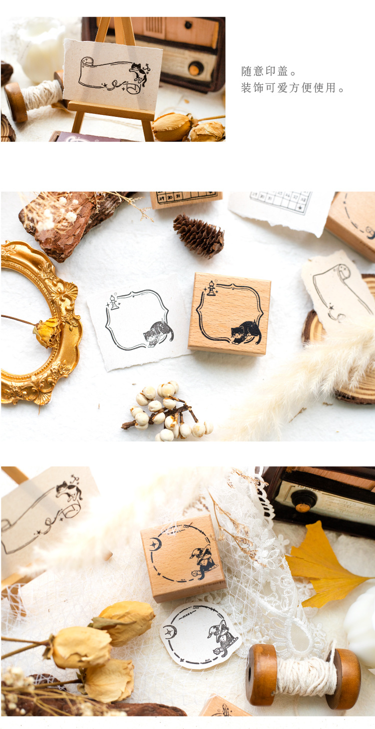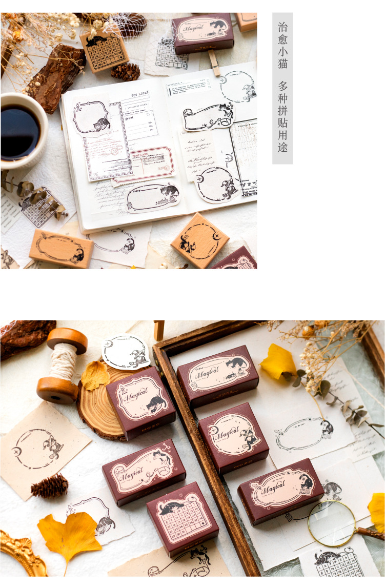 귀여운 새끼 고양이 시리즈 테두리 그림 나무 물개 복고풍 새끼 고양이 달력 손 계정 장식 콜라주 고무 스탬프스토어 가기