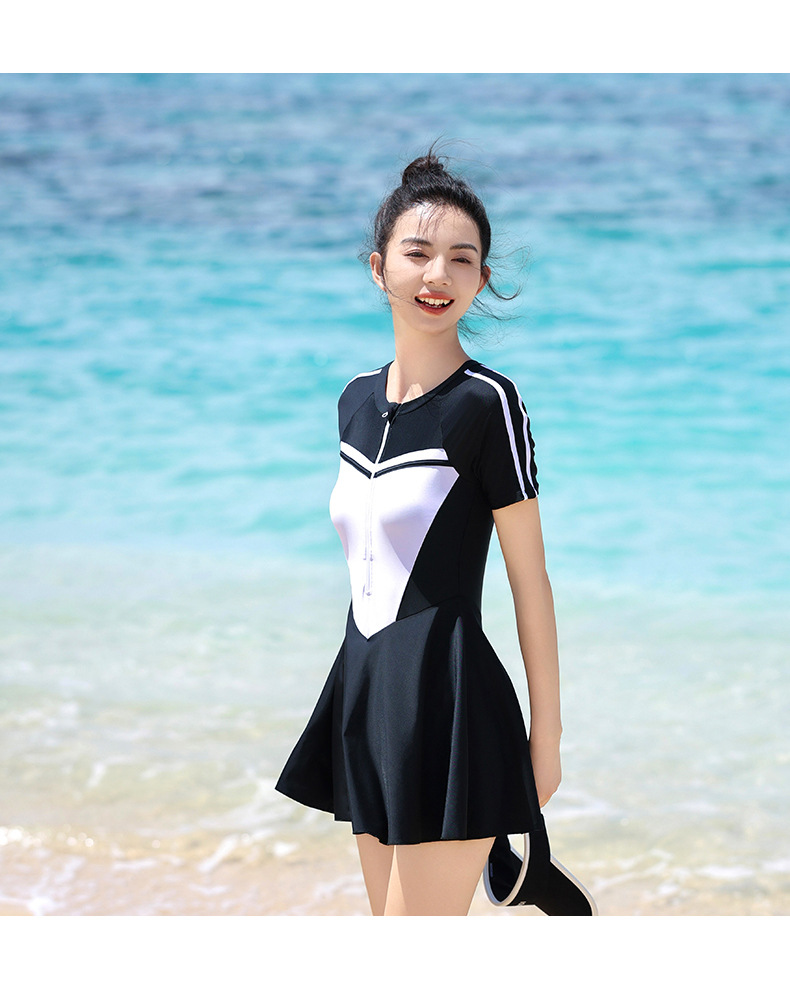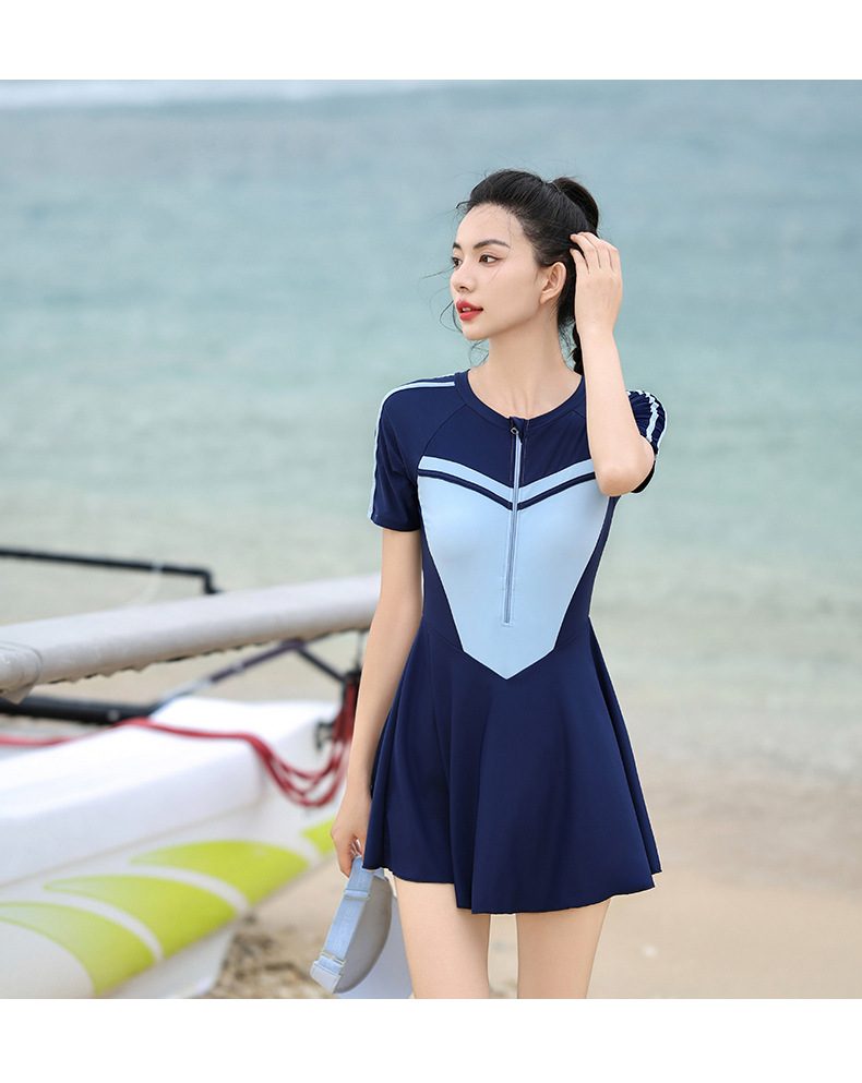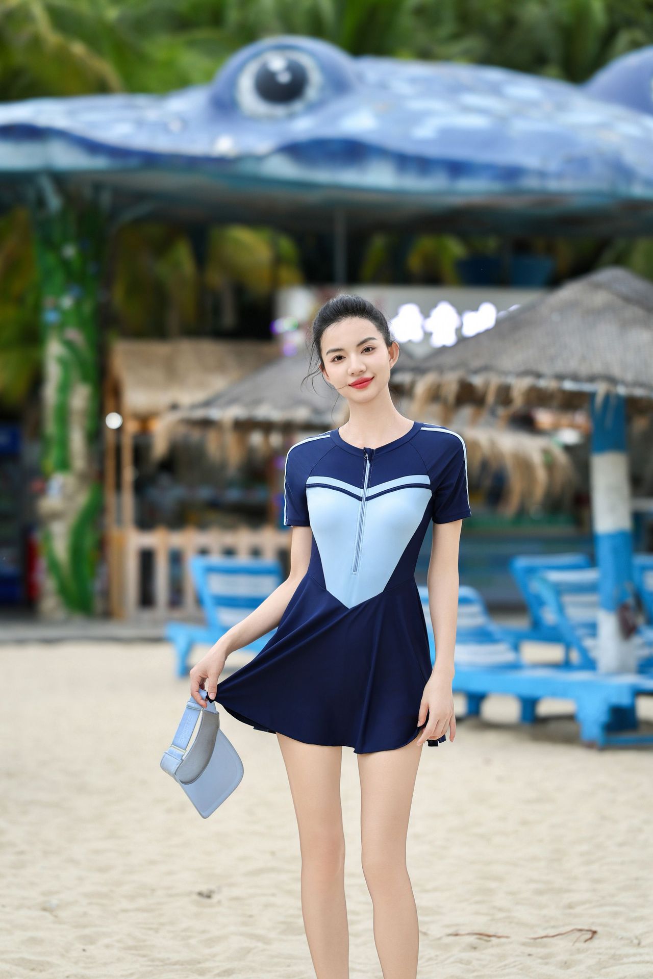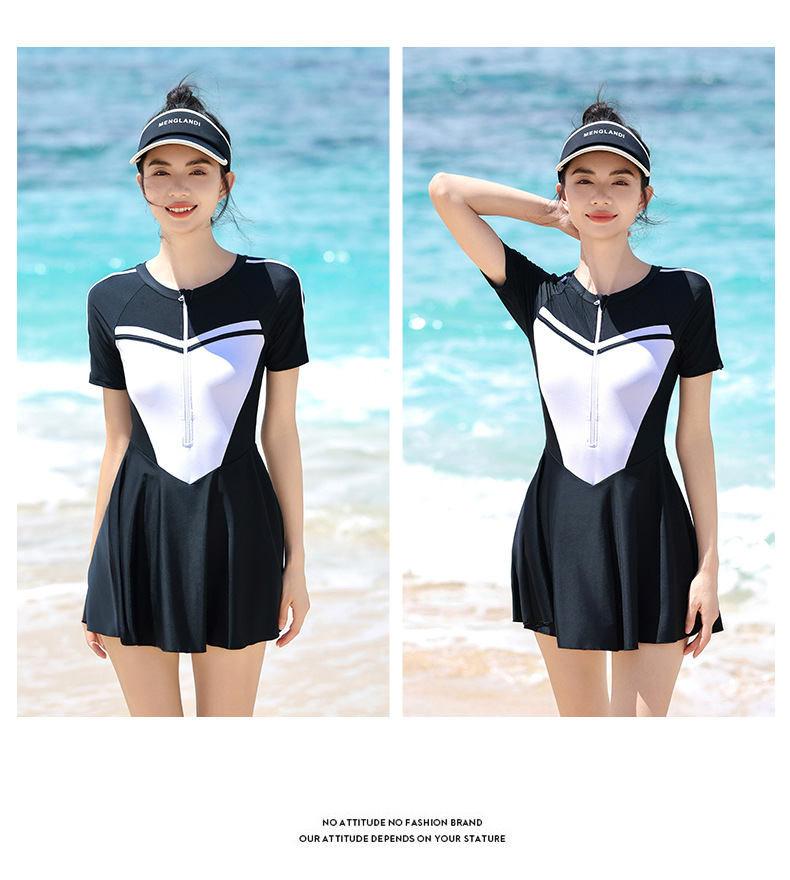 여자 수영복 다이빙 세트 긴팔 원피스 스커트 스포츠 보수적 인 약간 뚱뚱한 여자 학생 슬리밍 서핑 세트 수영복스토어 가기