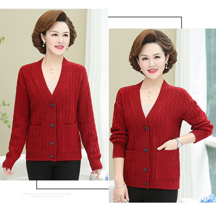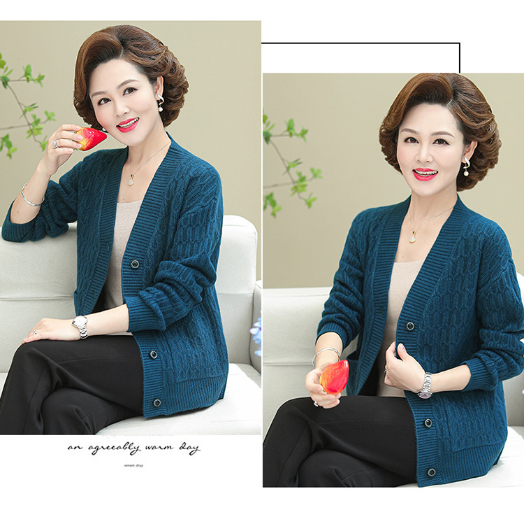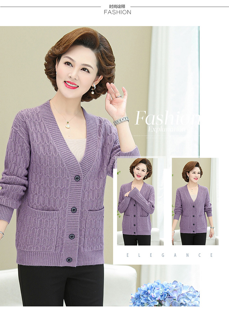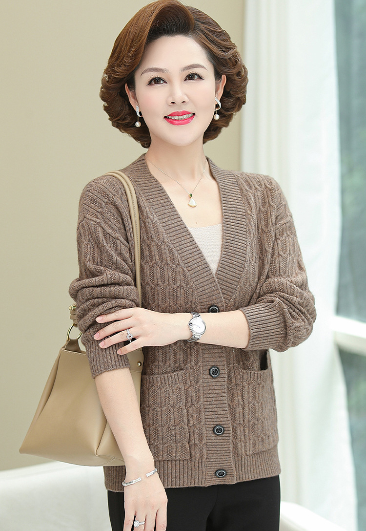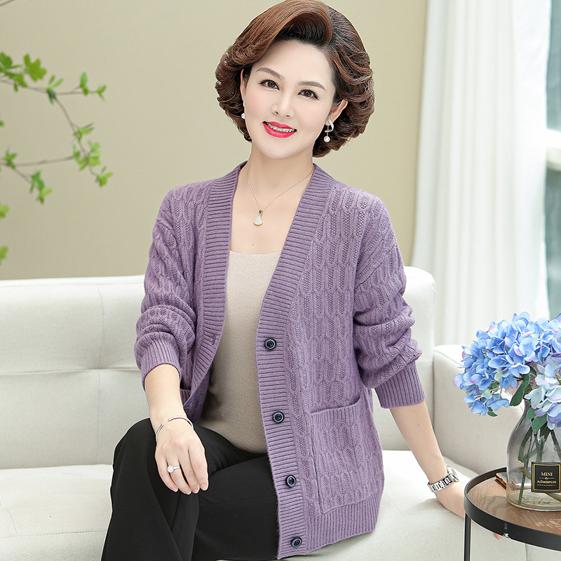 2024 봄과 가을 새로운 한국 스타일 트위스트 카디건 코트 중년 어머니 단색 올 매치 느슨한 니트 스웨터 카디건