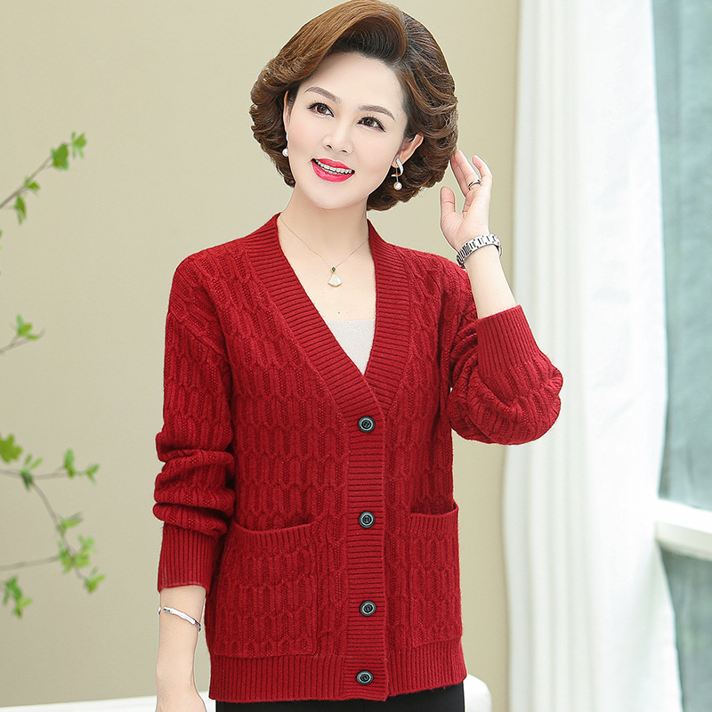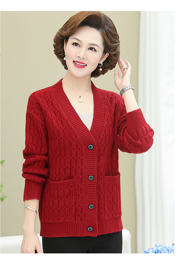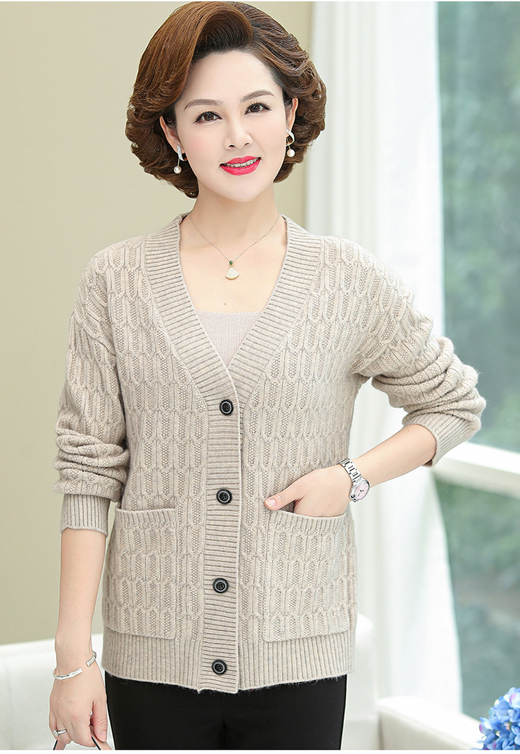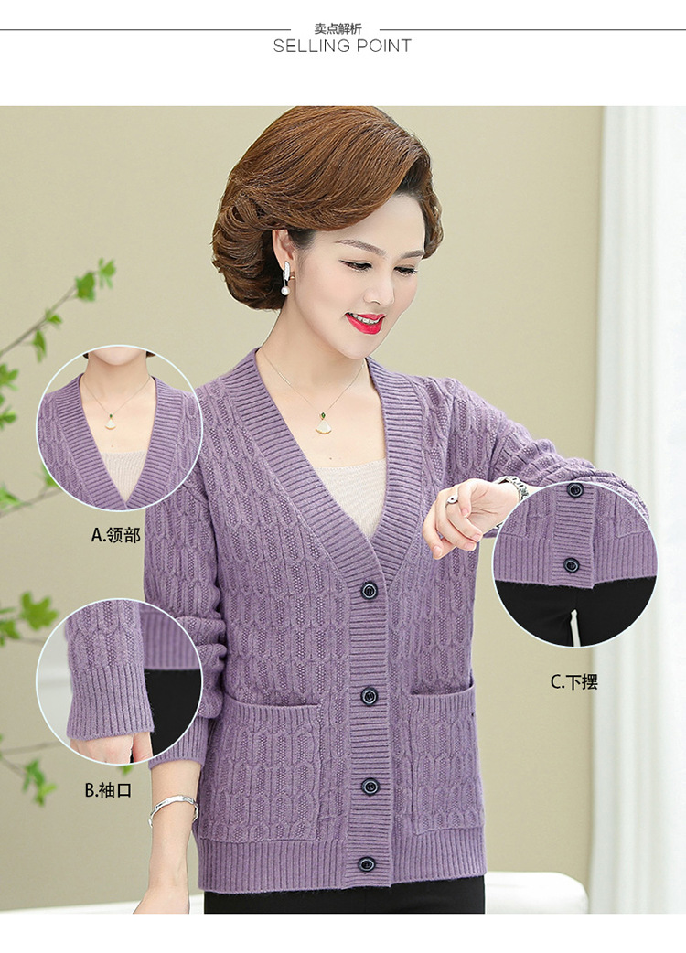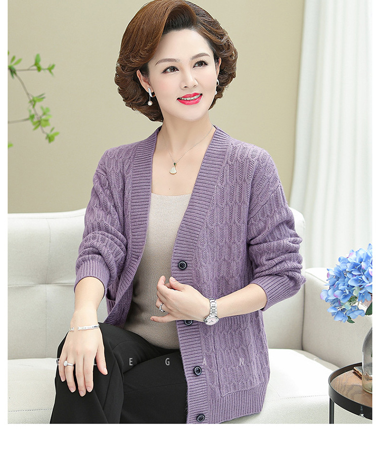 2024 봄과 가을 새로운 한국 스타일 트위스트 카디건 코트 중년 어머니 단색 올 매치 느슨한 니트 스웨터 카디건