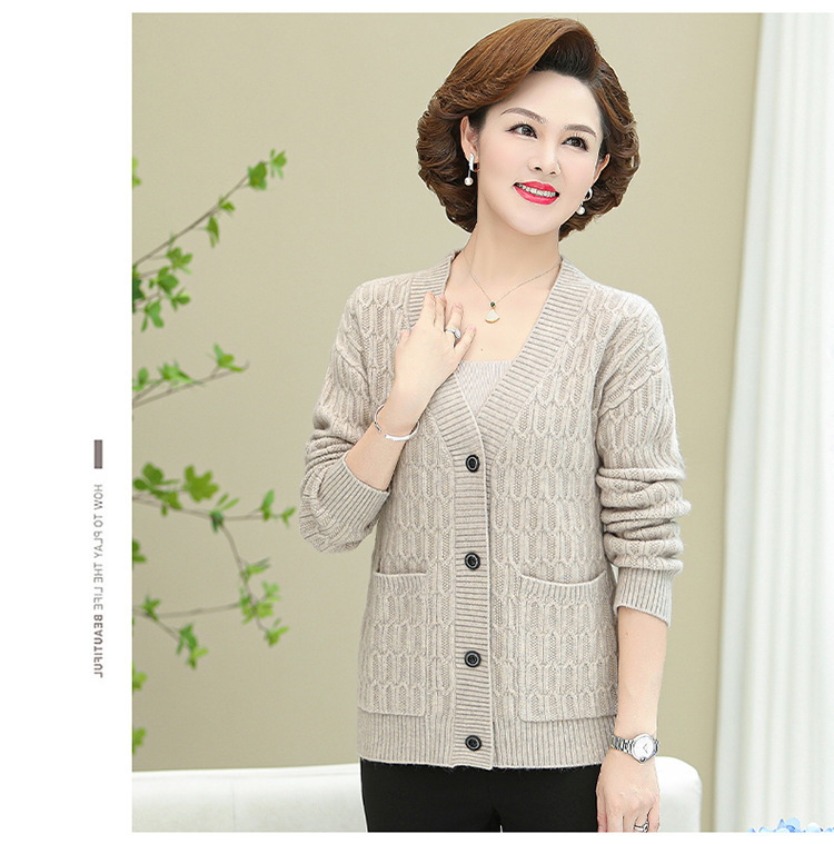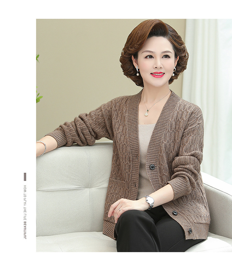 2024 봄과 가을 새로운 한국 스타일 트위스트 카디건 코트 중년 어머니 단색 올 매치 느슨한 니트 스웨터 카디건스토어 가기
