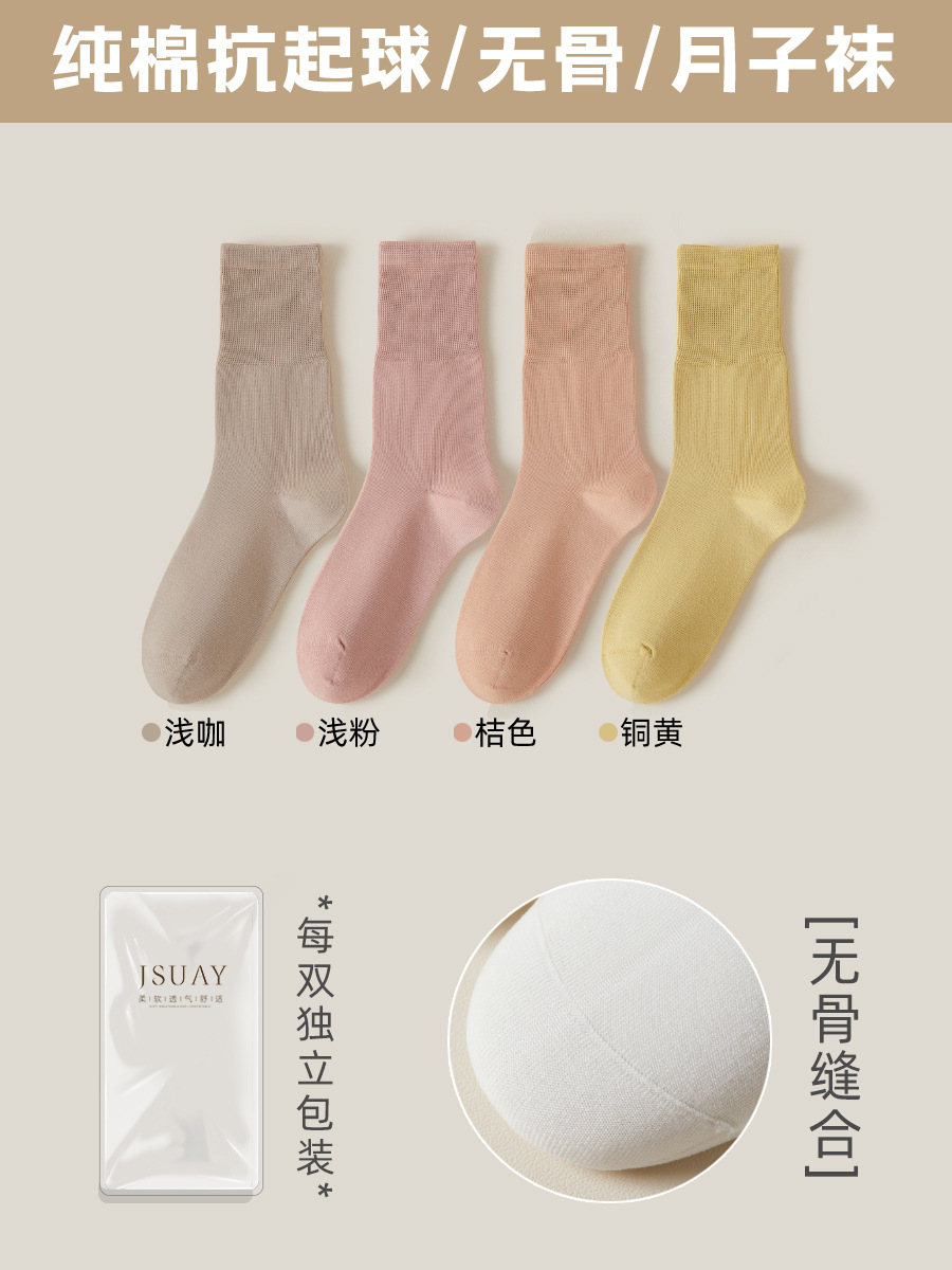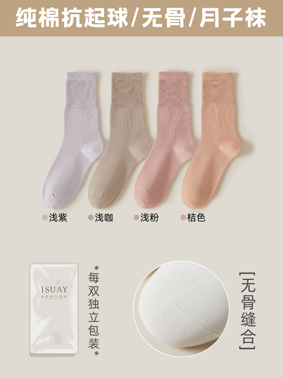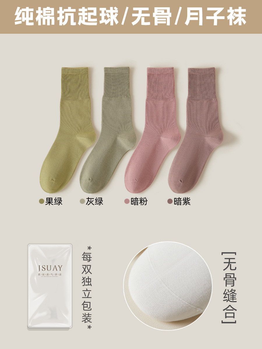 여성용 가을 겨울 순면 중목 양말, 무봉제 양말, 보풀 방지 단색 산후 양말, 다리를 조이지 않는 임산부 양말스토어 가기