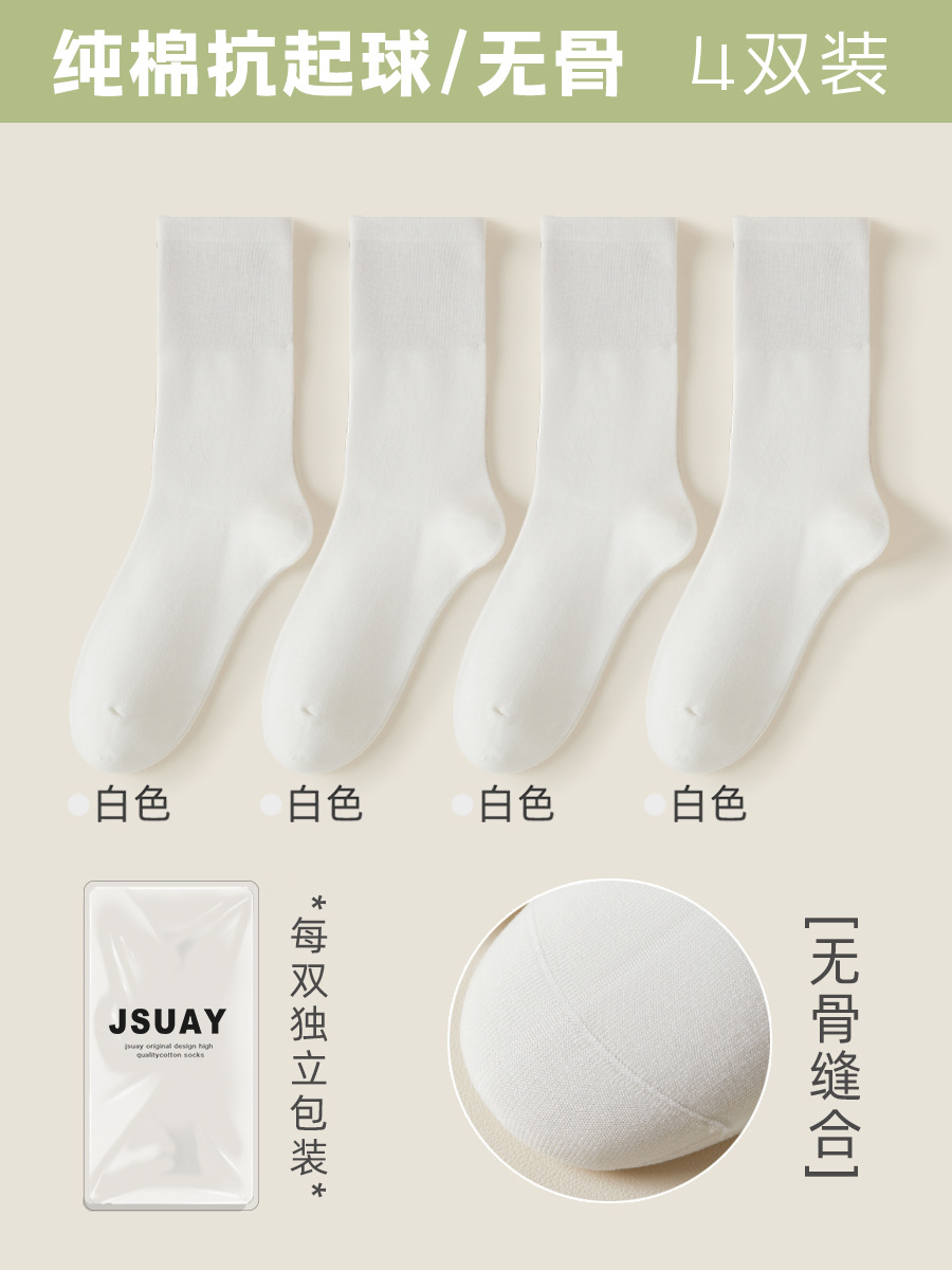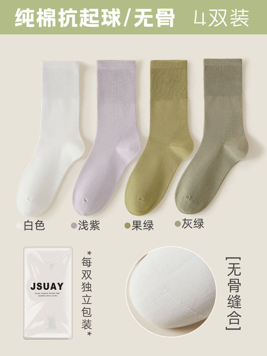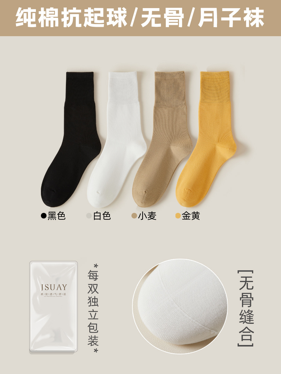 여성용 가을 겨울 순면 중목 양말, 무봉제 양말, 보풀 방지 단색 산후 양말, 다리를 조이지 않는 임산부 양말스토어 가기