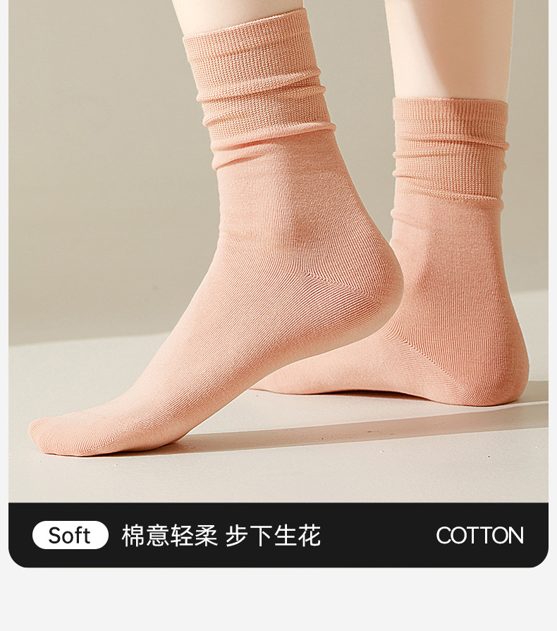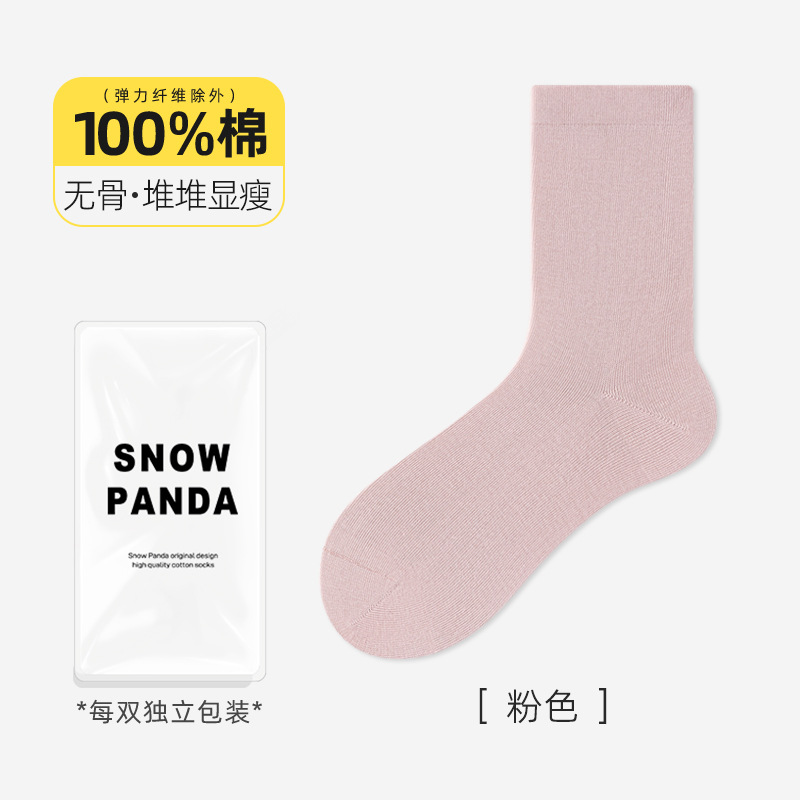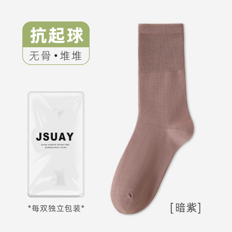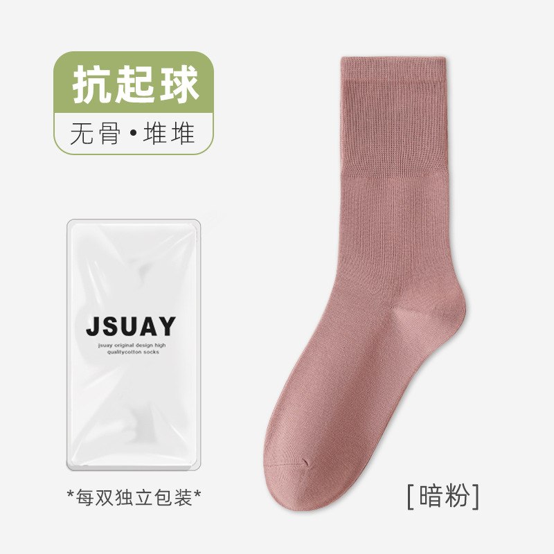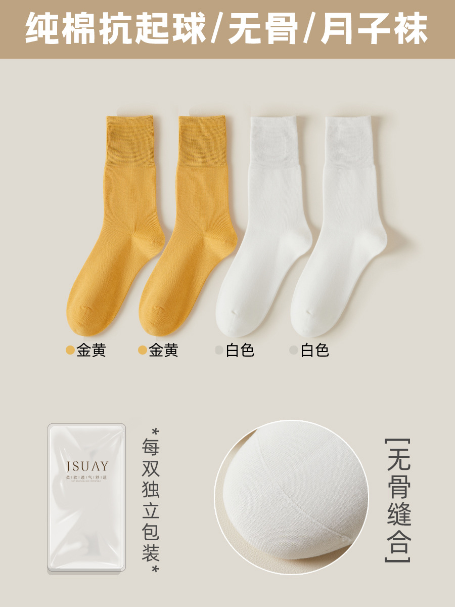 여성용 가을 겨울 순면 중목 양말, 무봉제 양말, 보풀 방지 단색 산후 양말, 다리를 조이지 않는 임산부 양말