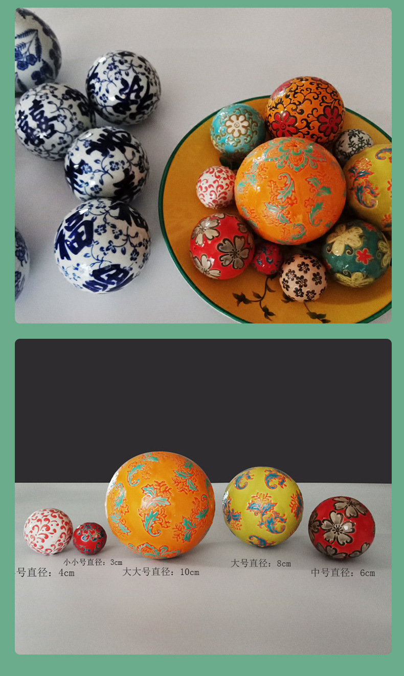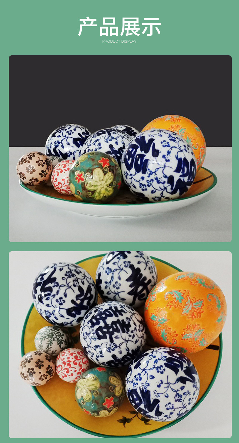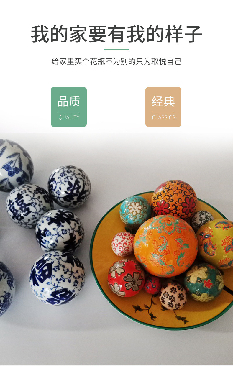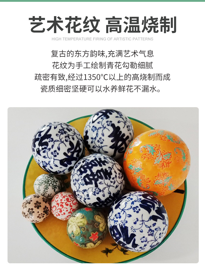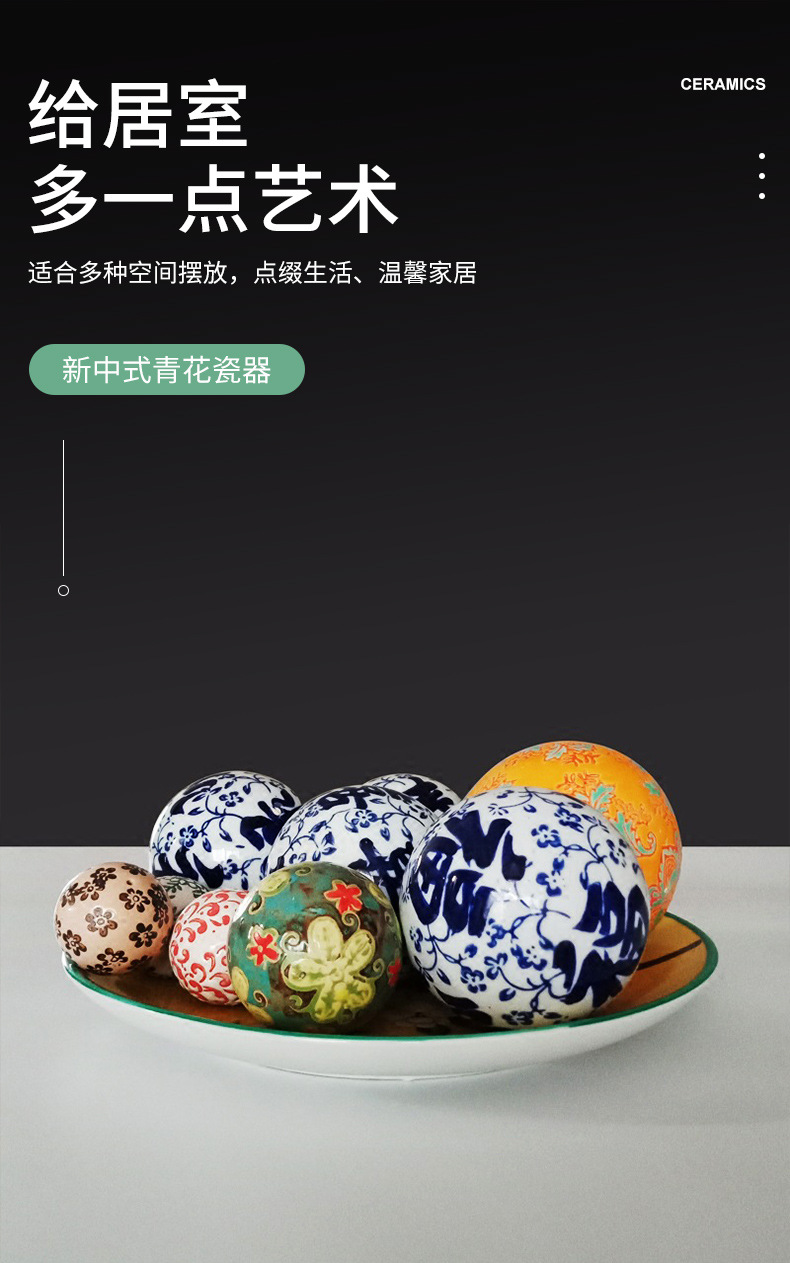 신중국풍 청화백자 플로팅 세라믹 볼, 경덕진 도자기 홈 장식품 플로팅 볼 청화백자스토어 가기