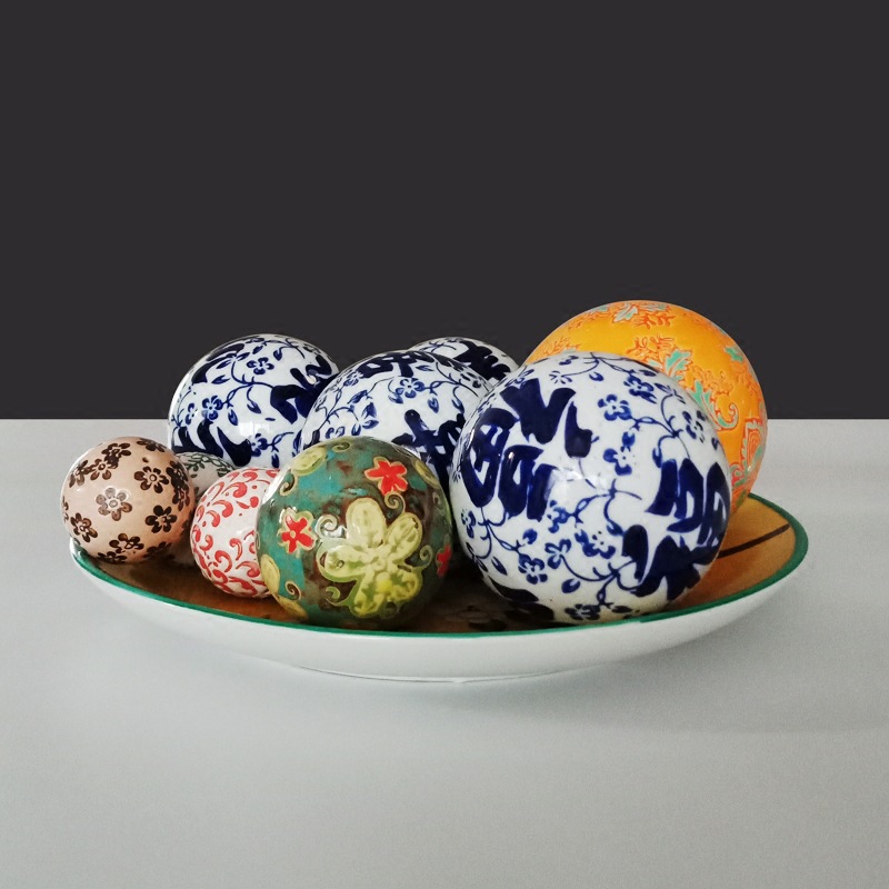 신중국풍 청화백자 플로팅 세라믹 볼, 경덕진 도자기 홈 장식품 플로팅 볼 청화백자