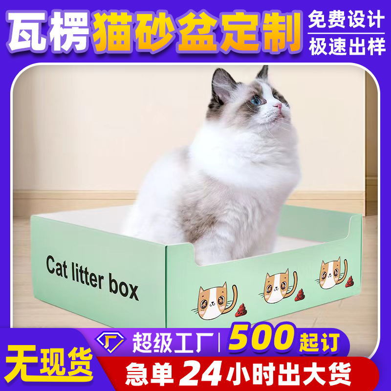 맞춤형 고양이 쓰레기통, 초대형 비말 방지 휴대용 고양이 둥지, 골판지 일체형 접이식 애완동물 둥지 매트, 맞춤형 상자