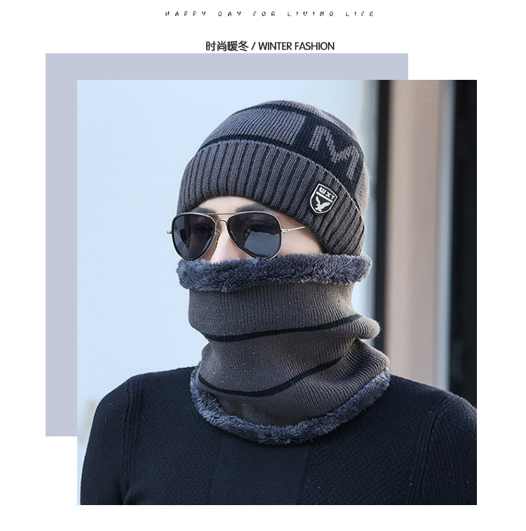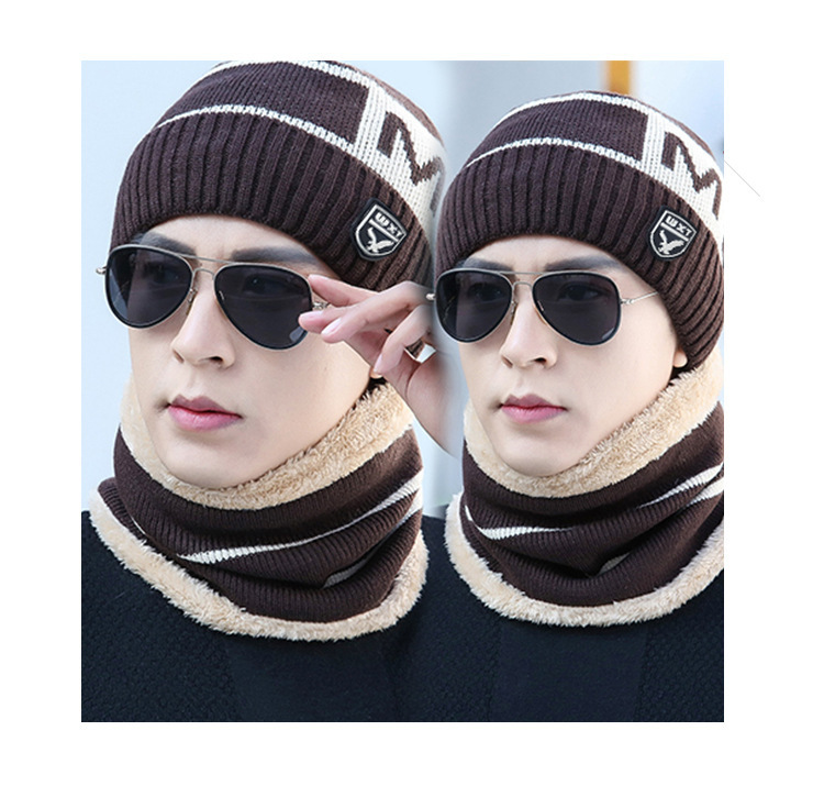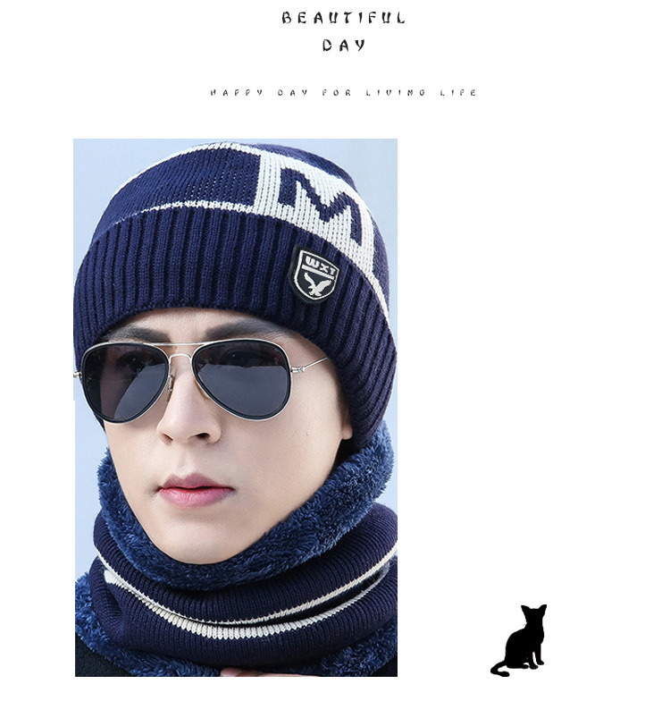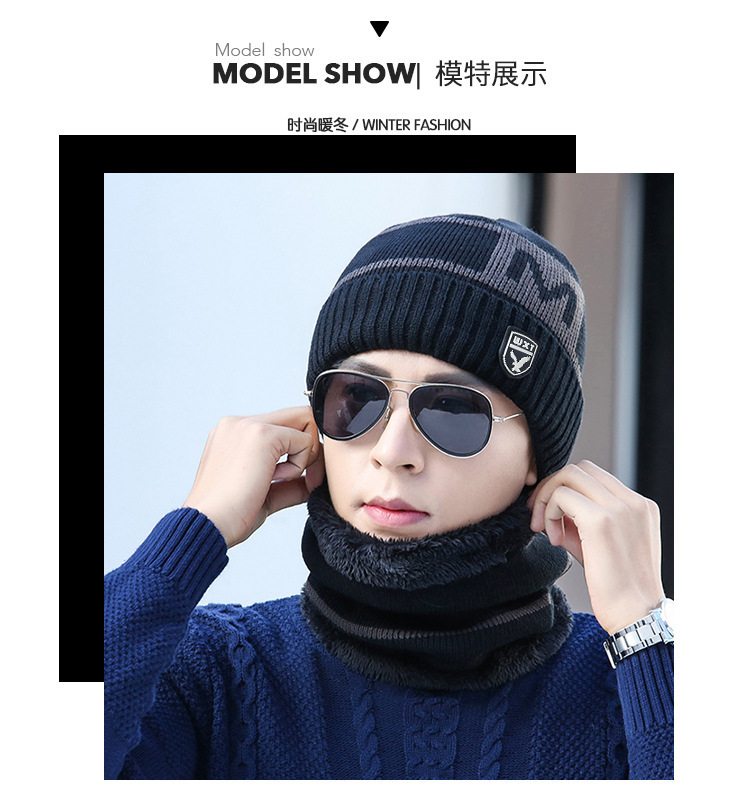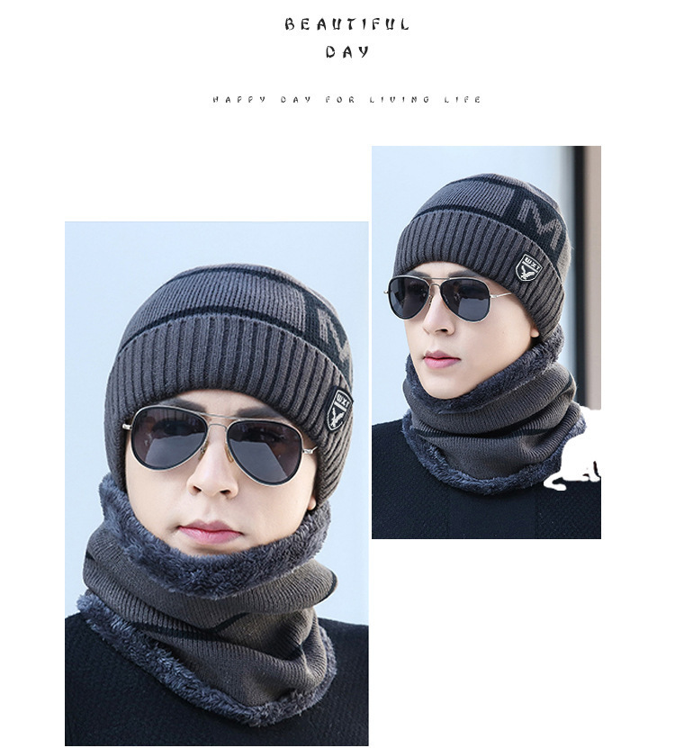 젊은 학생들을위한 남성용 기모 따뜻한 스카프 모자 야외 겨울 사이클링 냉간 니트 울 모자 모자 모자스토어 가기