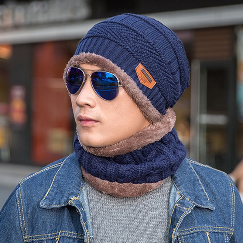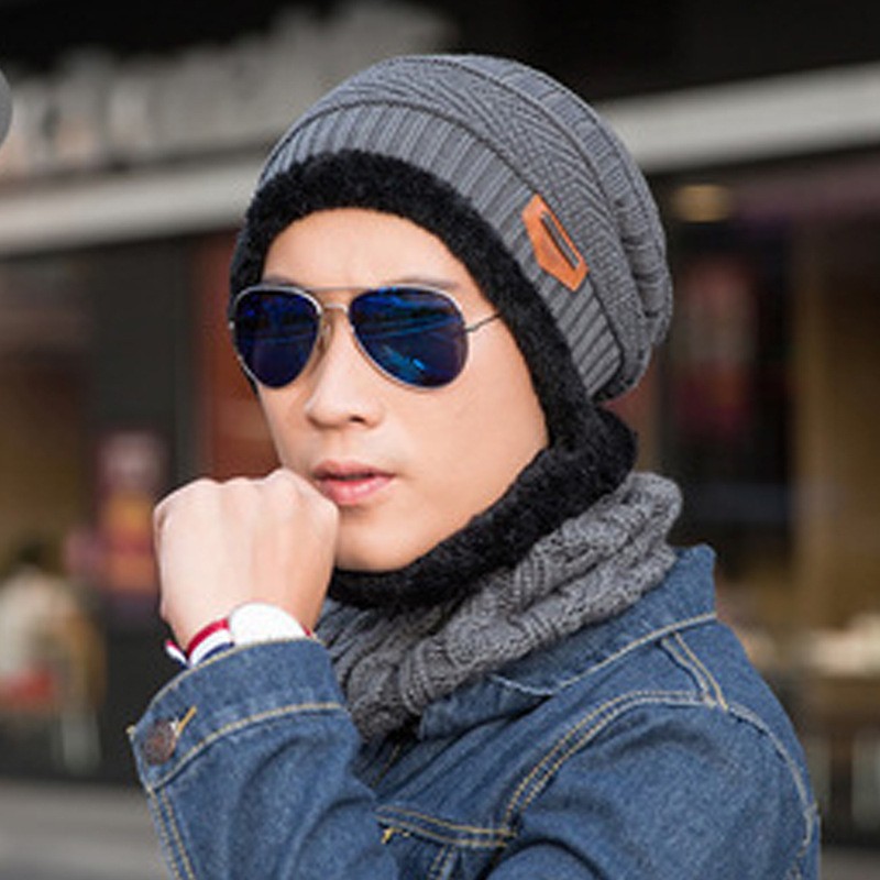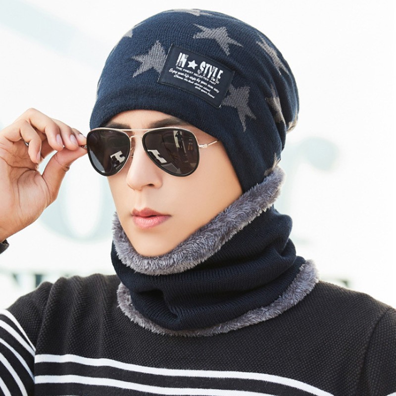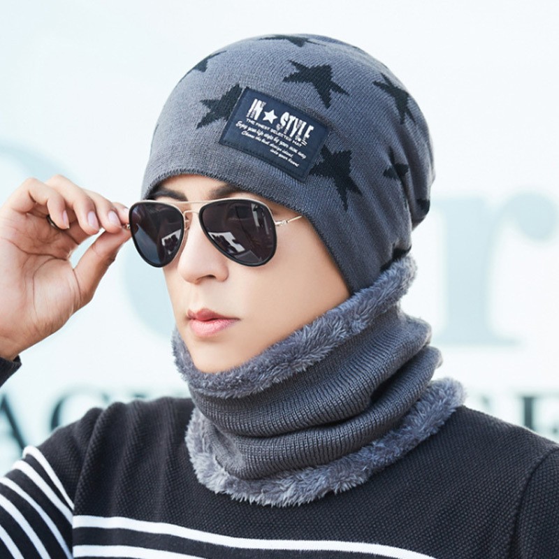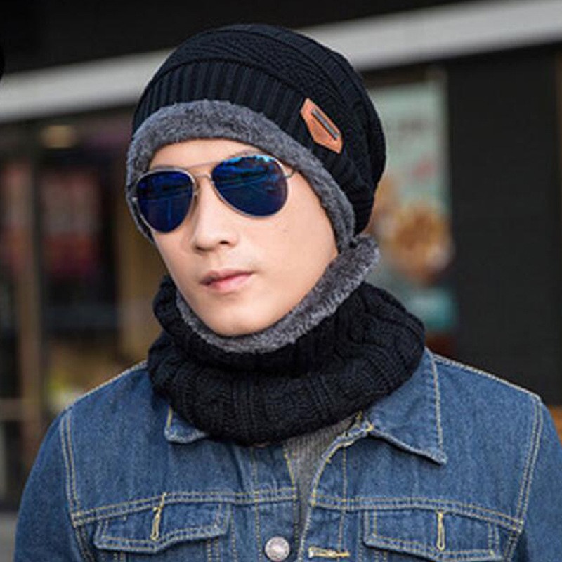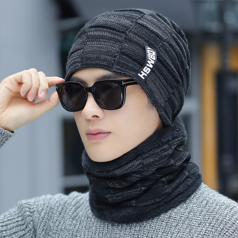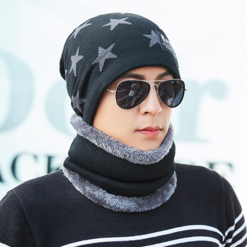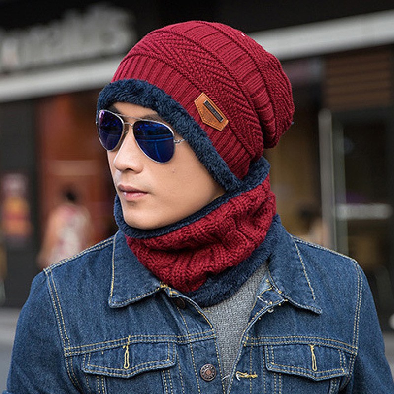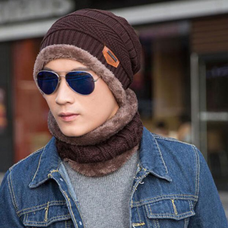 젊은 학생들을위한 남성용 기모 따뜻한 스카프 모자 야외 겨울 사이클링 냉간 니트 울 모자 모자 모자