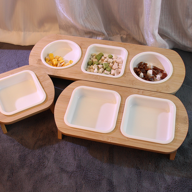 Phyllostachys pubescens 가을 저항성 플라스틱 밥 그릇 애완 동물 사료 그릇 고양이 3 그릇이 두 배 그릇을 뒤집어 목과 자궁 경부 척추 높은 발을 보호합니다.