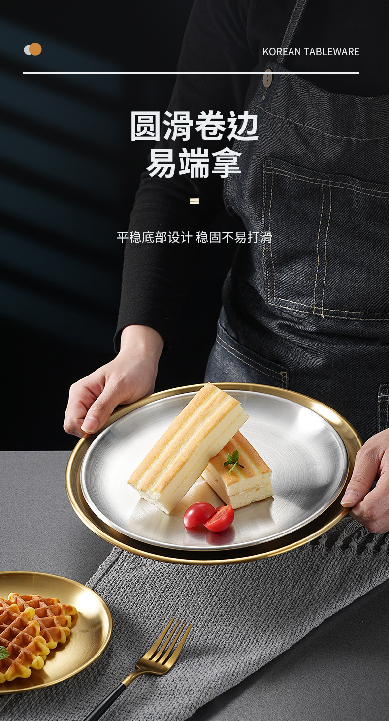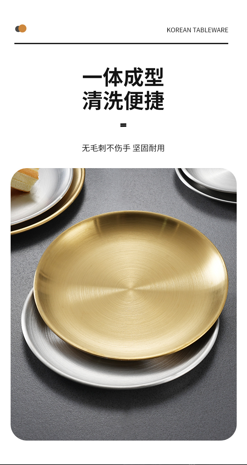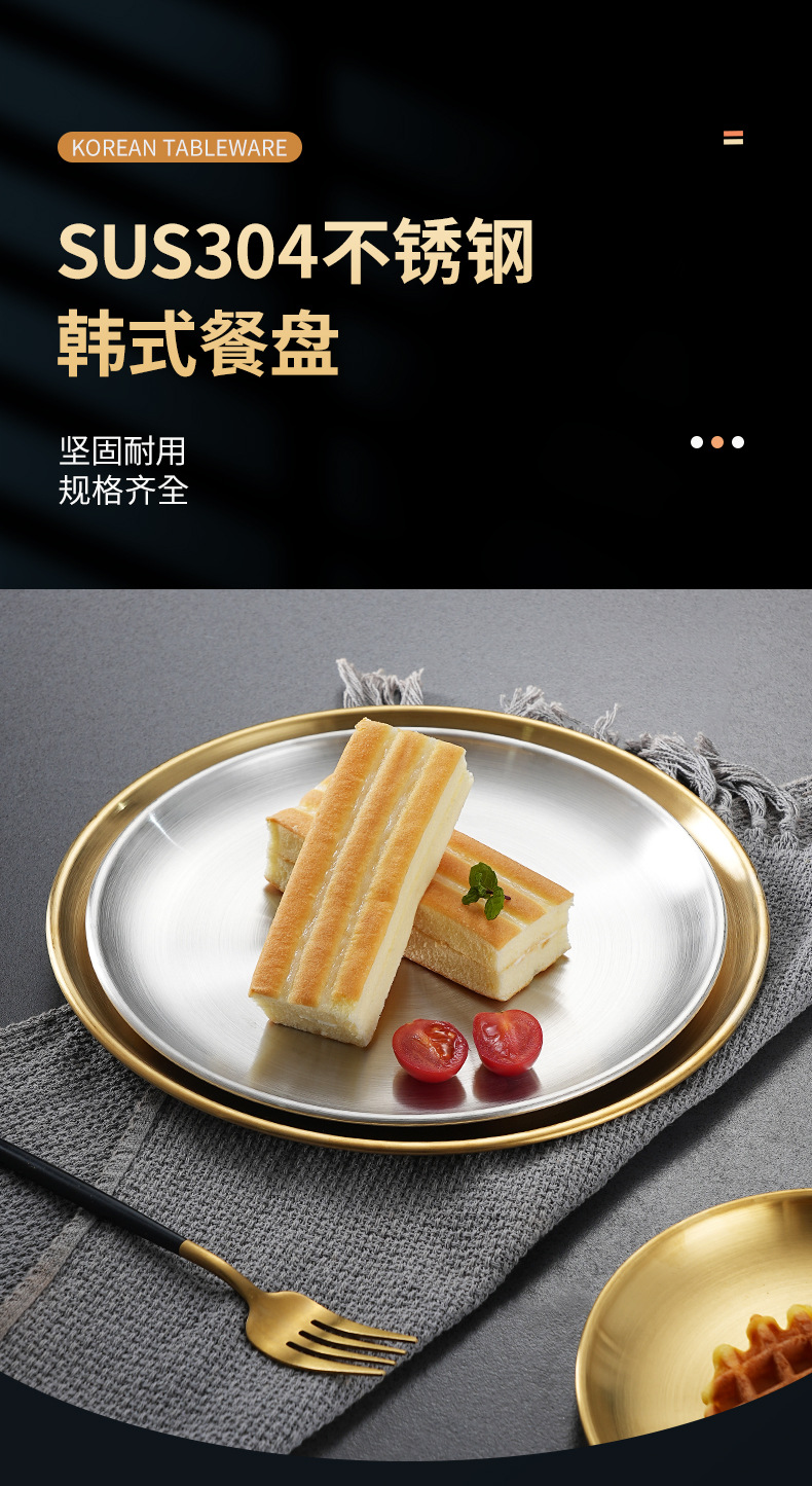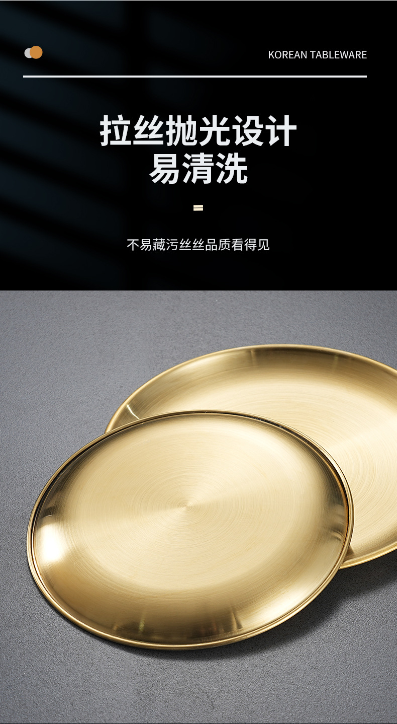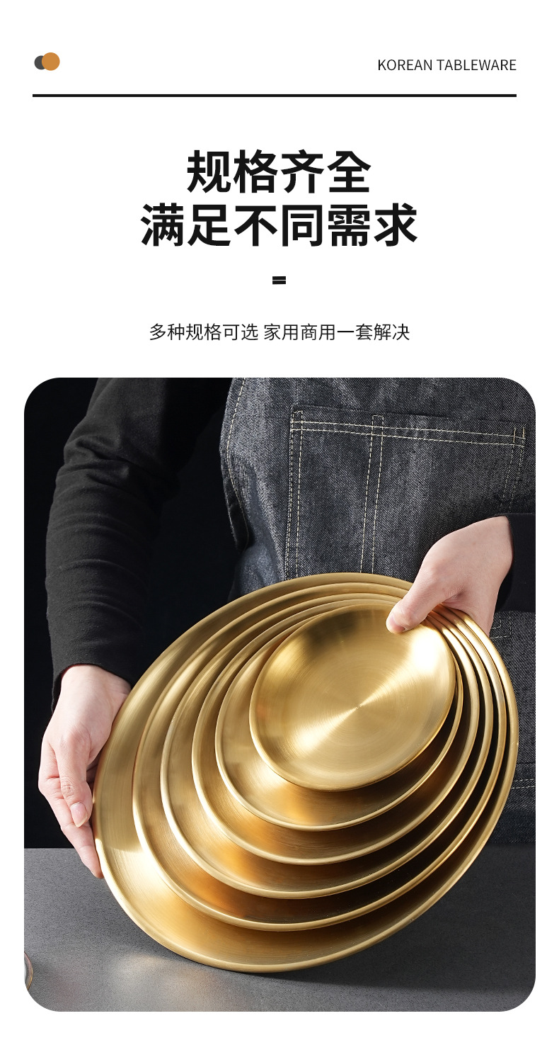 304 스테인레스 스틸 한국식 바베큐 플레이트 골든 라운드 스낵 플레이트 디저트 플레이트 두껍게 뷔페 얕은 판 뼈 플레이트스토어 가기