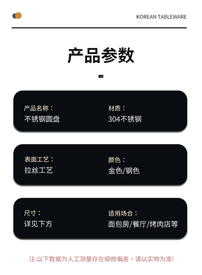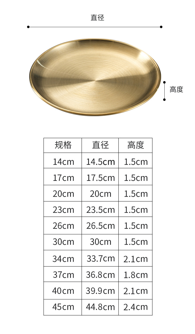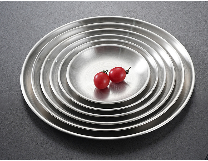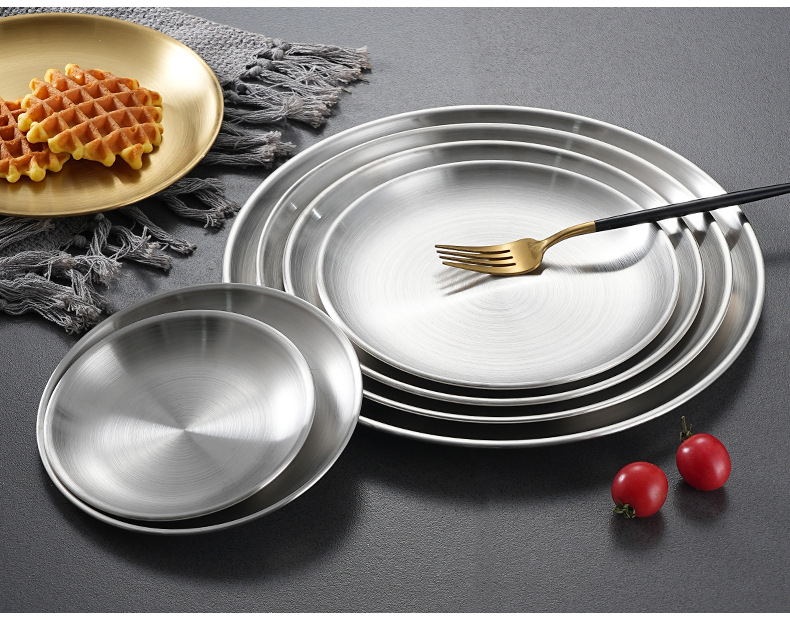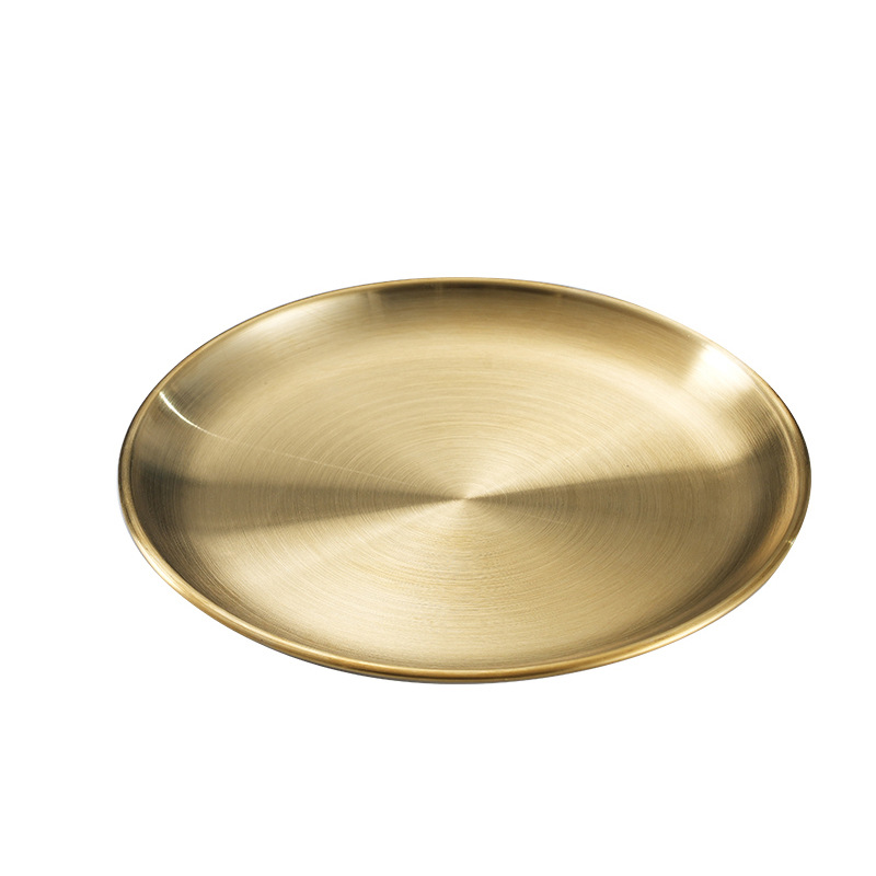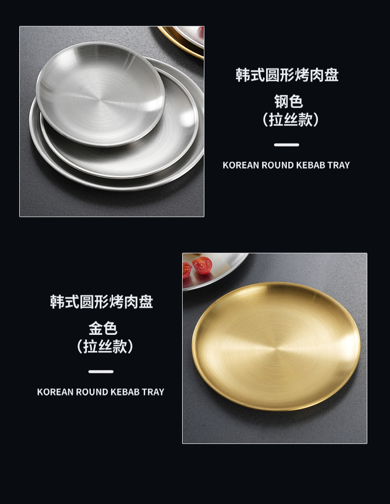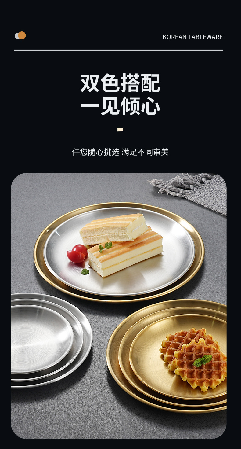 304 스테인레스 스틸 한국식 바베큐 플레이트 골든 라운드 스낵 플레이트 디저트 플레이트 두껍게 뷔페 얕은 판 뼈 플레이트스토어 가기