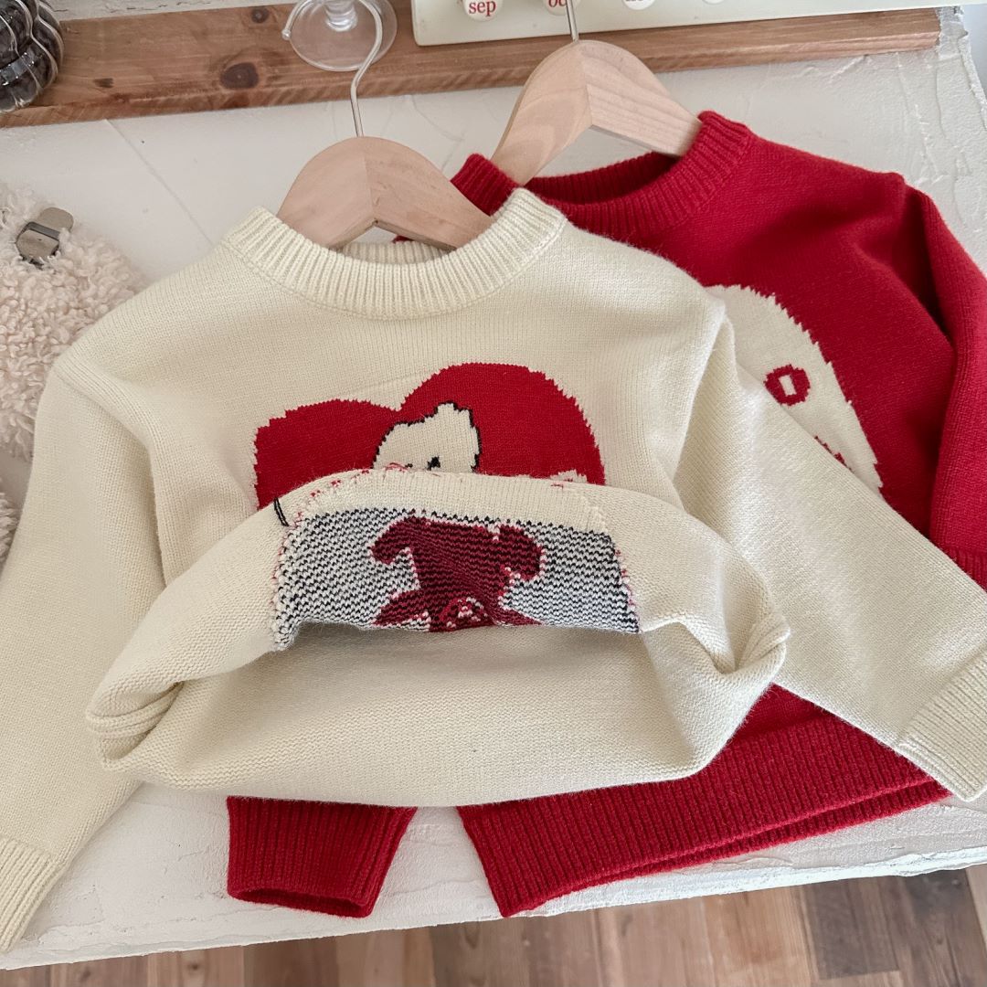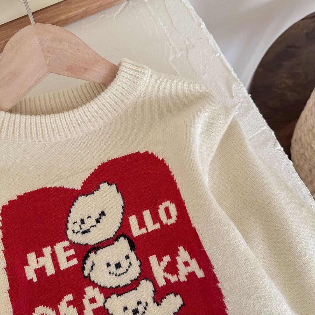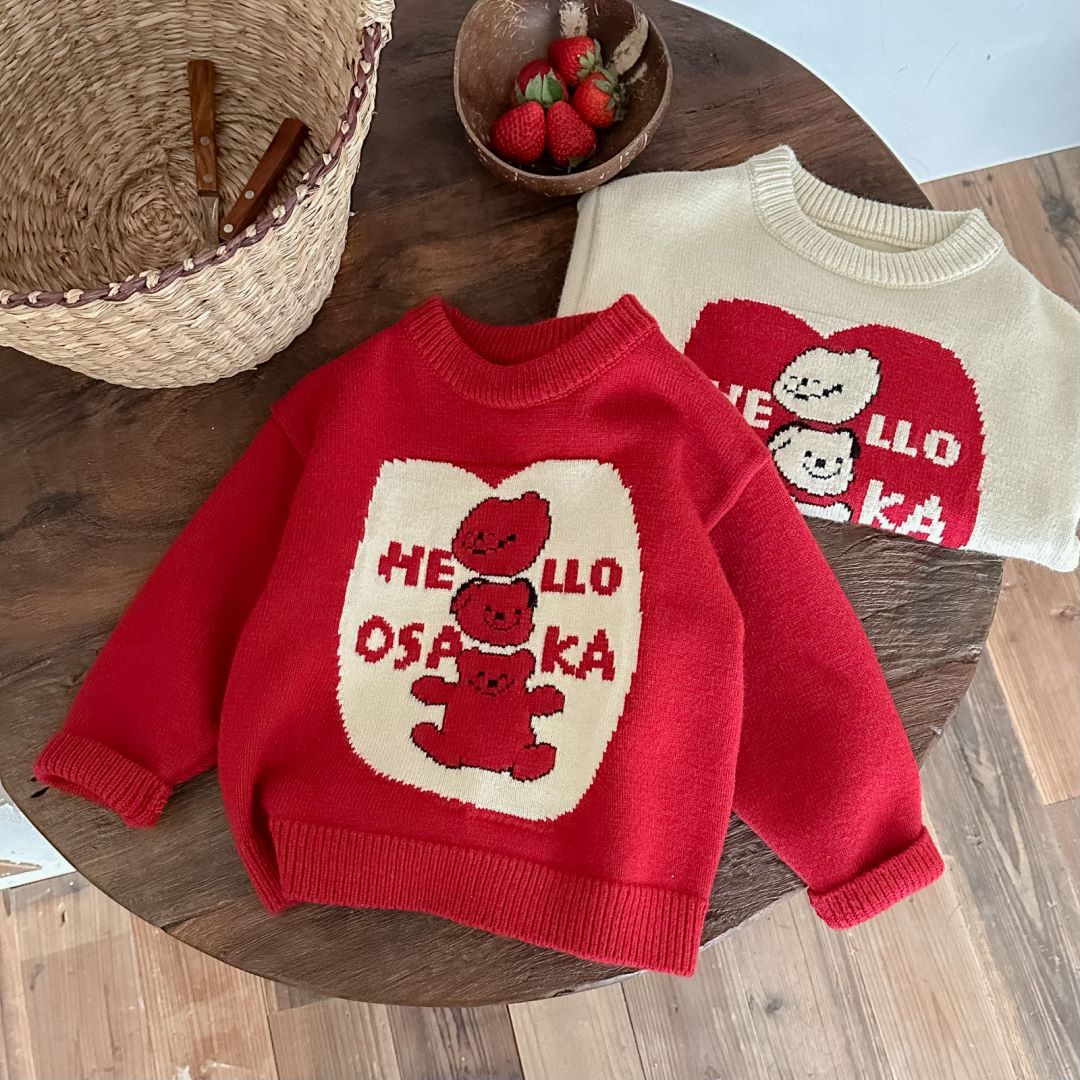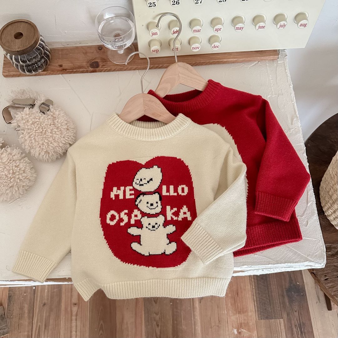 아동용 두꺼운 니트 스웨터 2025 겨울 남아 여아 귀여운 만화 니트 스웨터 아기용 두꺼운 라운드넥 새해 의류스토어 가기