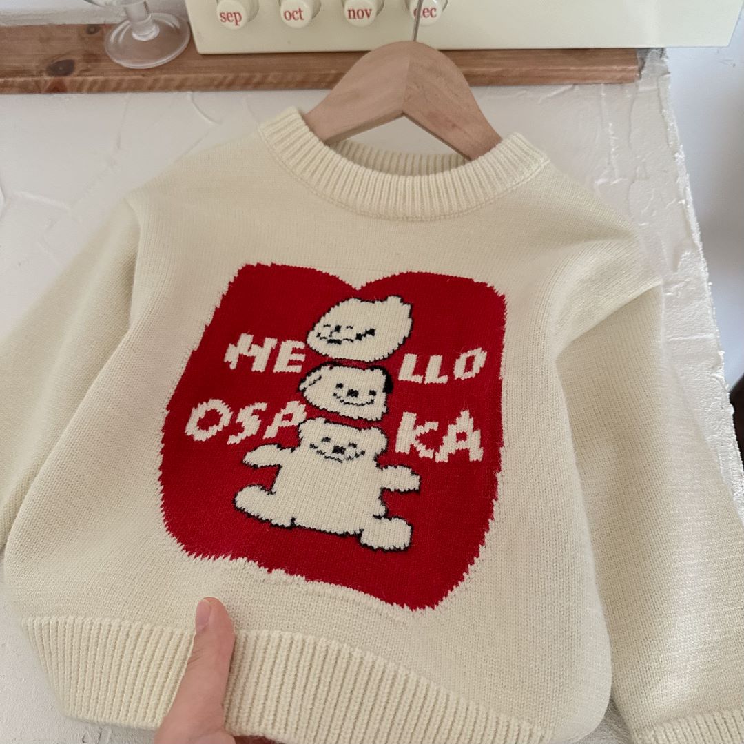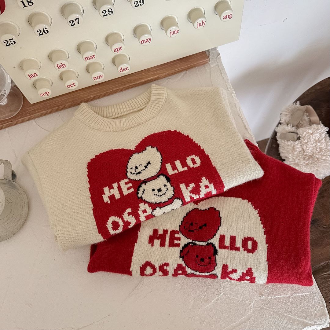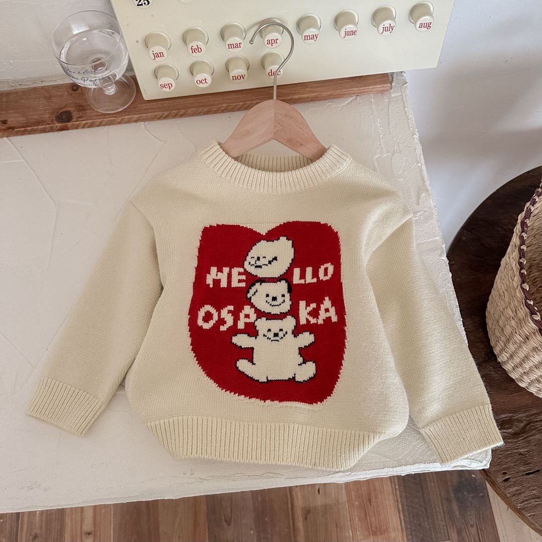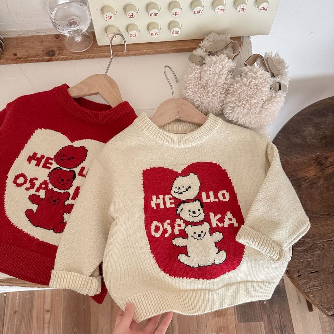 아동용 두꺼운 니트 스웨터 2025 겨울 남아 여아 귀여운 만화 니트 스웨터 아기용 두꺼운 라운드넥 새해 의류스토어 가기
