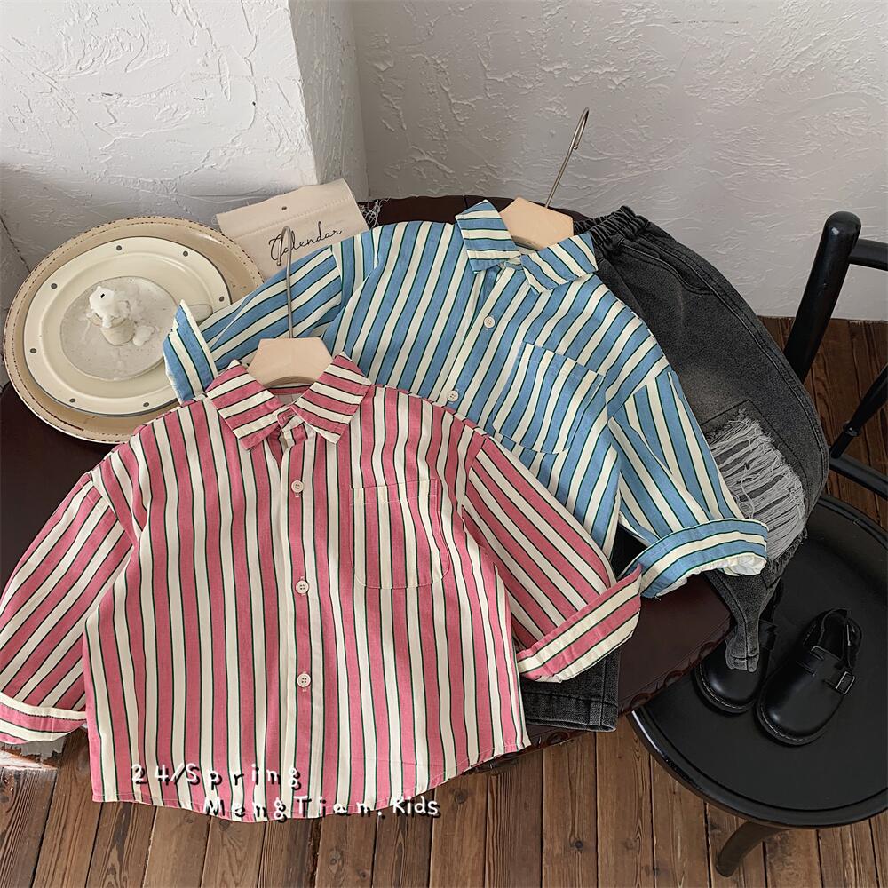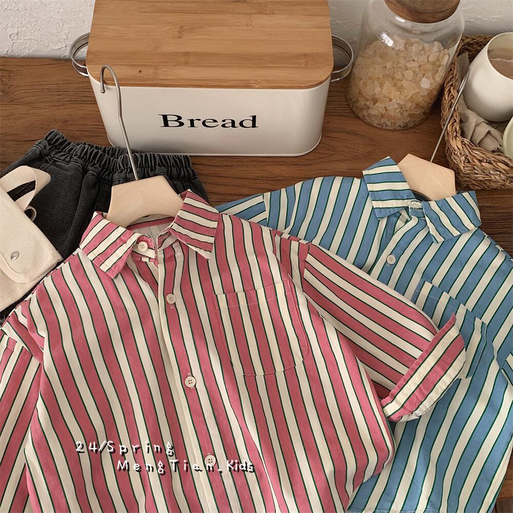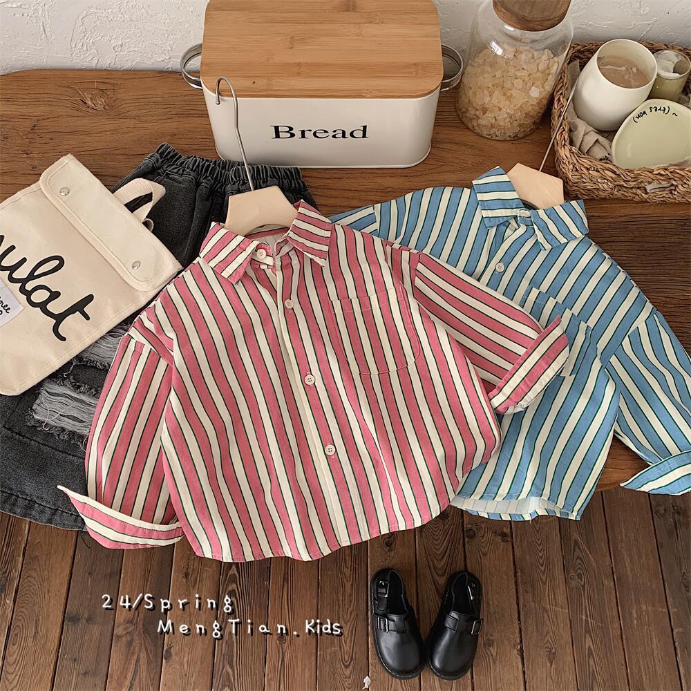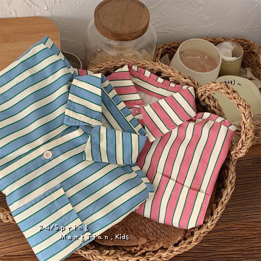 아동 셔츠 2021 봄 신작 소년 소녀 스트라이프 셔츠 아기 셔츠 한국 스타일 긴팔 소년 의류 재고 있음
