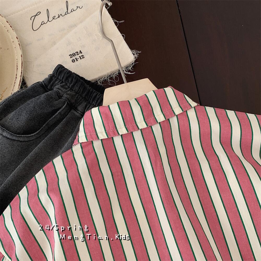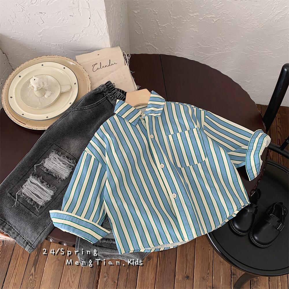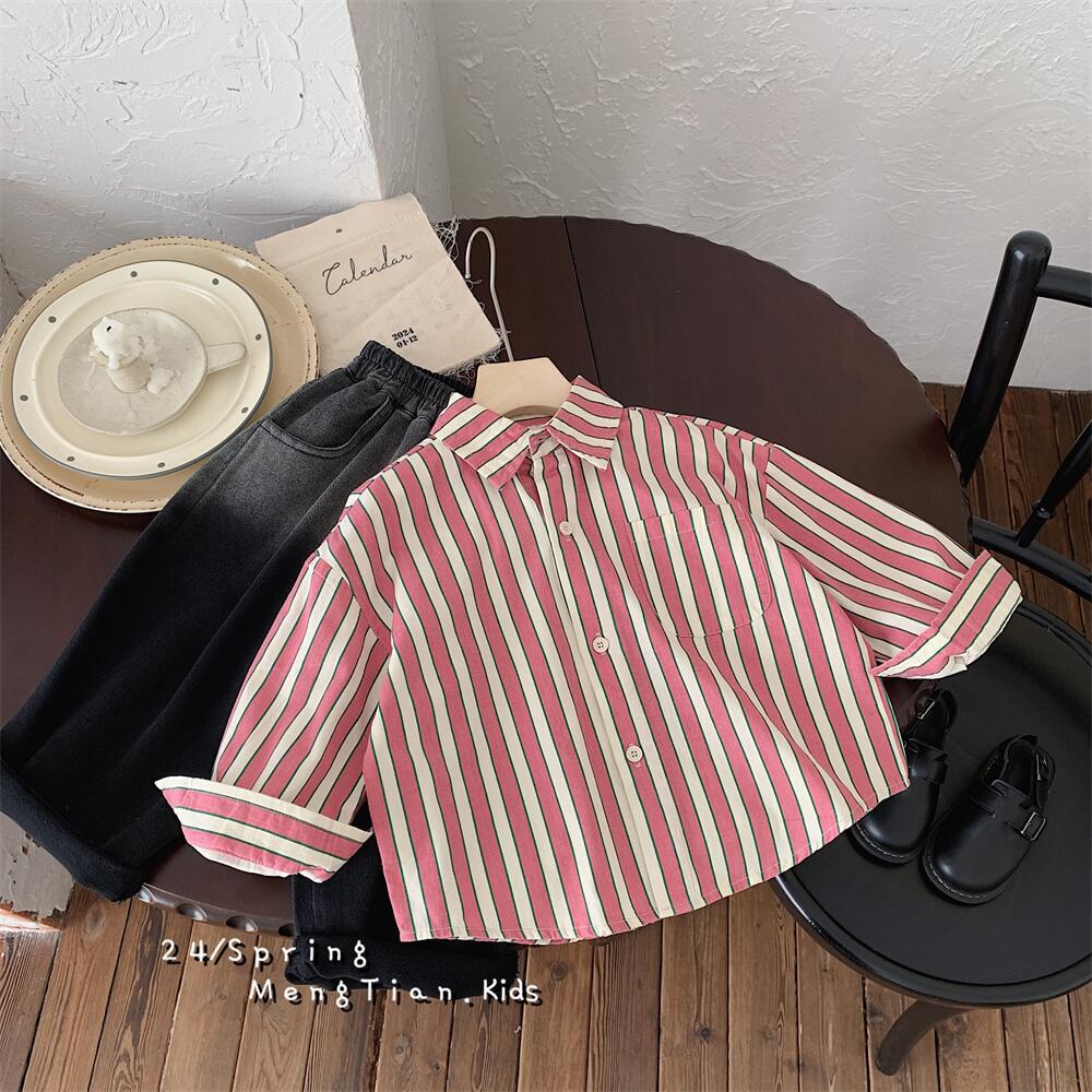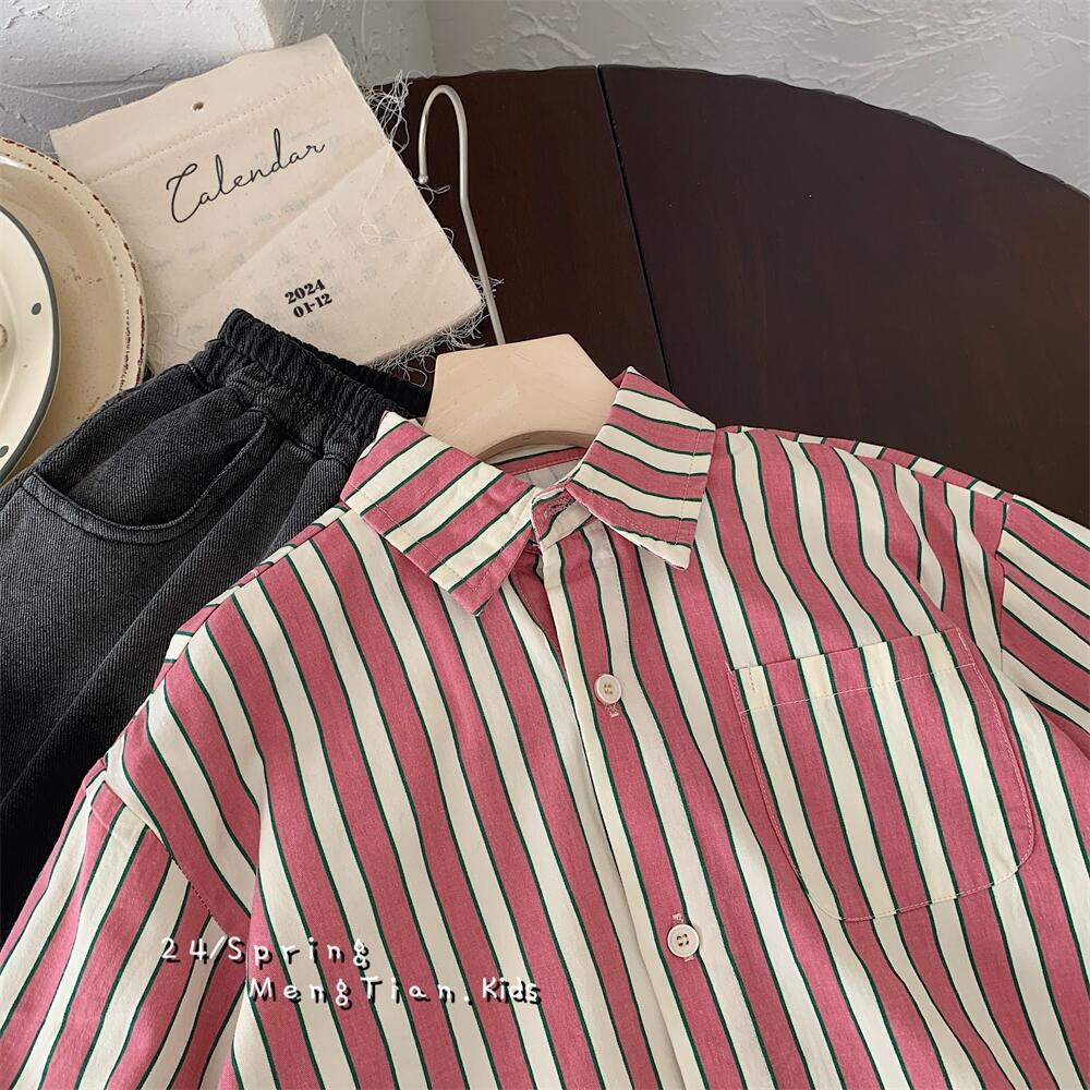 아동 셔츠 2021 봄 신작 소년 소녀 스트라이프 셔츠 아기 셔츠 한국 스타일 긴팔 소년 의류 재고 있음
