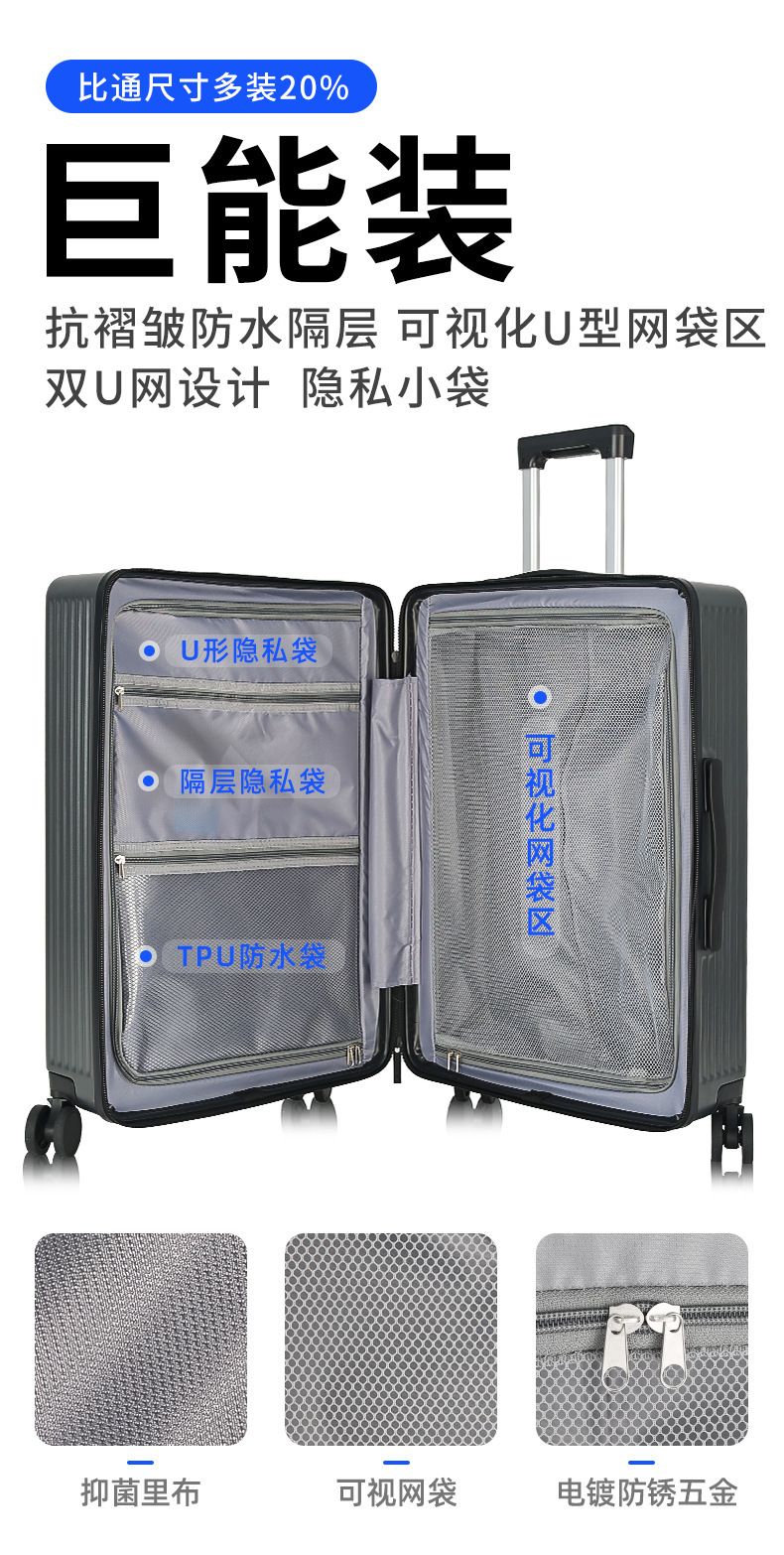 Yong Sheng은 대학생들 대용량 여행 가방 유니버설 휠 24 인치 비밀번호 가방 수하물 케이스 도매 전에 가방을 열었습니다.