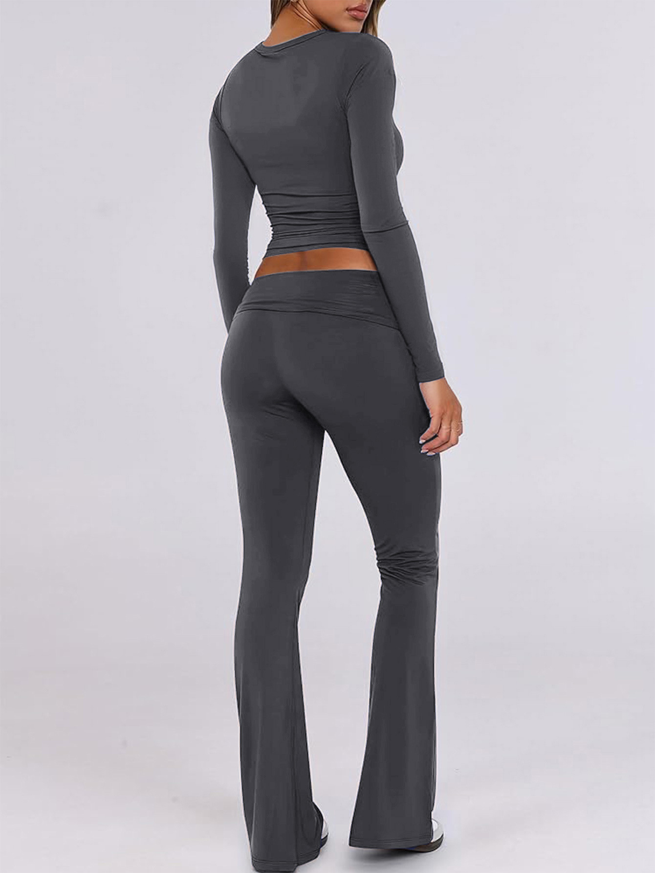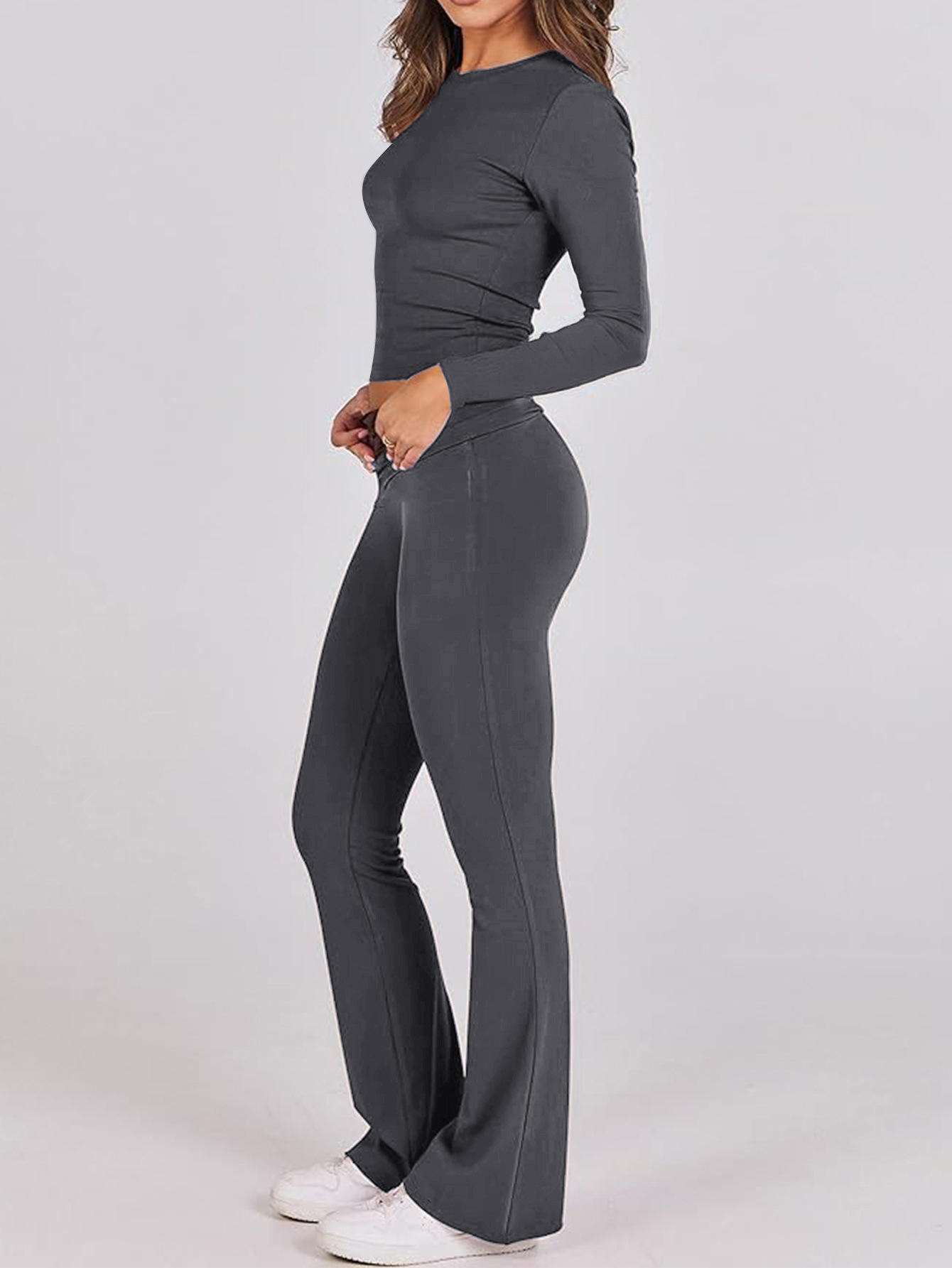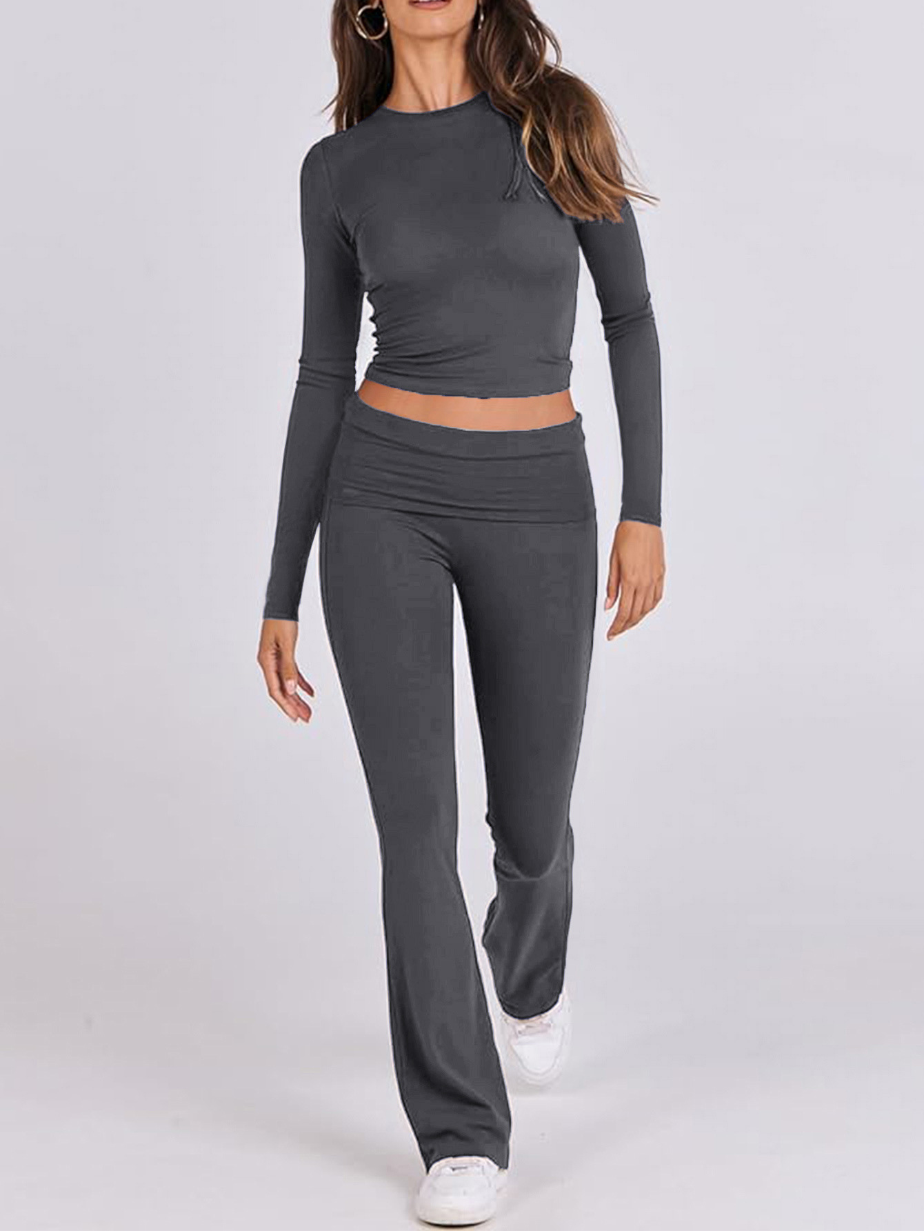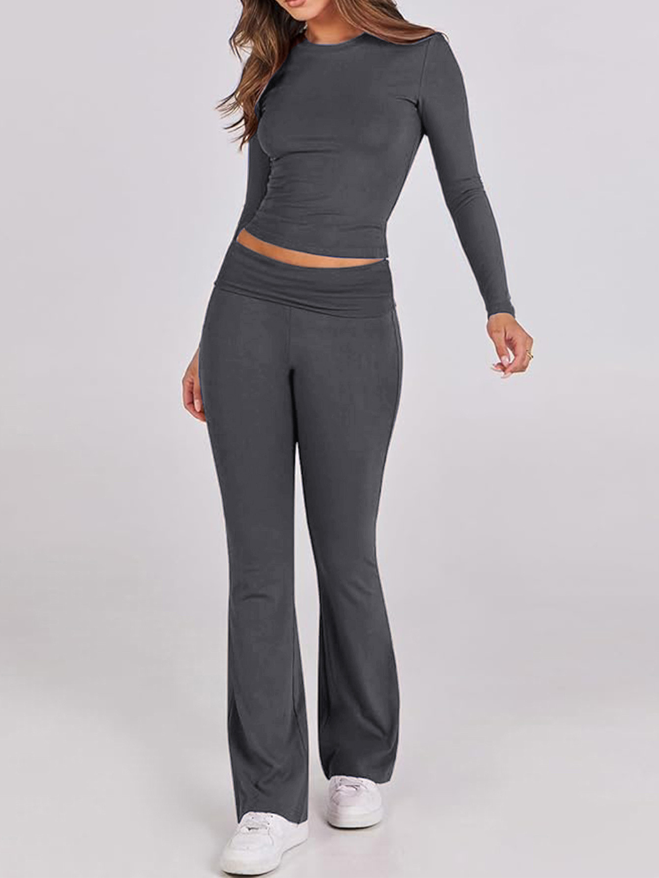 Diyun 유럽과 미국 여성 의류 아마존 국경 2024 봄과 여름 대외 무역 캐주얼 단색 슬림 긴 소매 니트 바지 세트